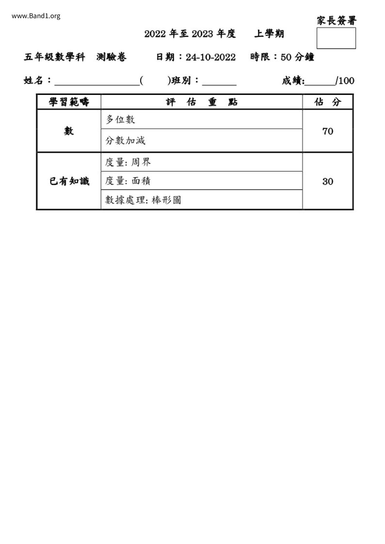 小五 數學 (P5 Maths)