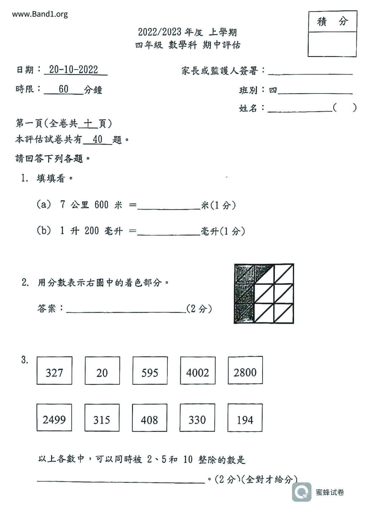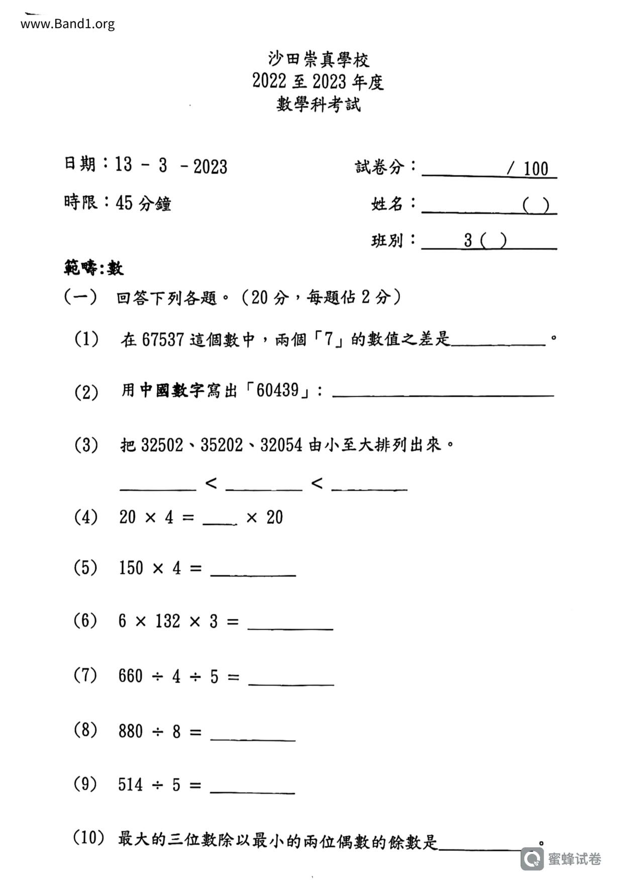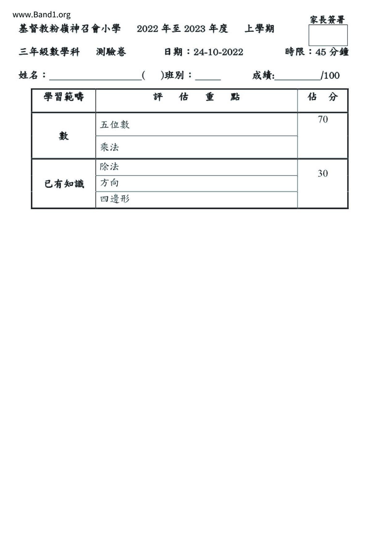小三 數學 (P3 Maths)
