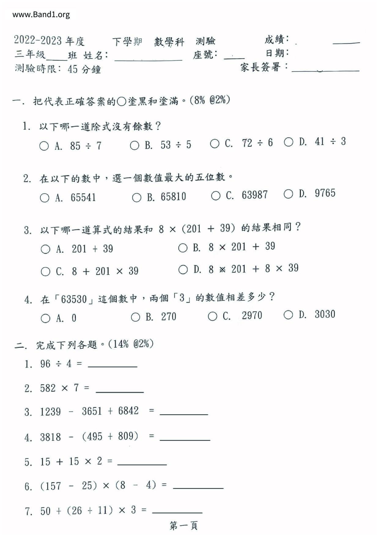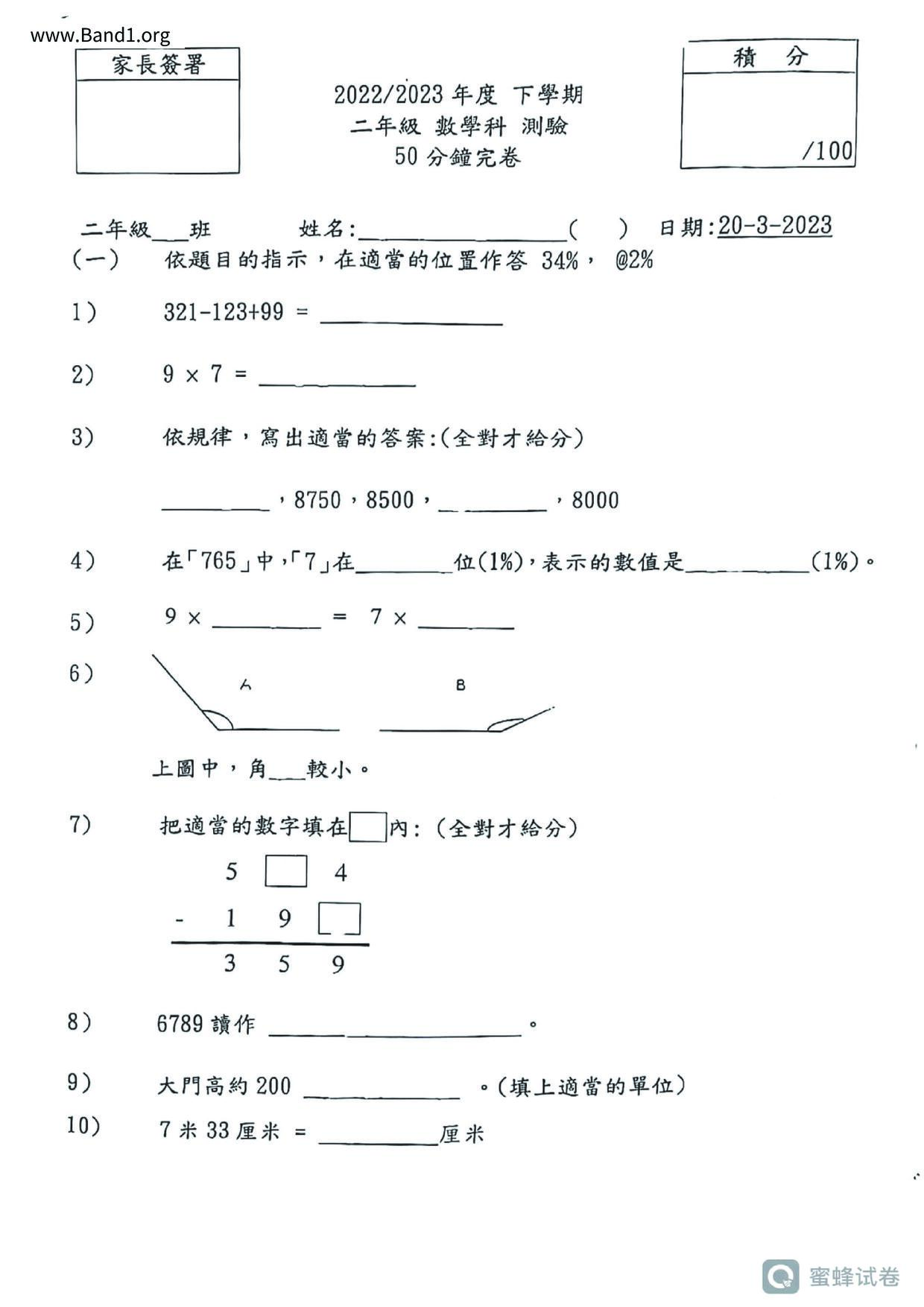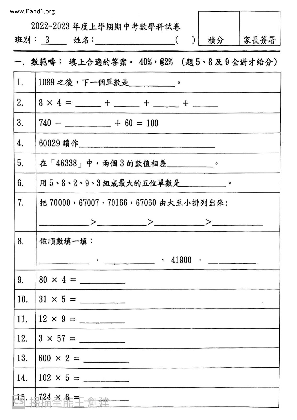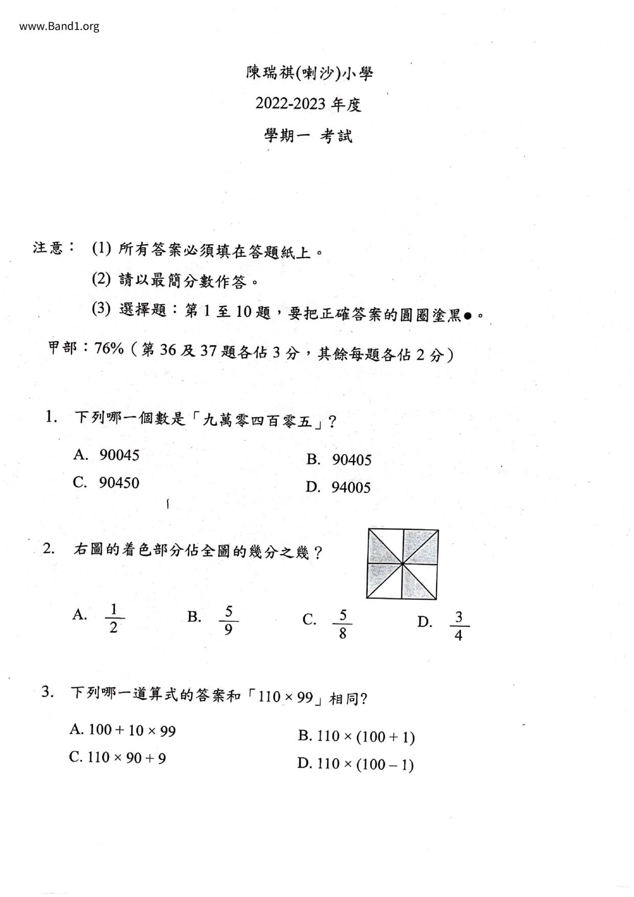 小三 數學 (P3 Maths)