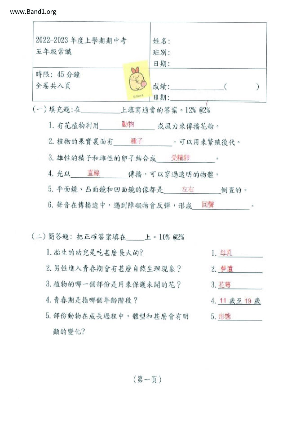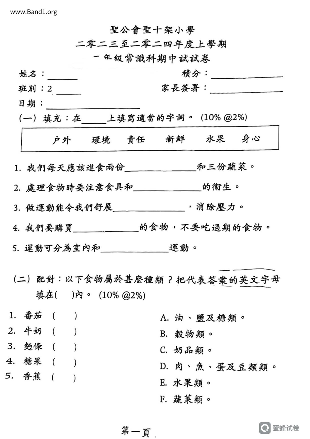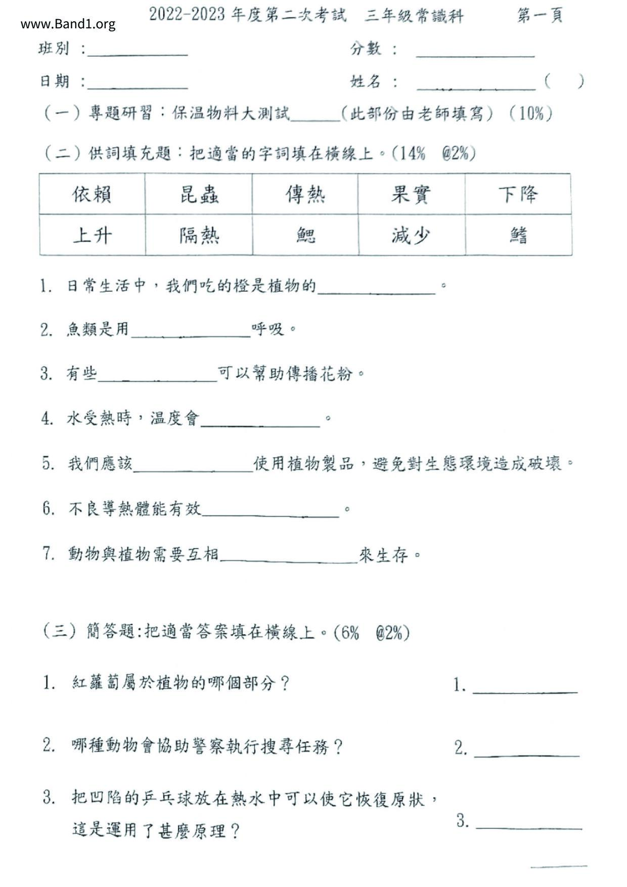 小二 常識 聖公會聖十架小學
