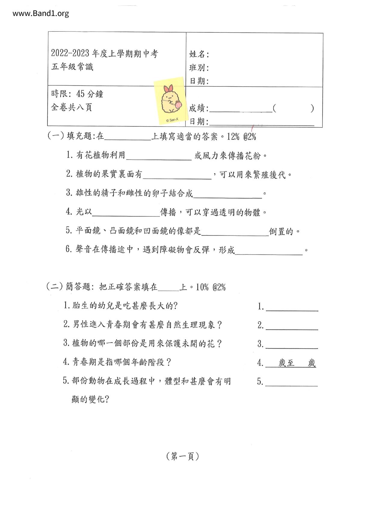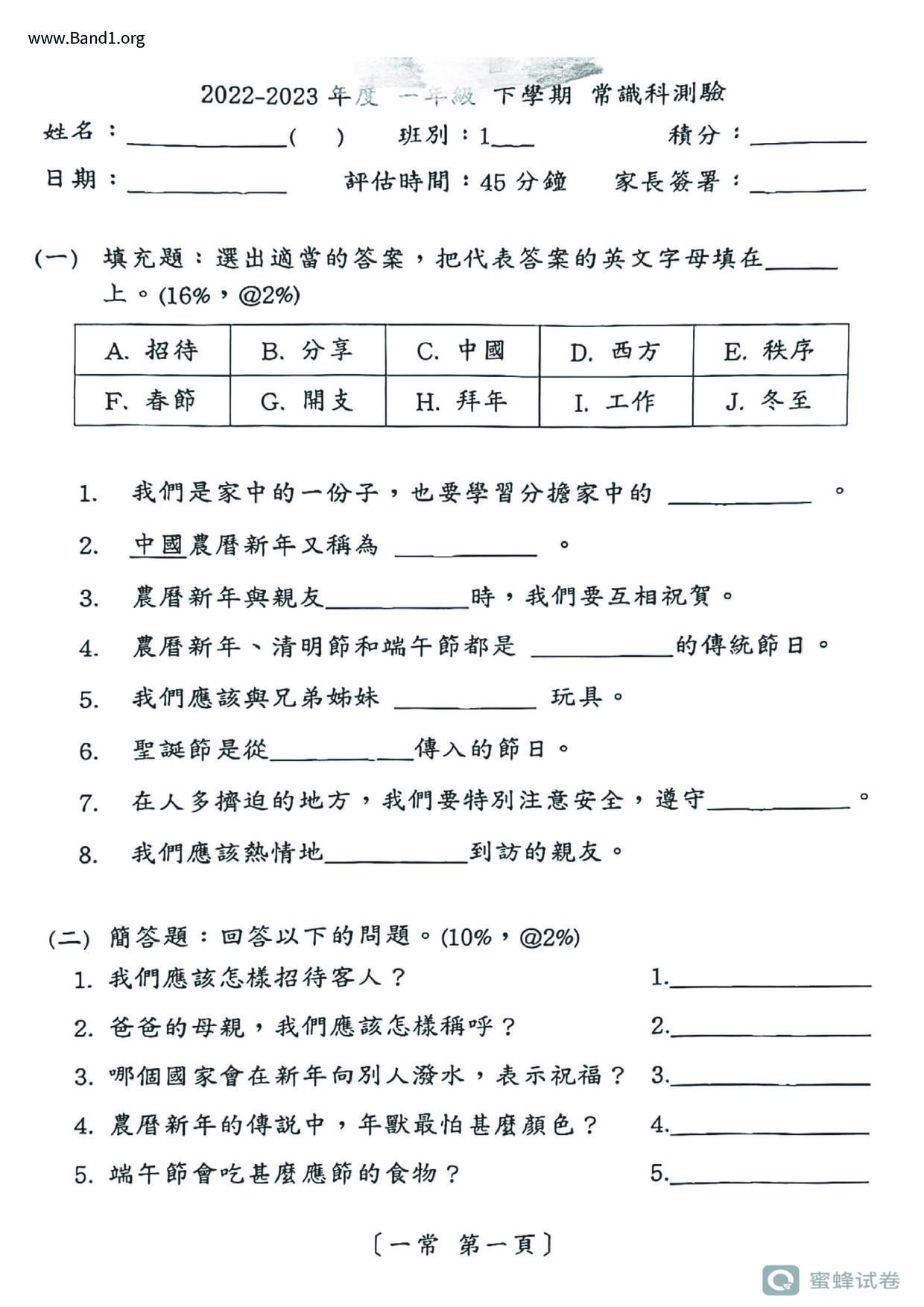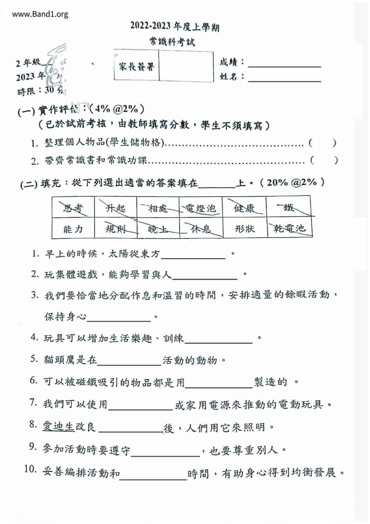 小二 常識 聖公會聖十架小學