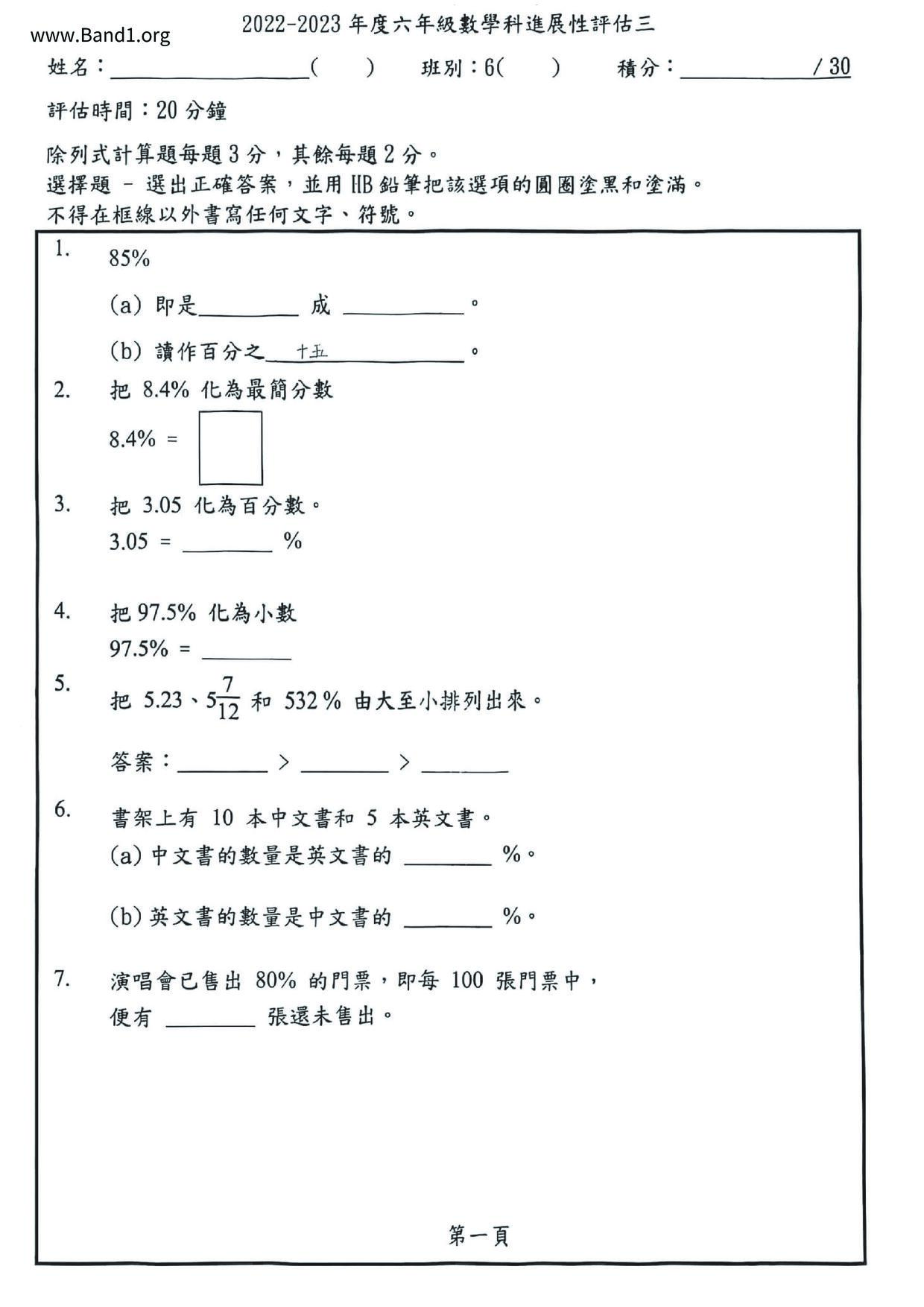 小六 數學 (P6 Maths)