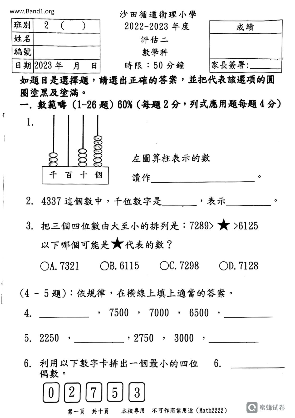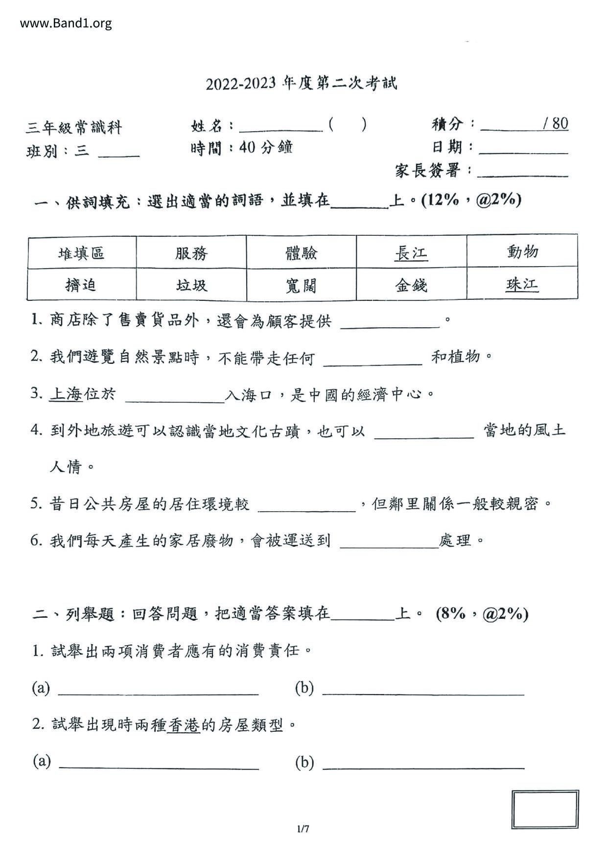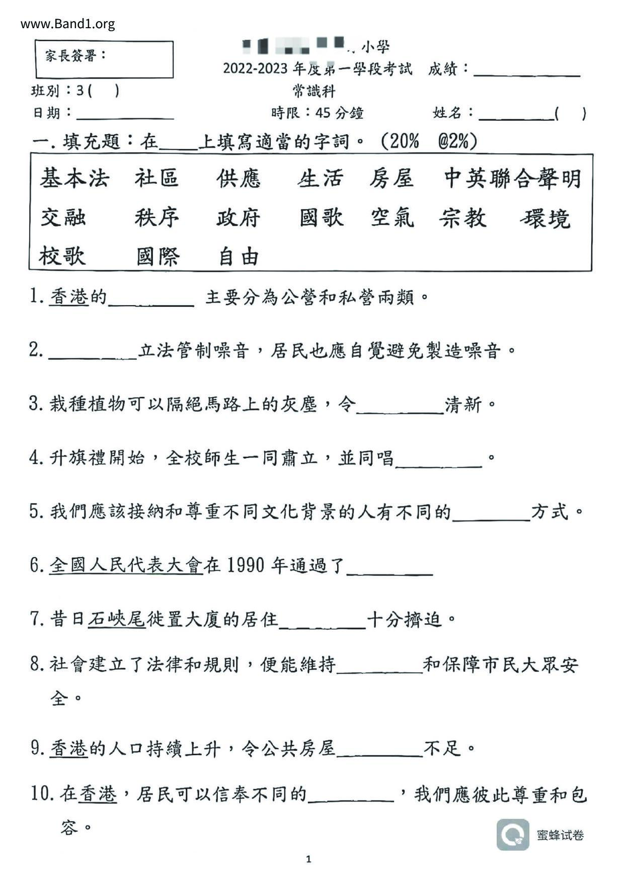 香港試卷