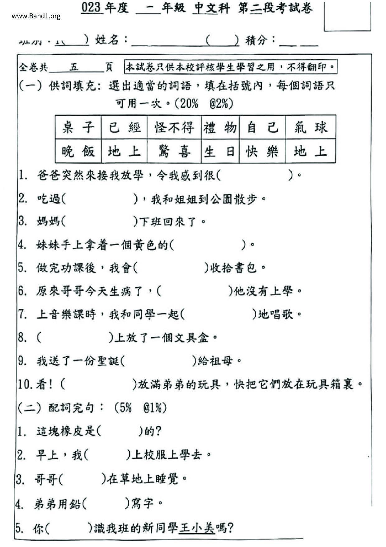 小五 中文 (P5 Chinese)