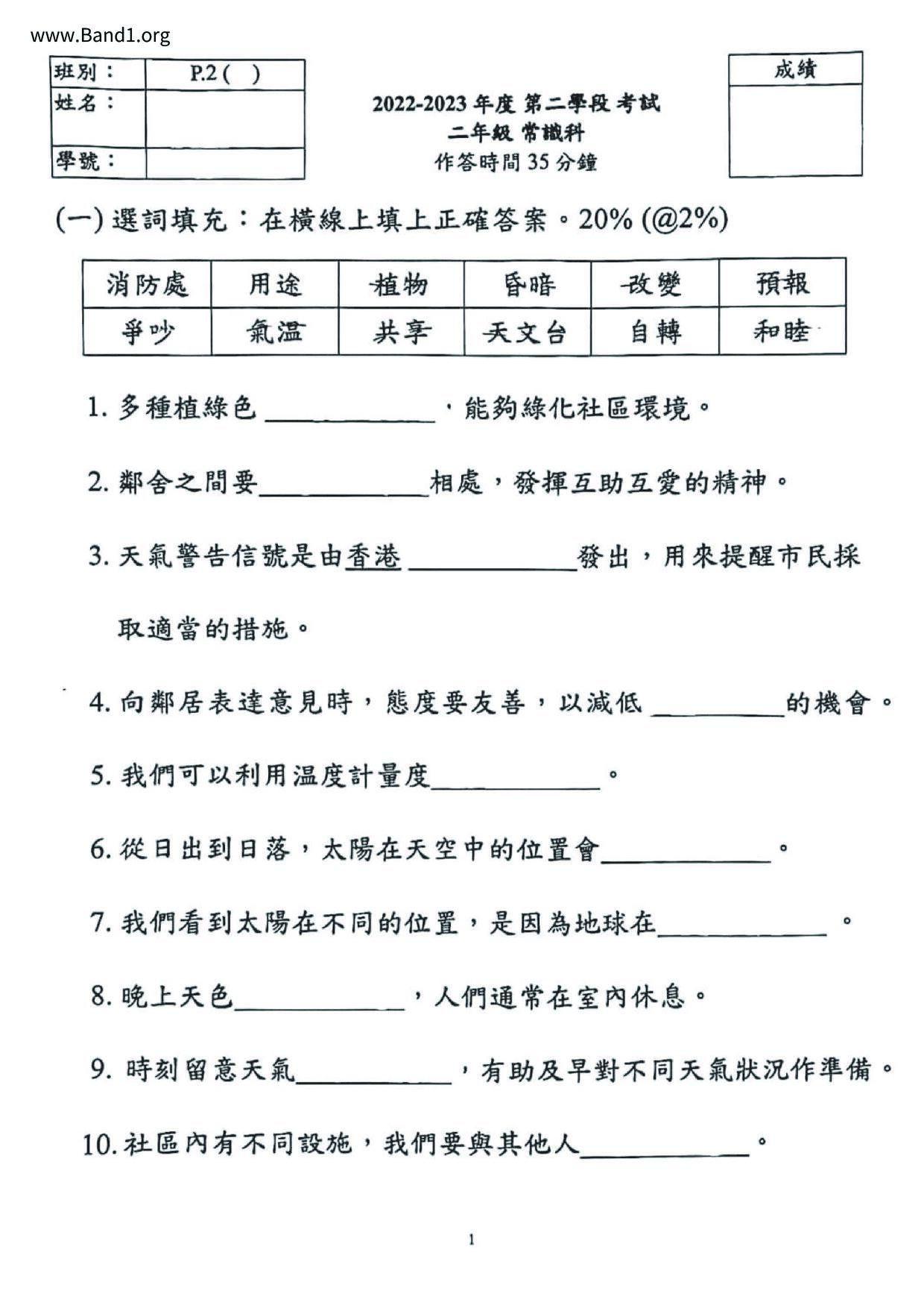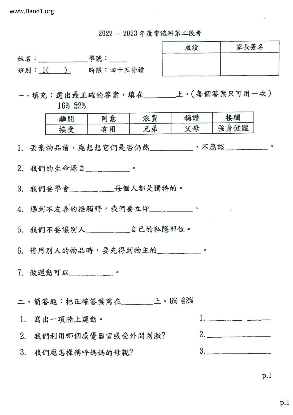 小二 常識 (P2 GS)