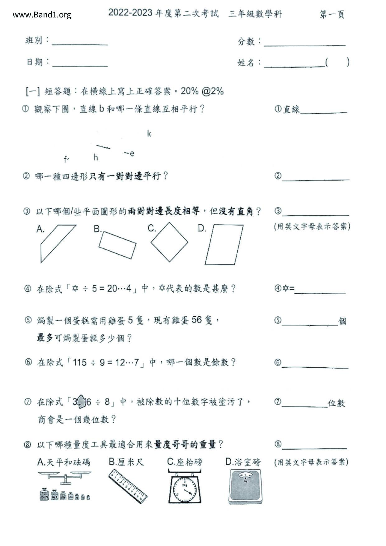 小二 數學 (P2 Maths)