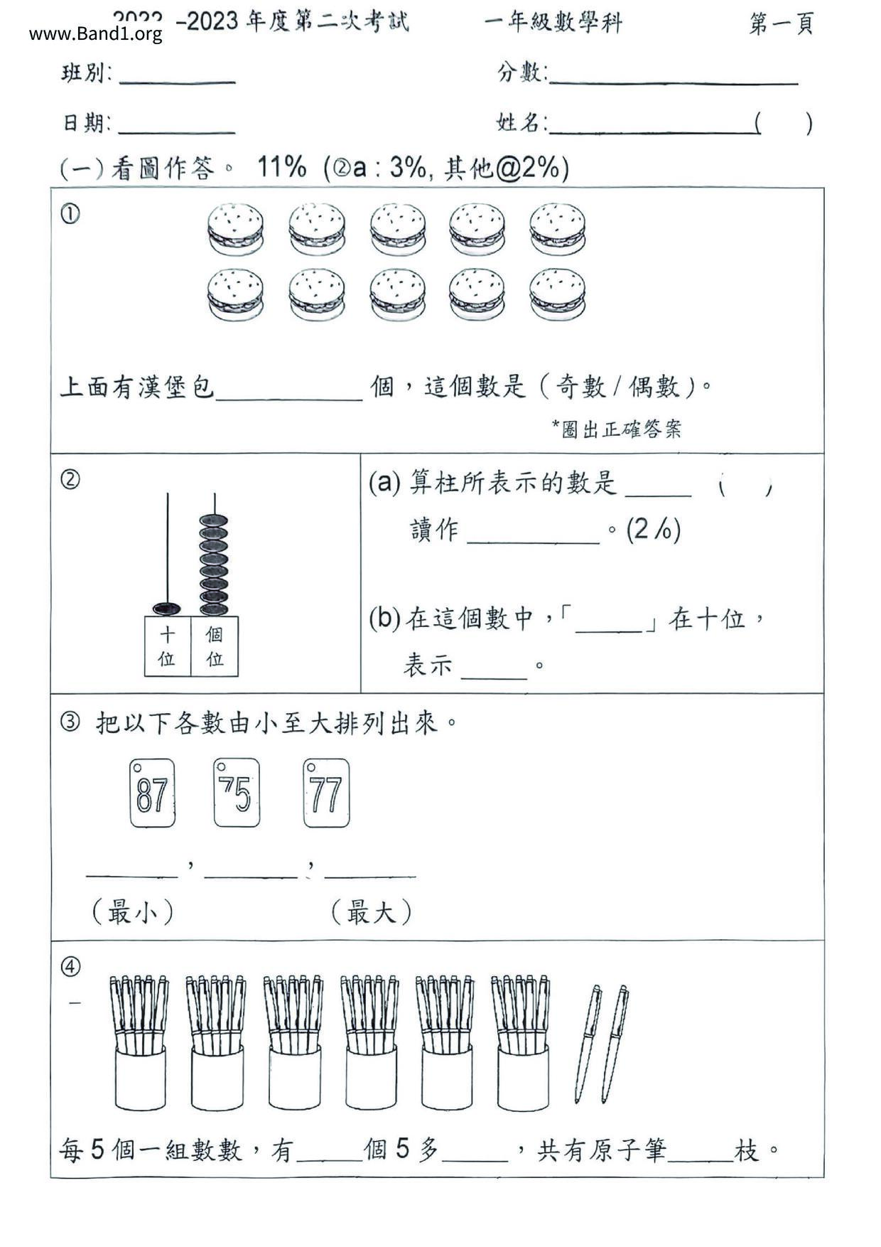 小一 數學 (P1 Maths)