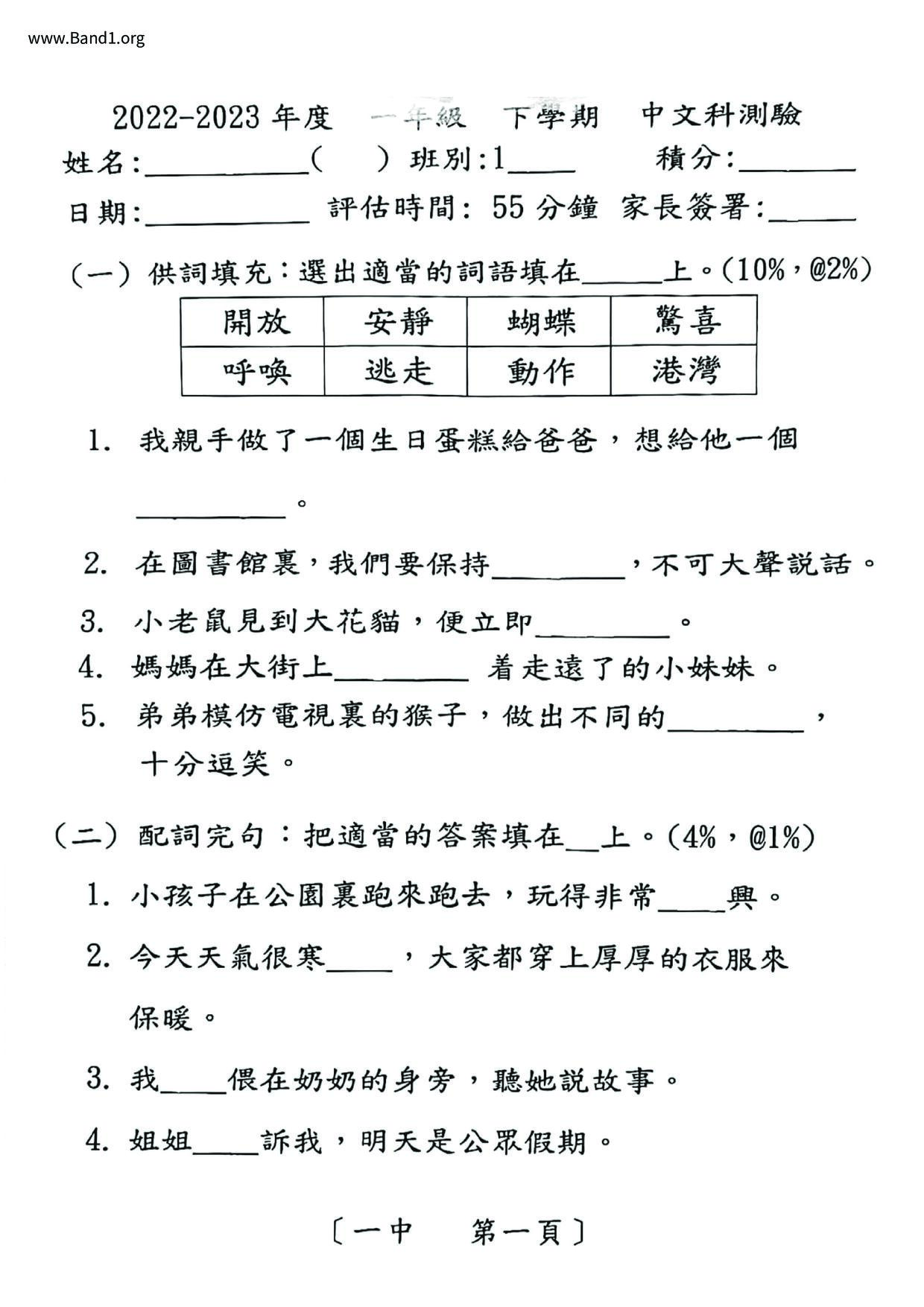 小一 中文 (P1 Chinese)