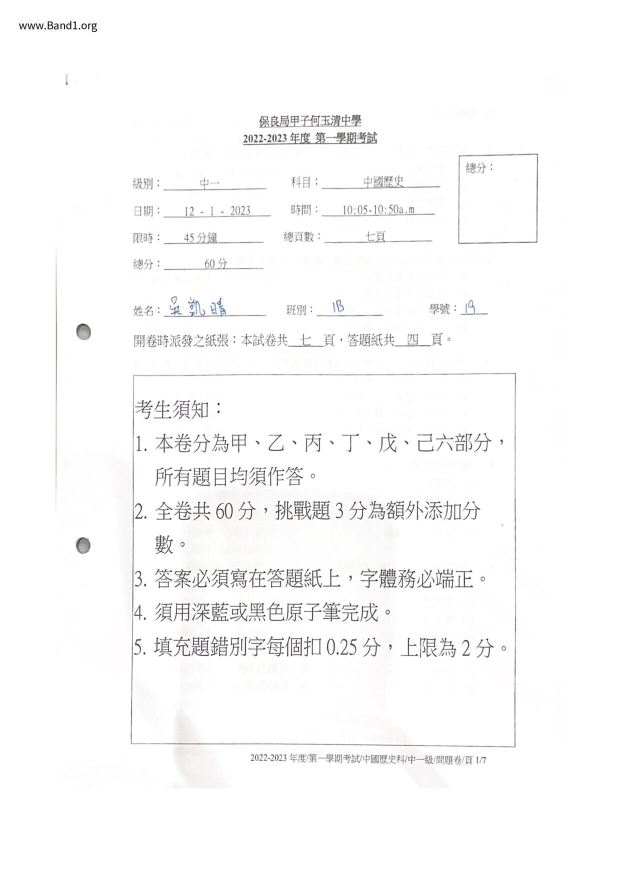中一 中史 保良局甲子何玉清中學