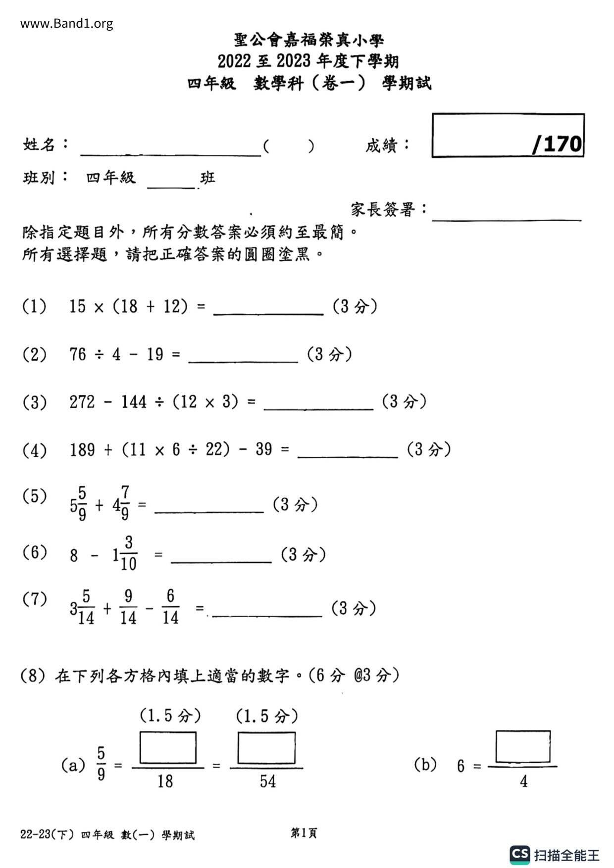 小四 數學 聖公會嘉福榮真小學