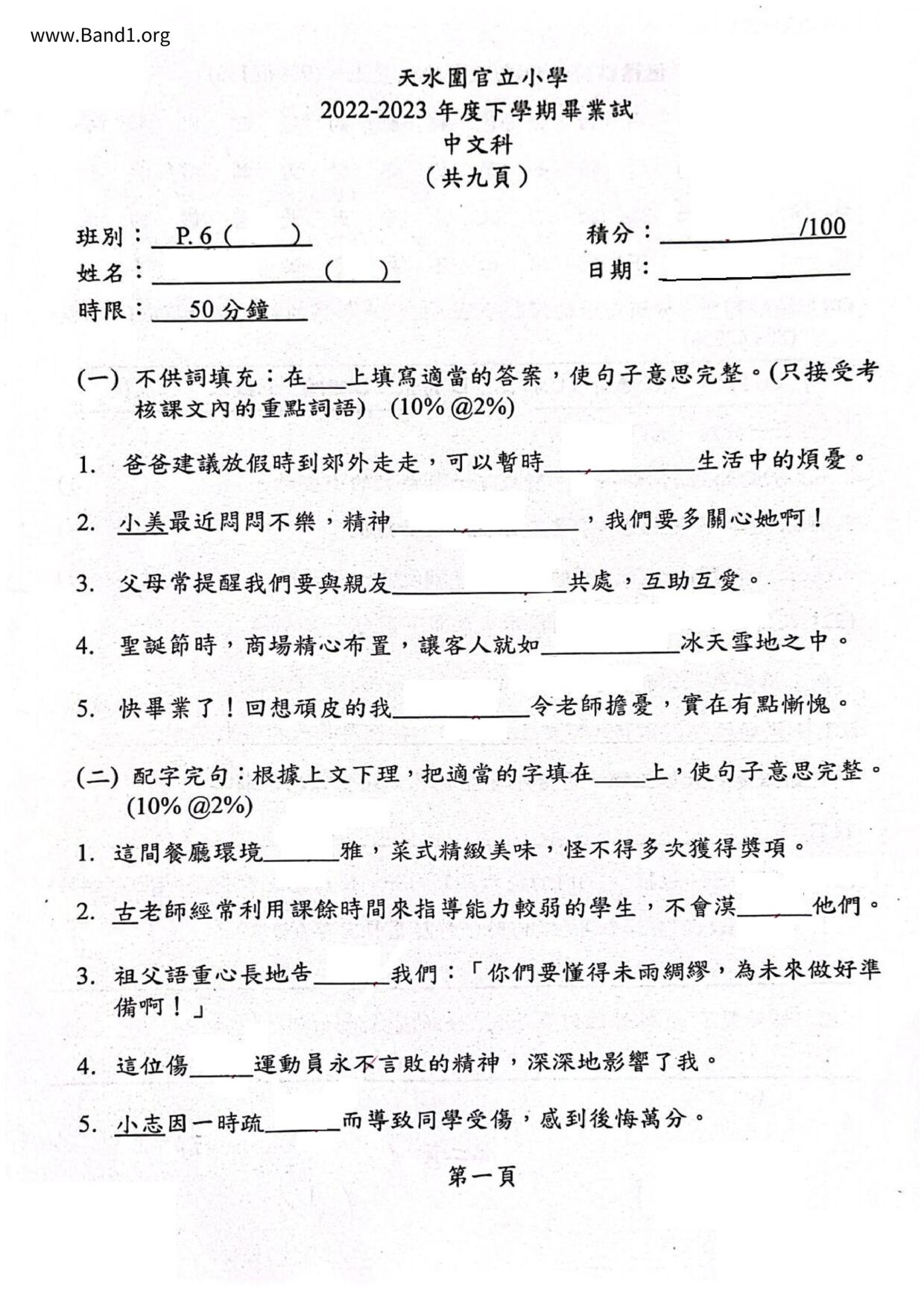 小六 中文 天水圍官立小學