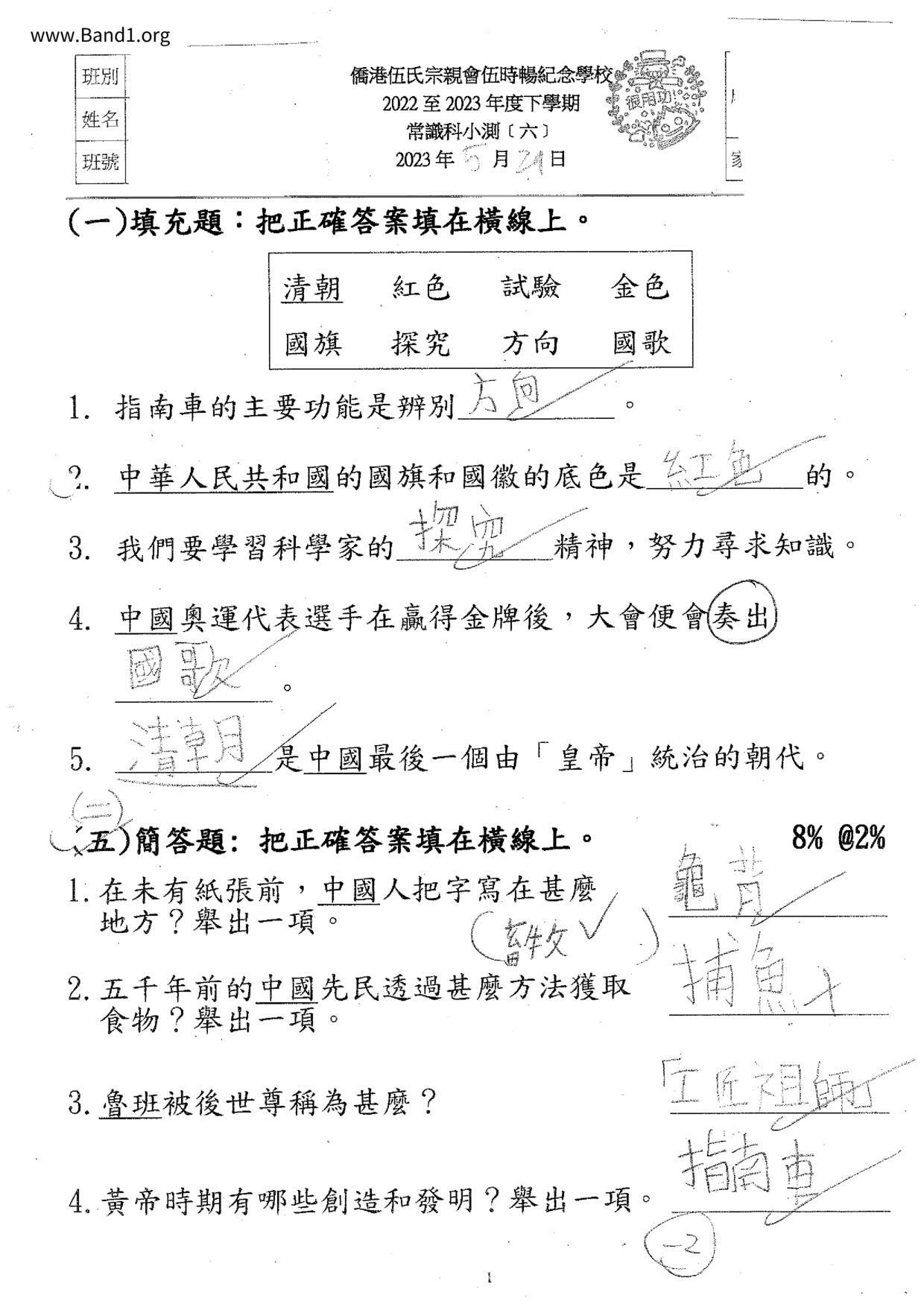 小二 常識 僑港伍氏宗親會伍時暢紀念學校