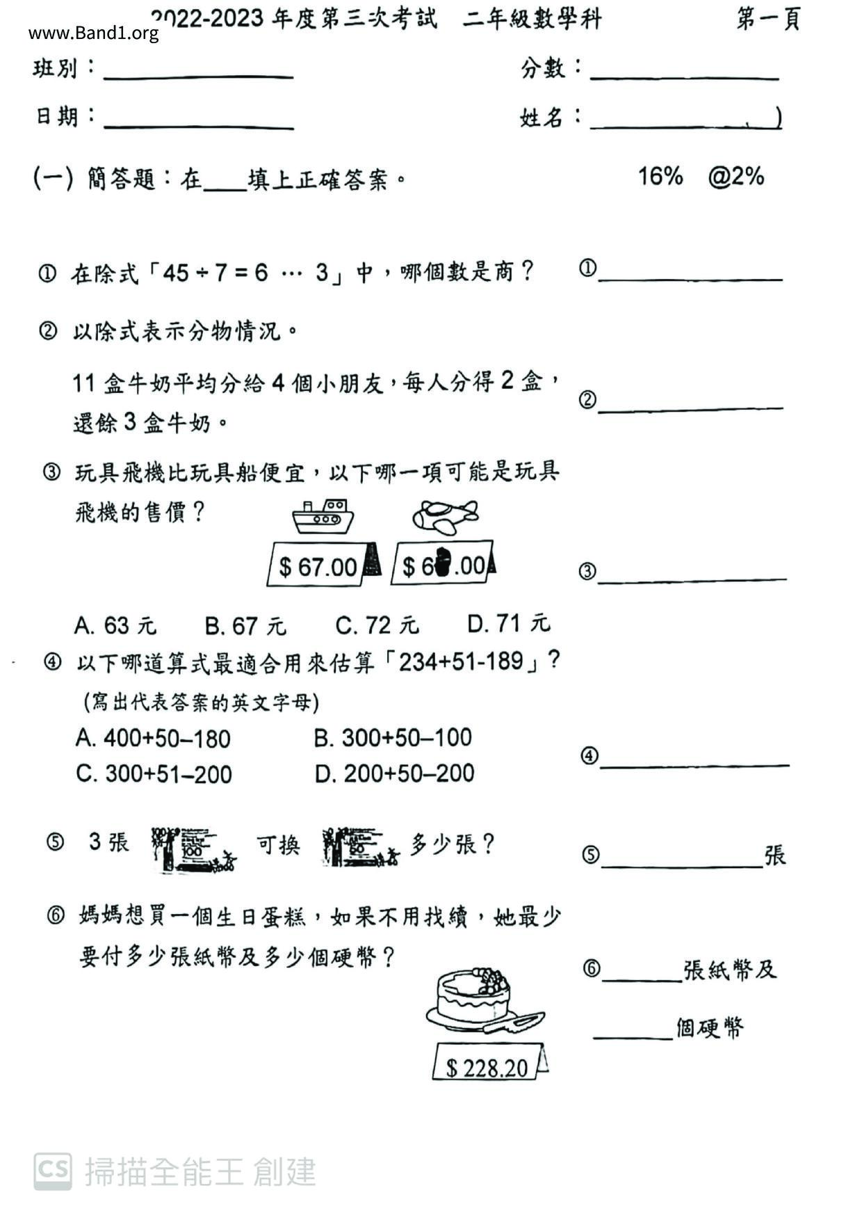 小二 數學 沙田循道衛理小學