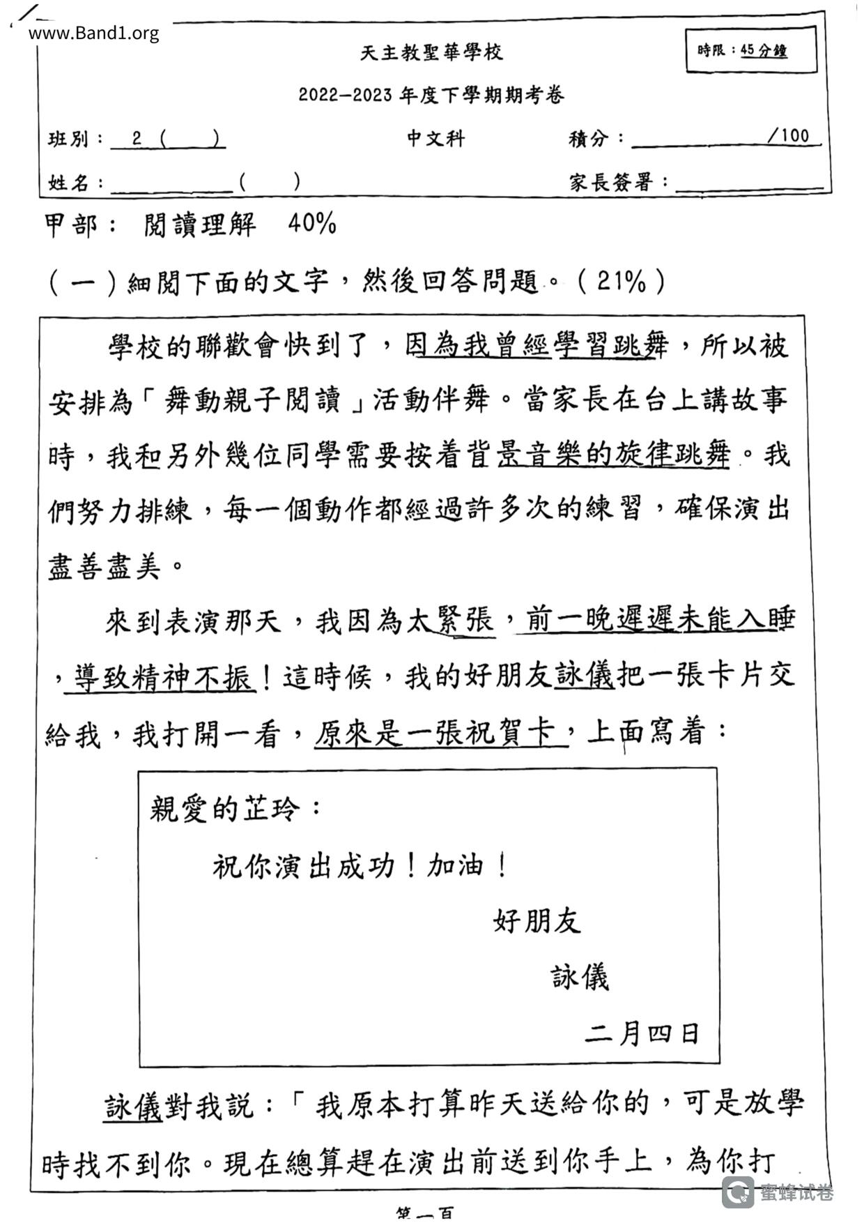 中二 中文 香港四邑商工總會黃棣珊紀念中學
