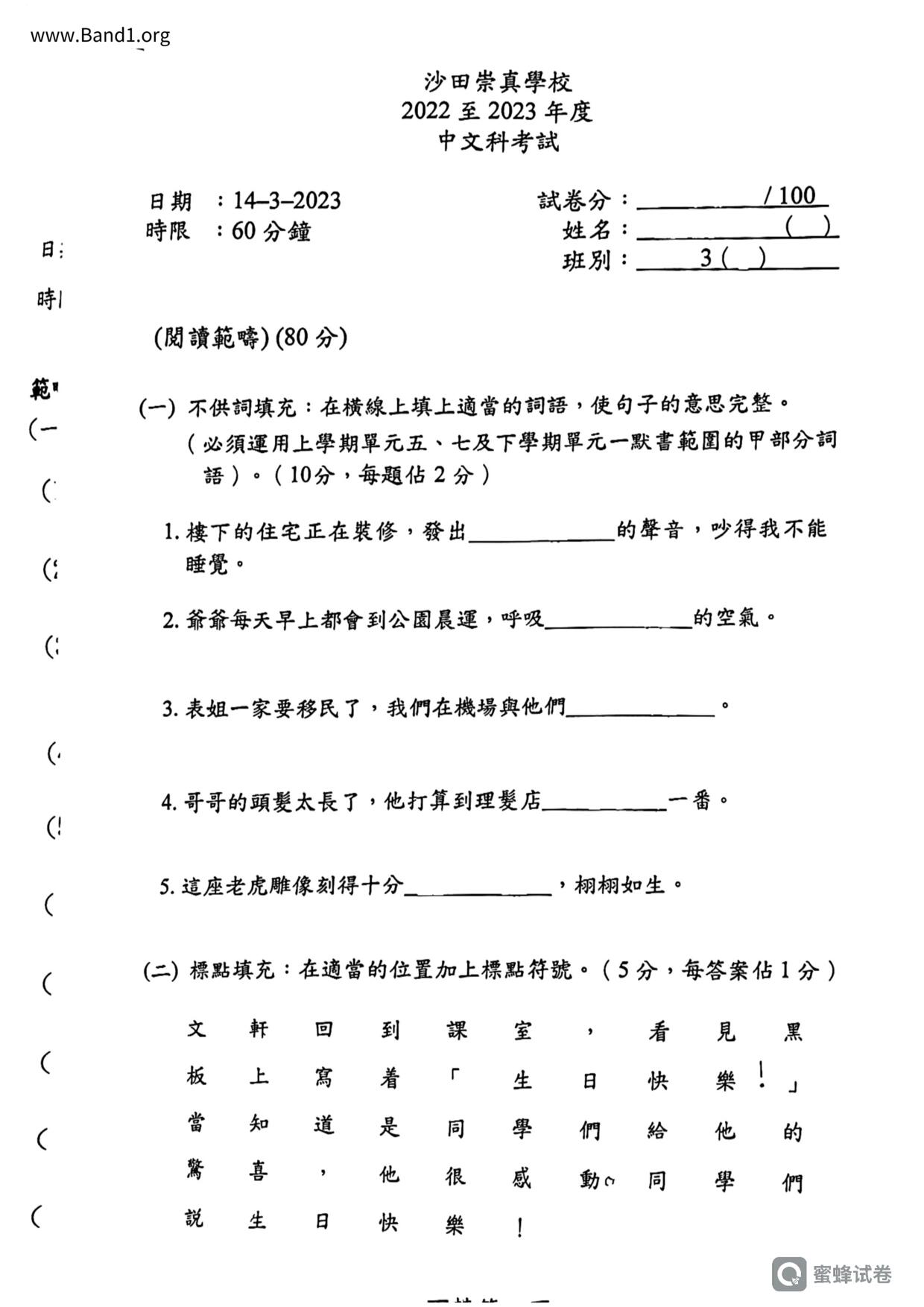 小三 中文 沙田崇真學校