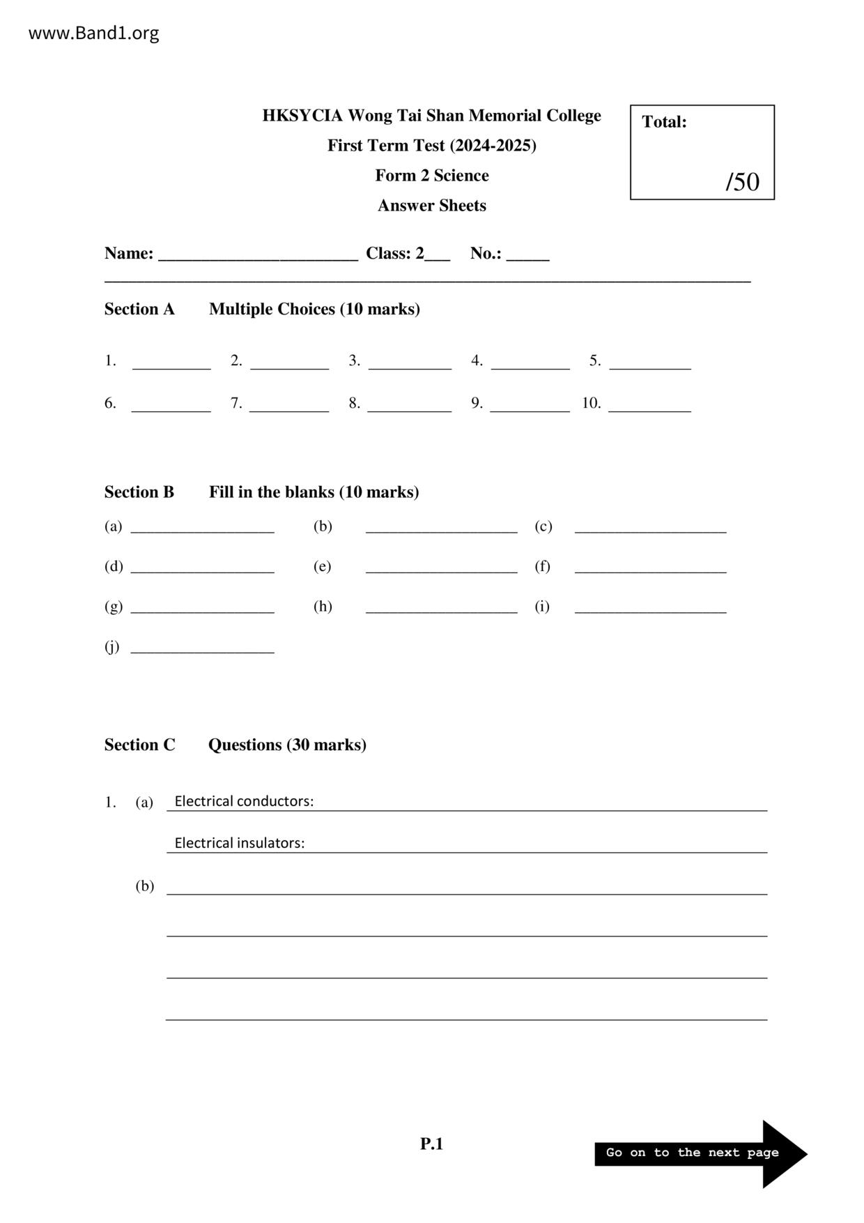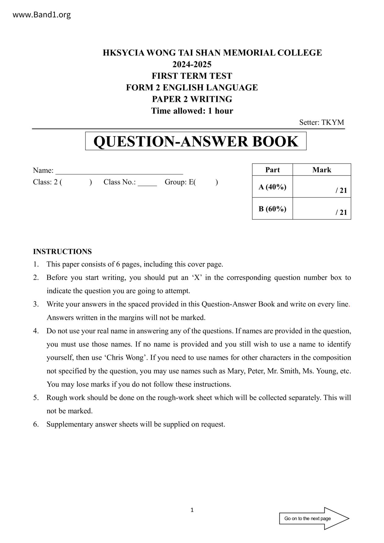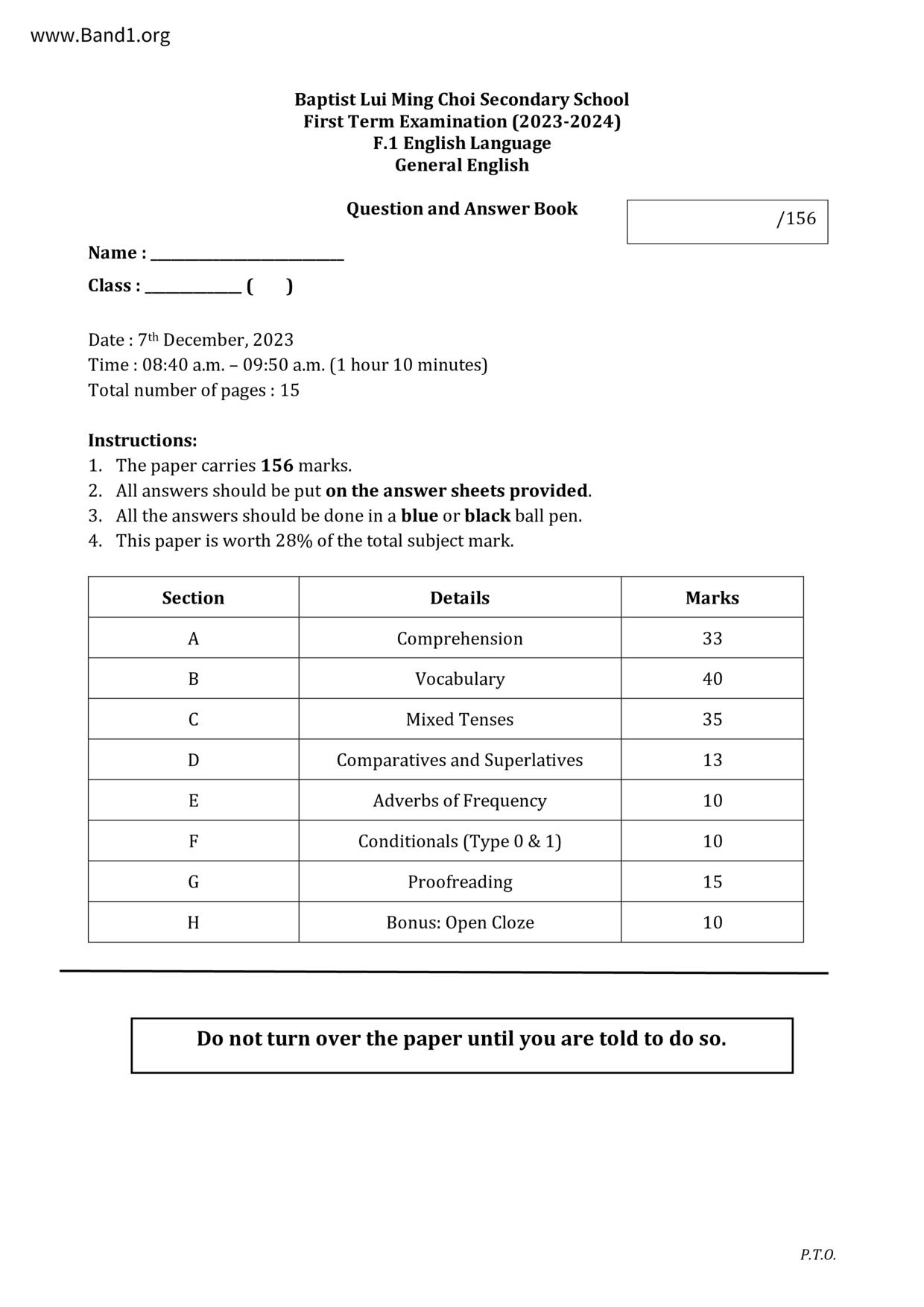 中一 英文 浸信會呂明才中學