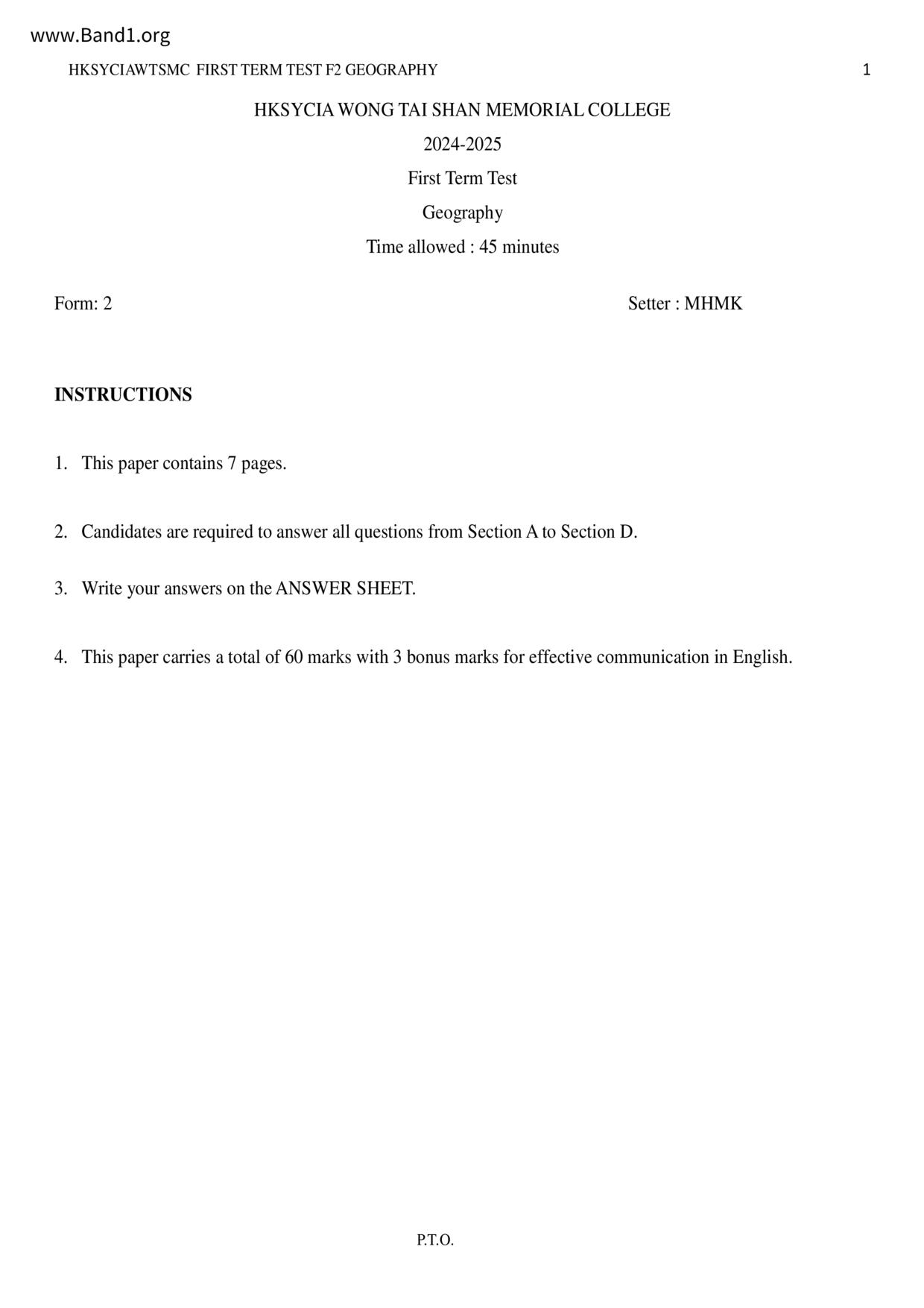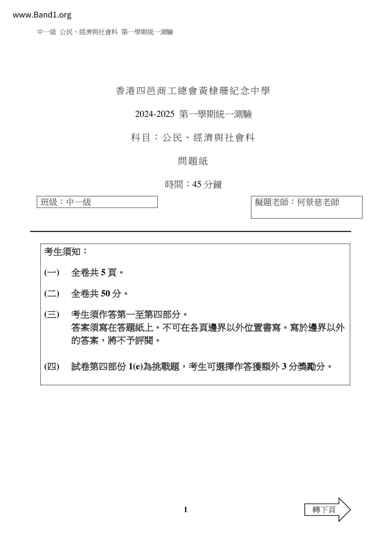 中二 英文 香港四邑商工總會黃棣珊紀念中學