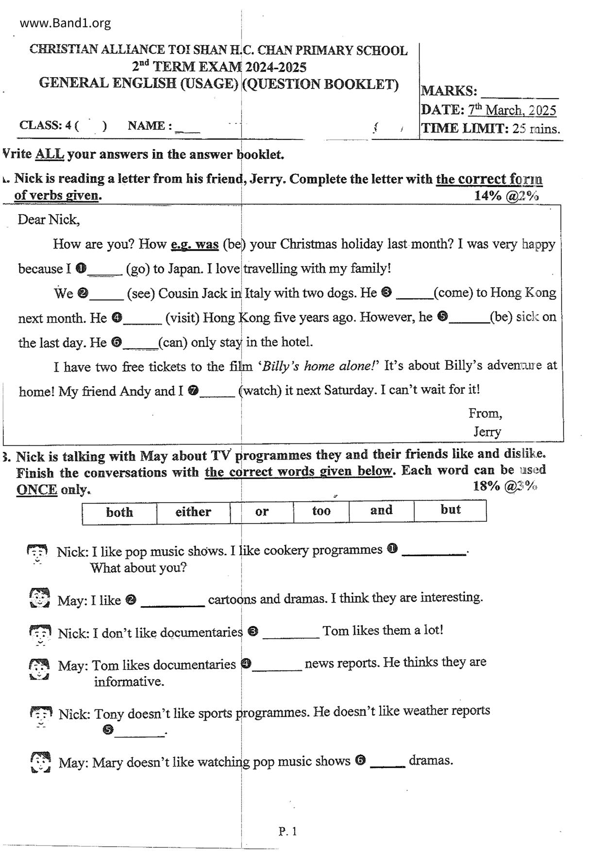 小四 英文 香港九龍塘基督教中華宣道會台山陳元喜小學