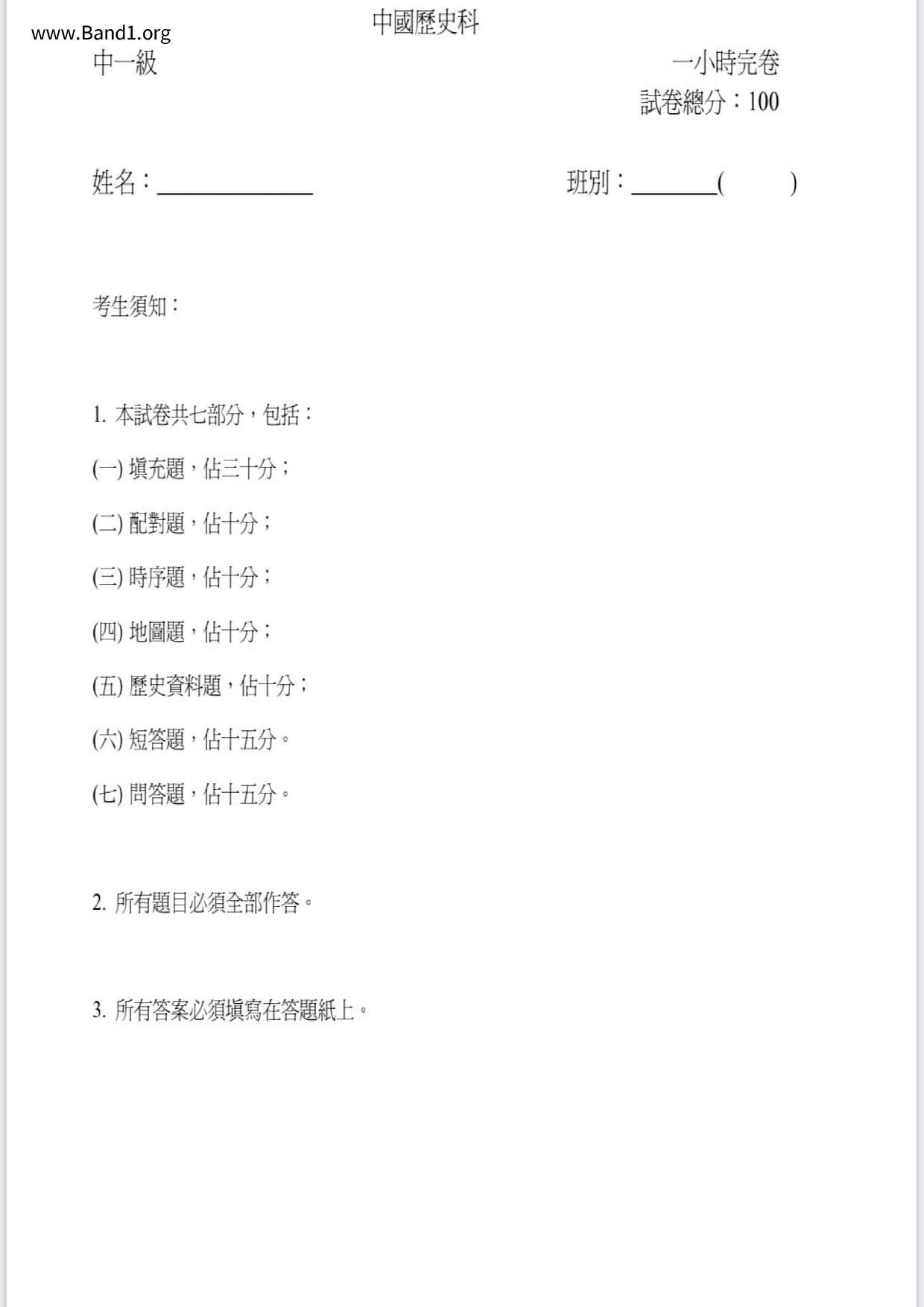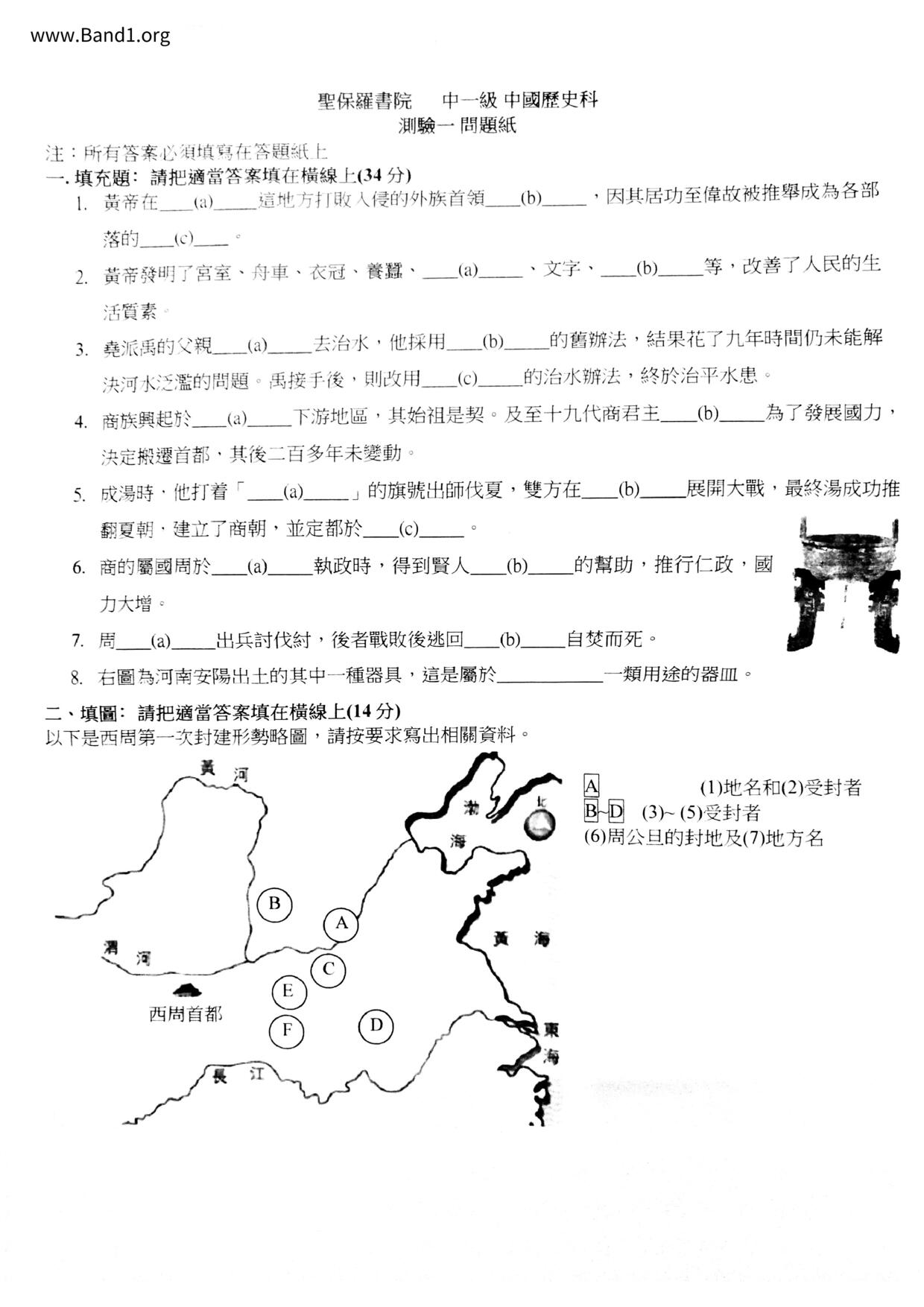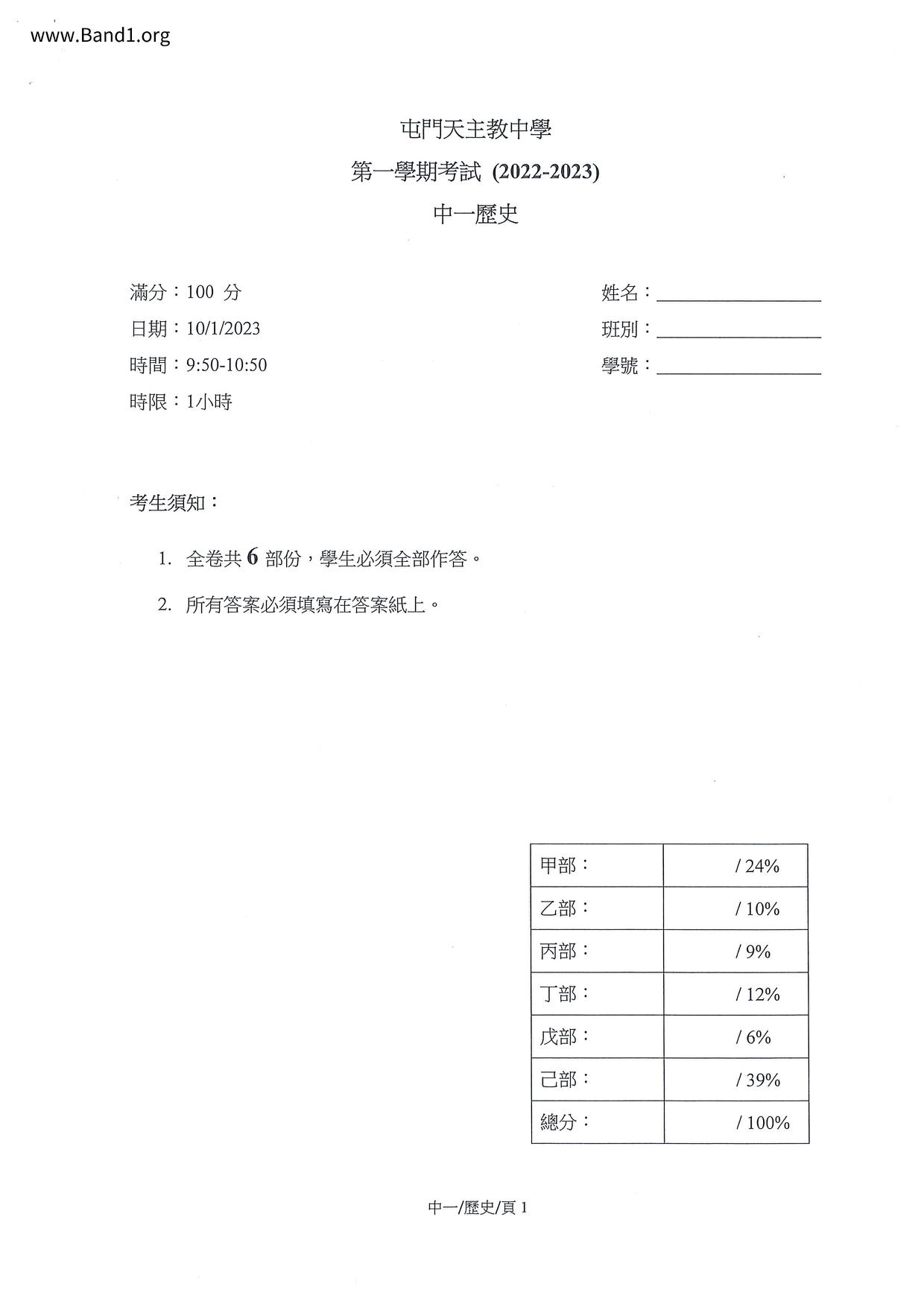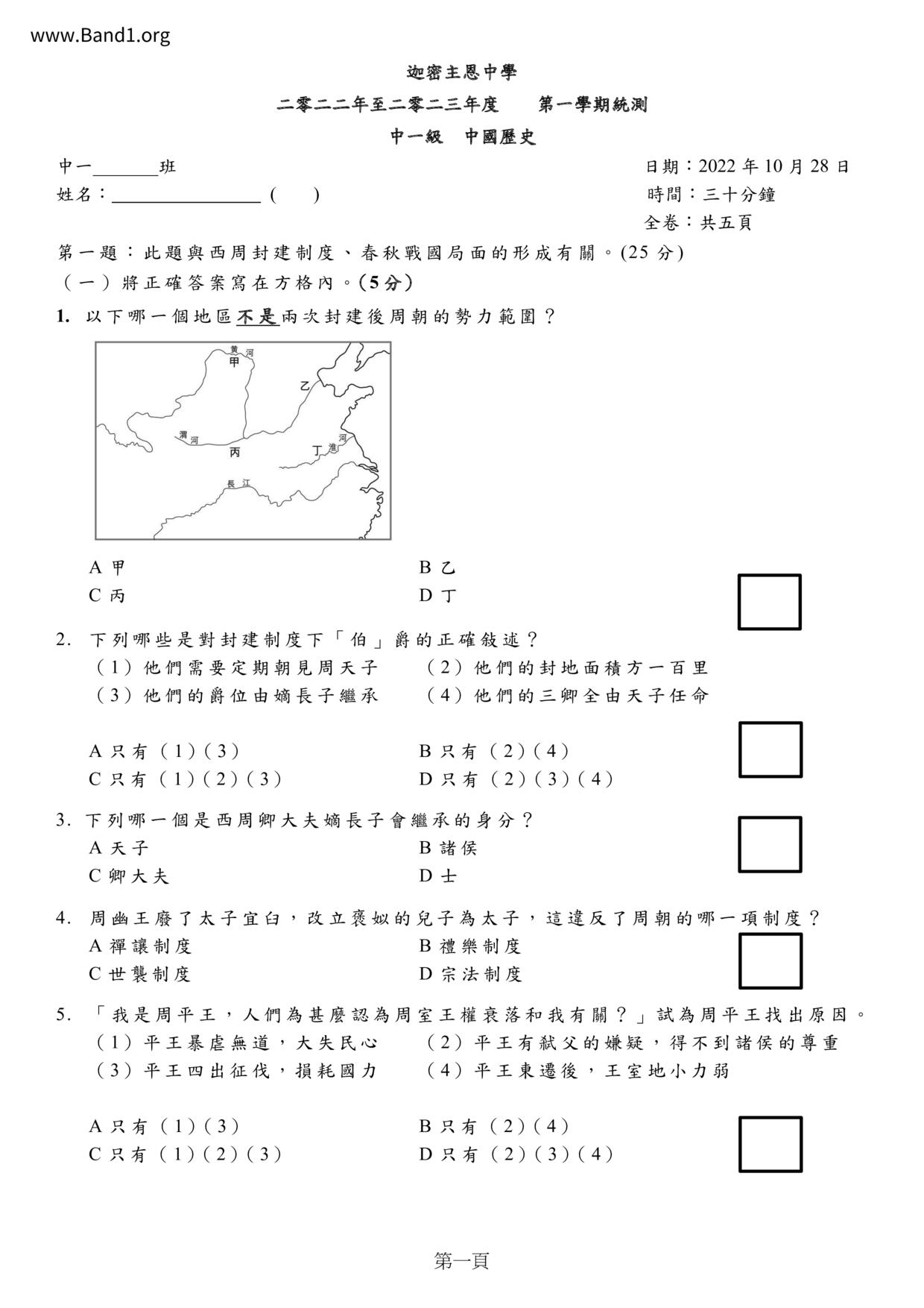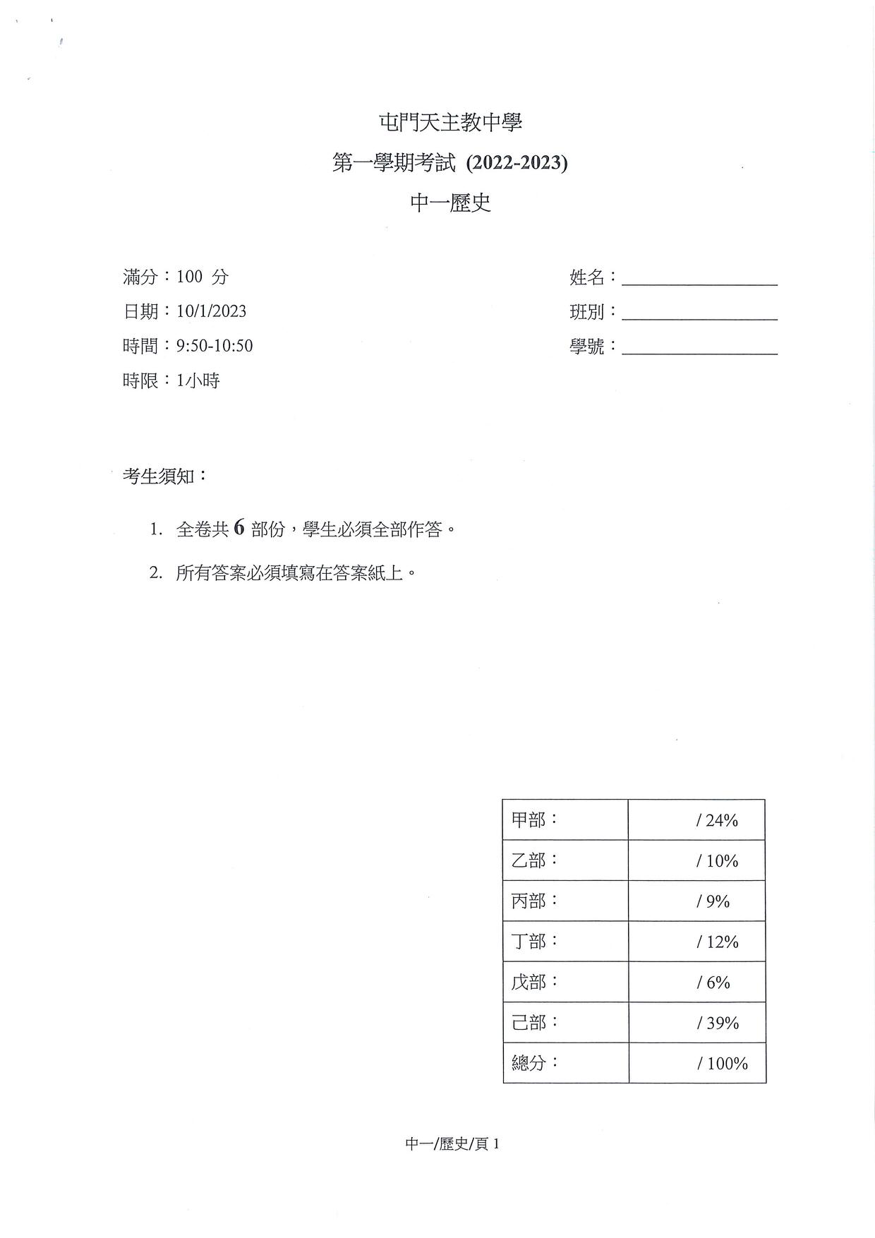 中一 中史 香港四邑商工總會黃棣珊紀念中學