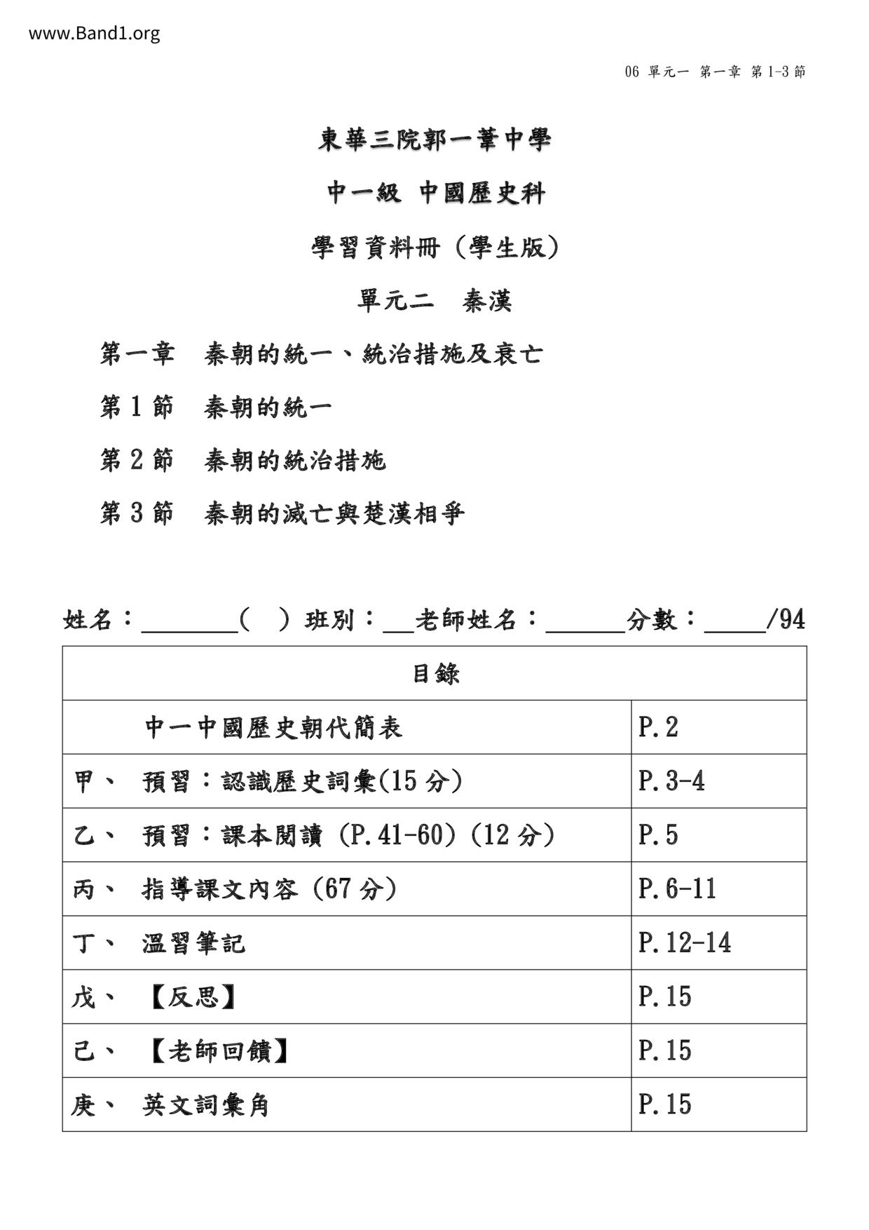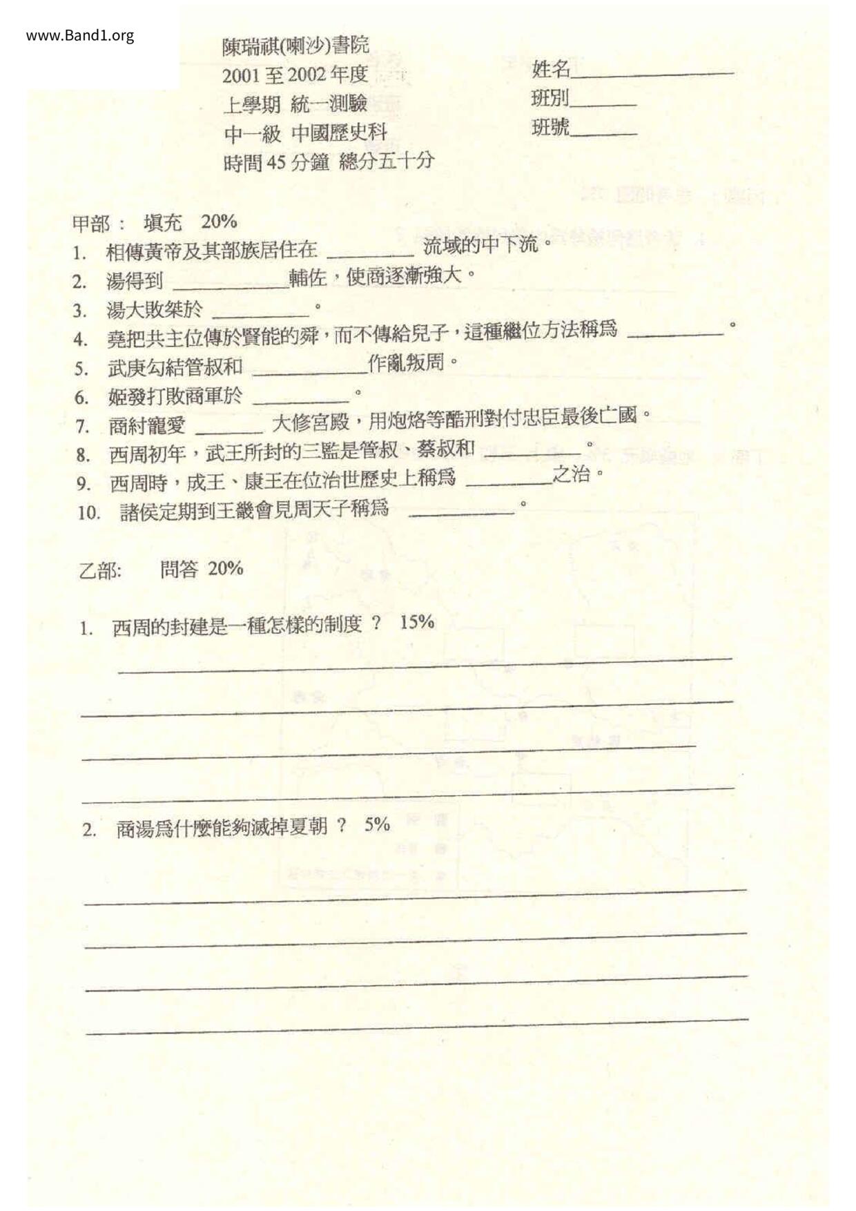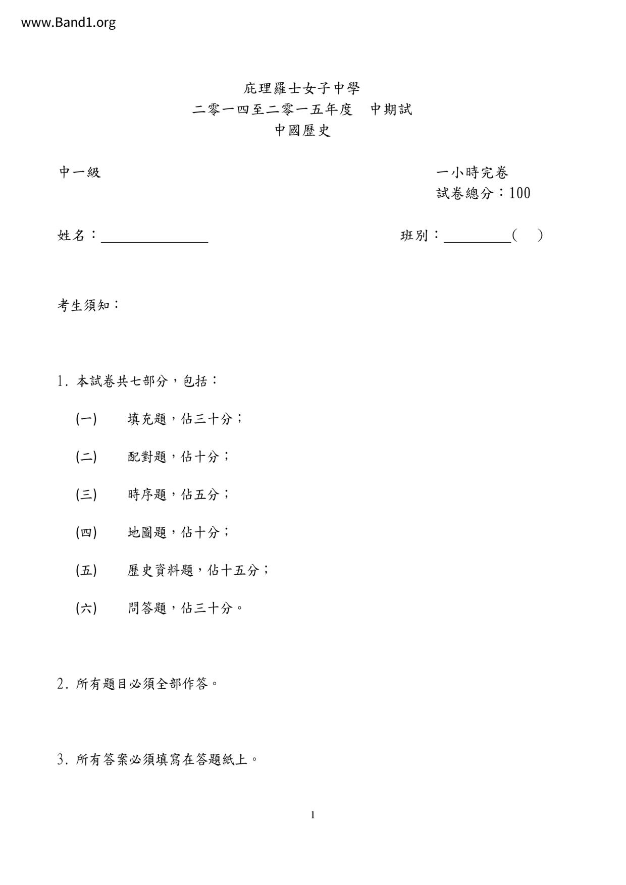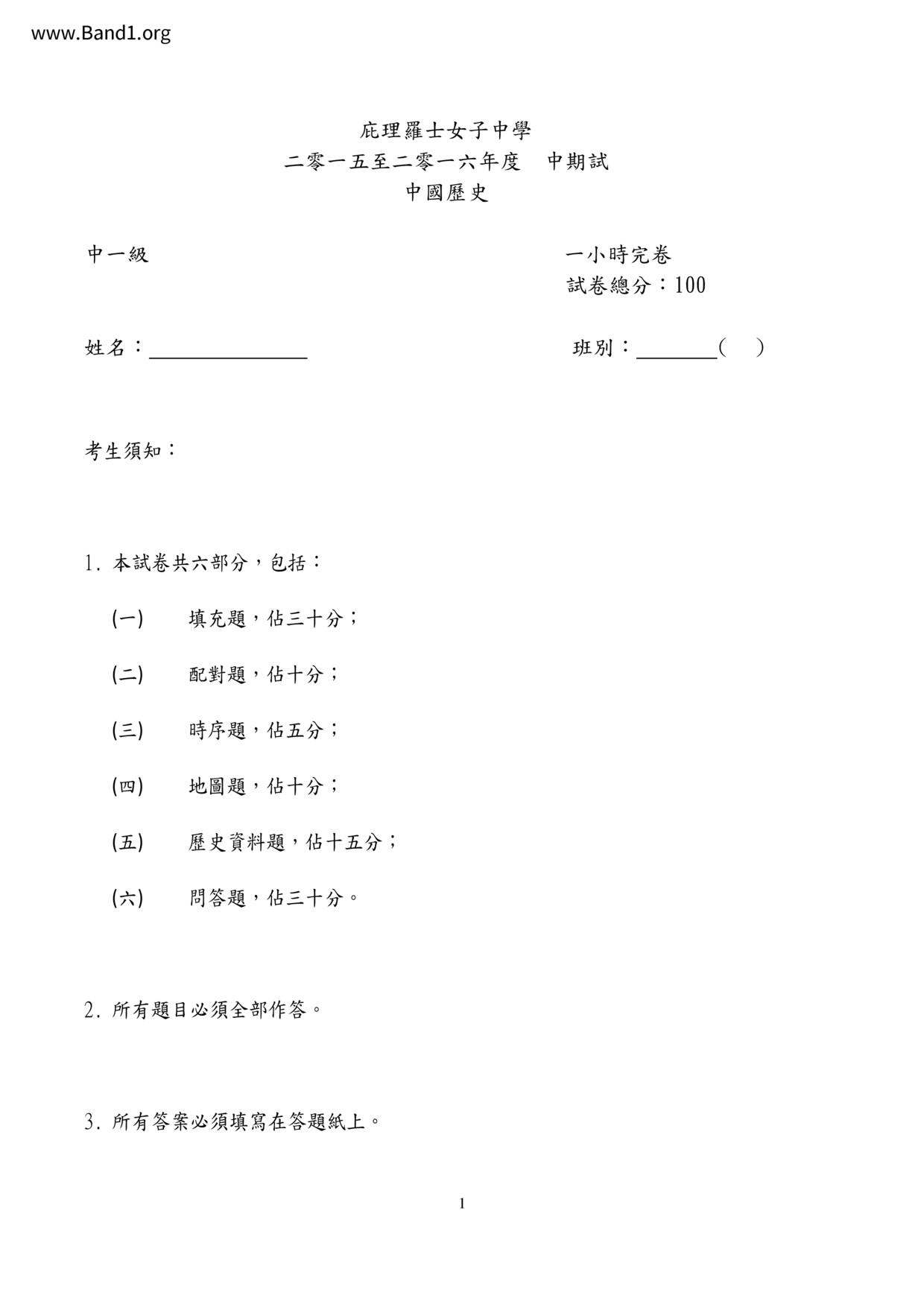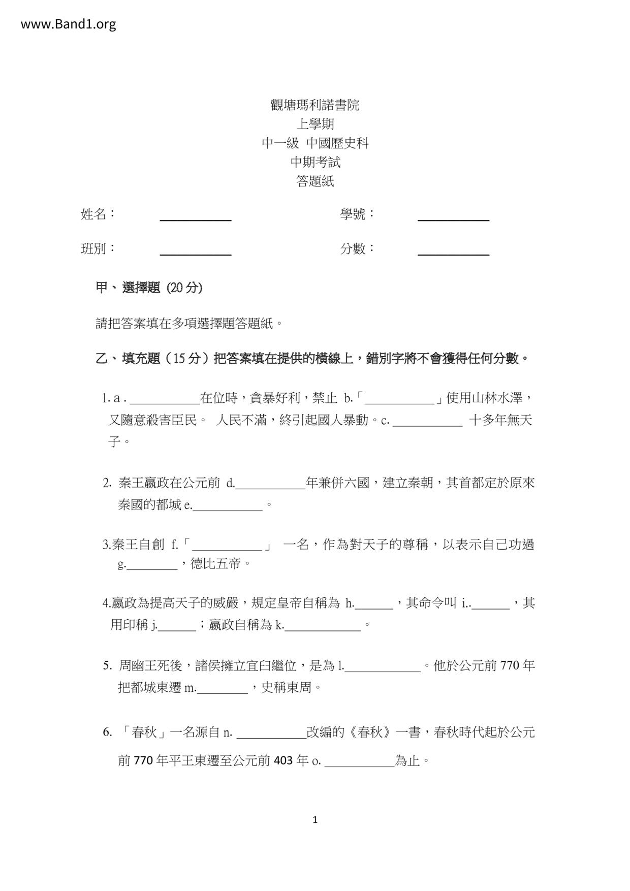 中一 中史 香港四邑商工總會黃棣珊紀念中學