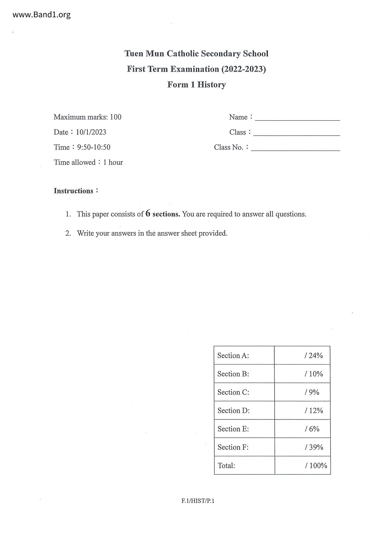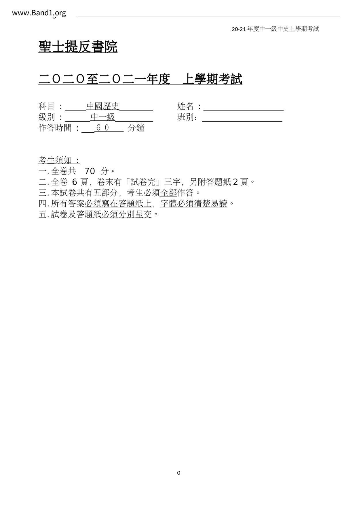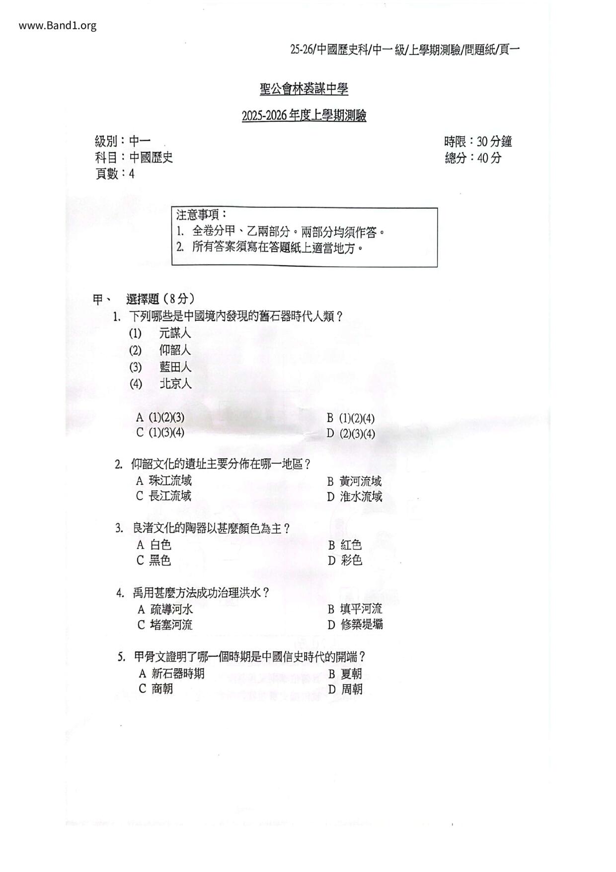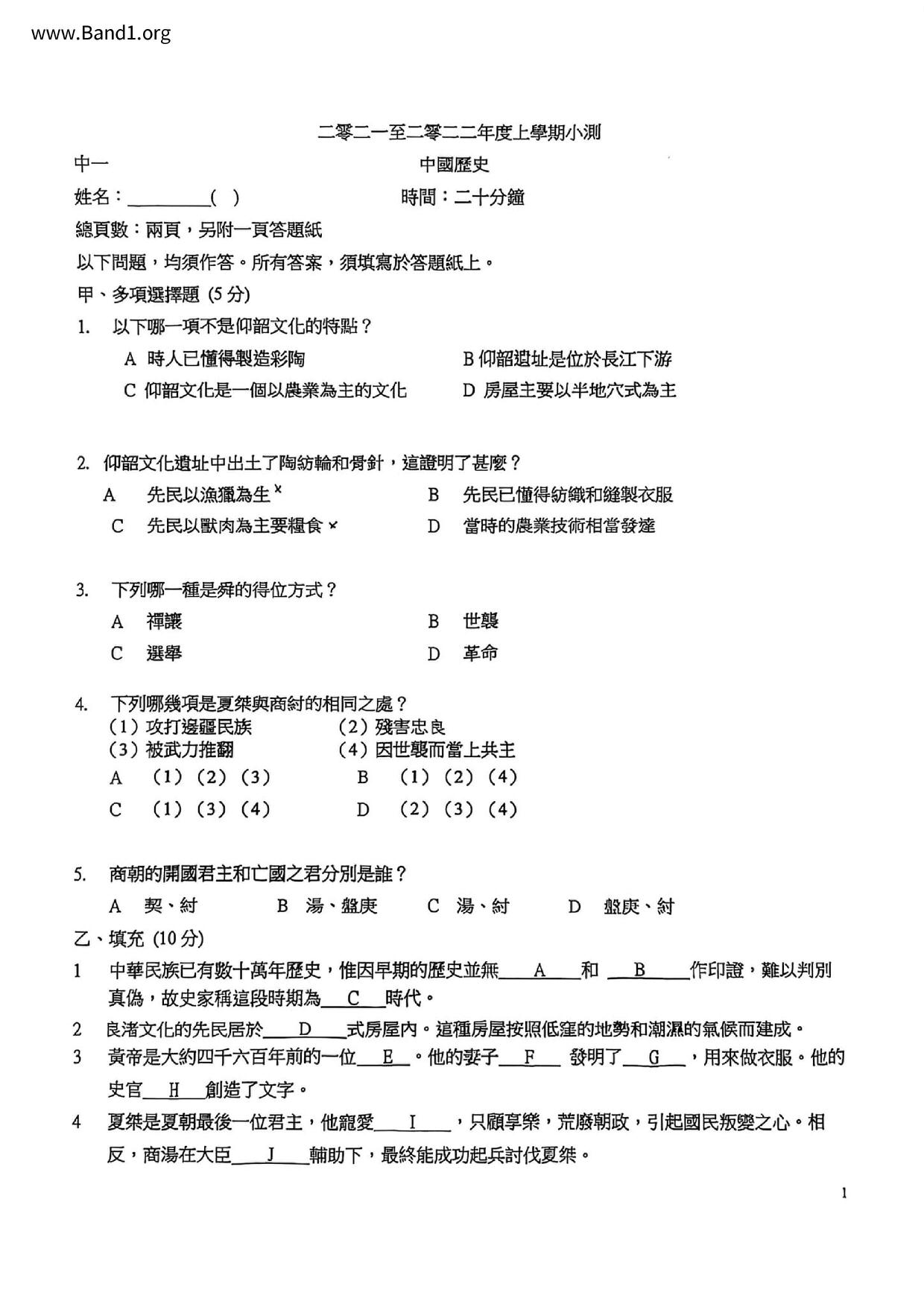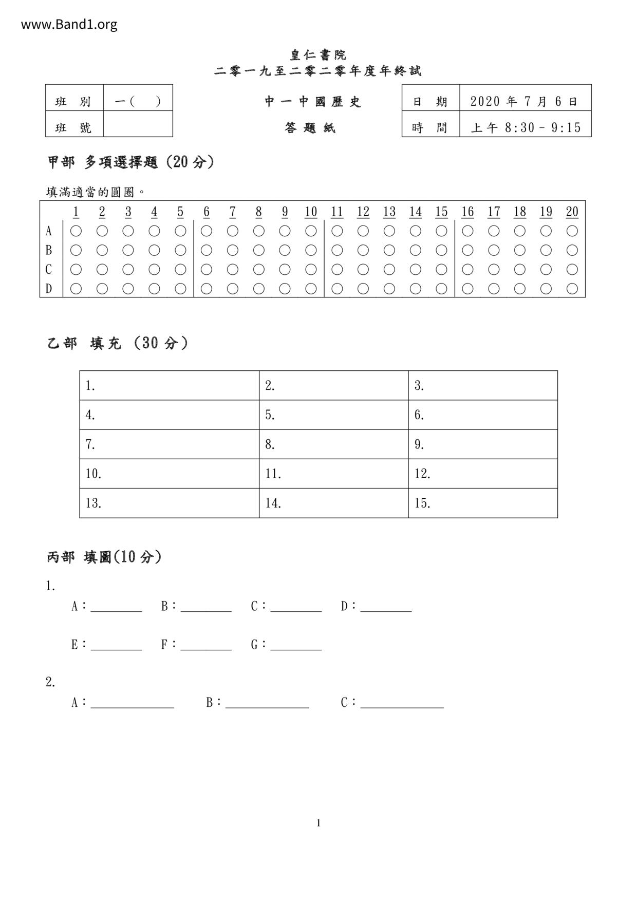 中一 中史 香港四邑商工總會黃棣珊紀念中學