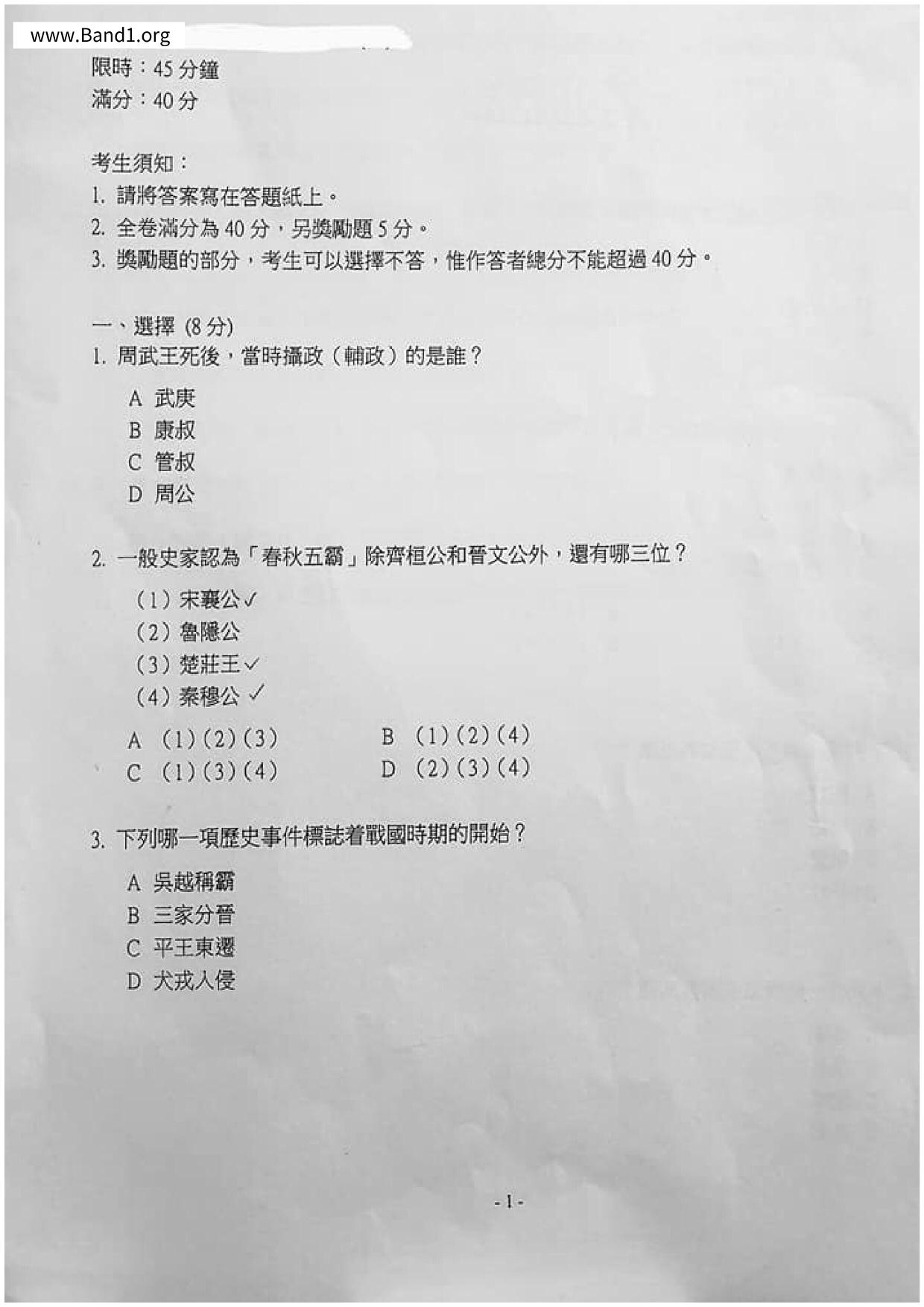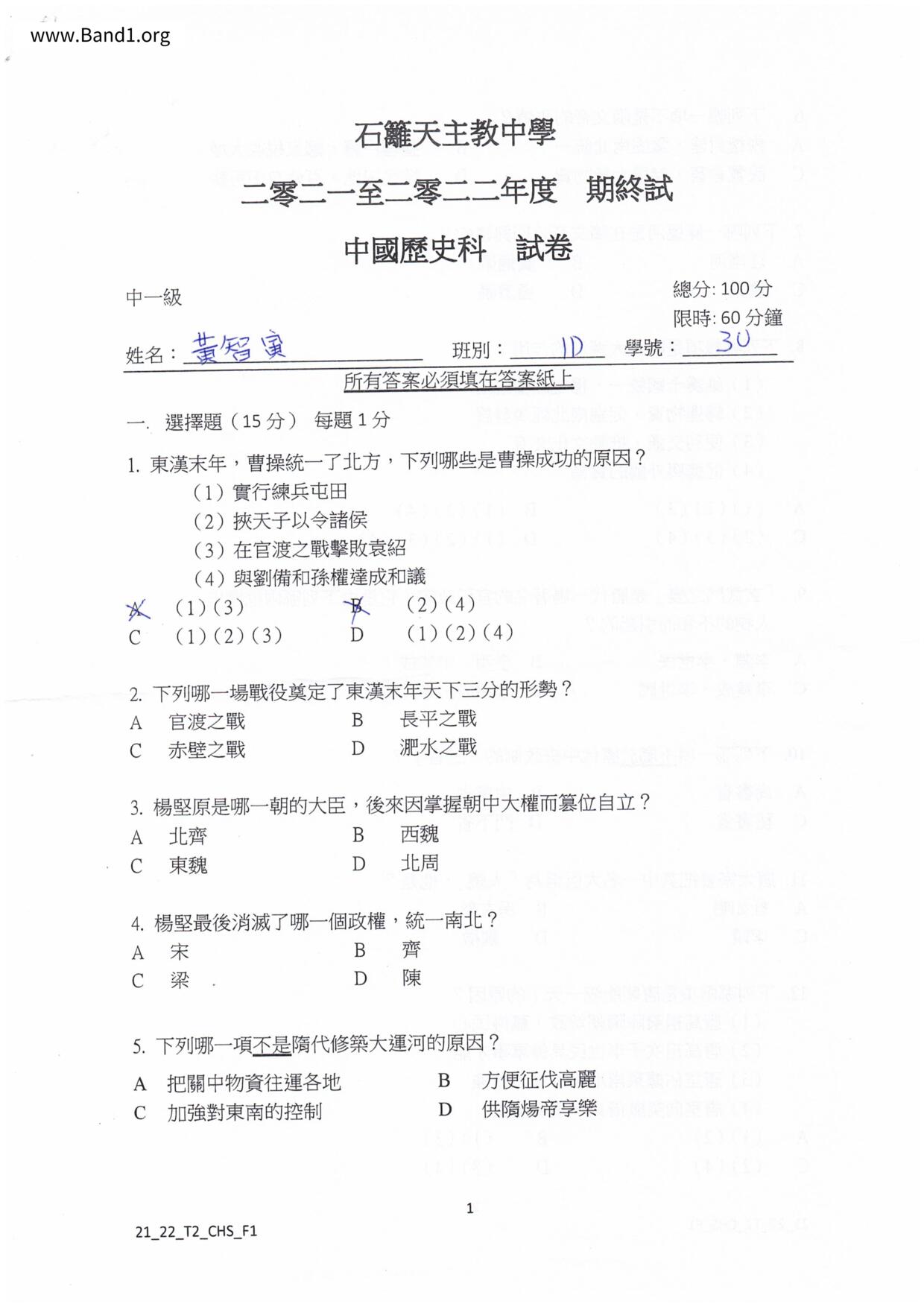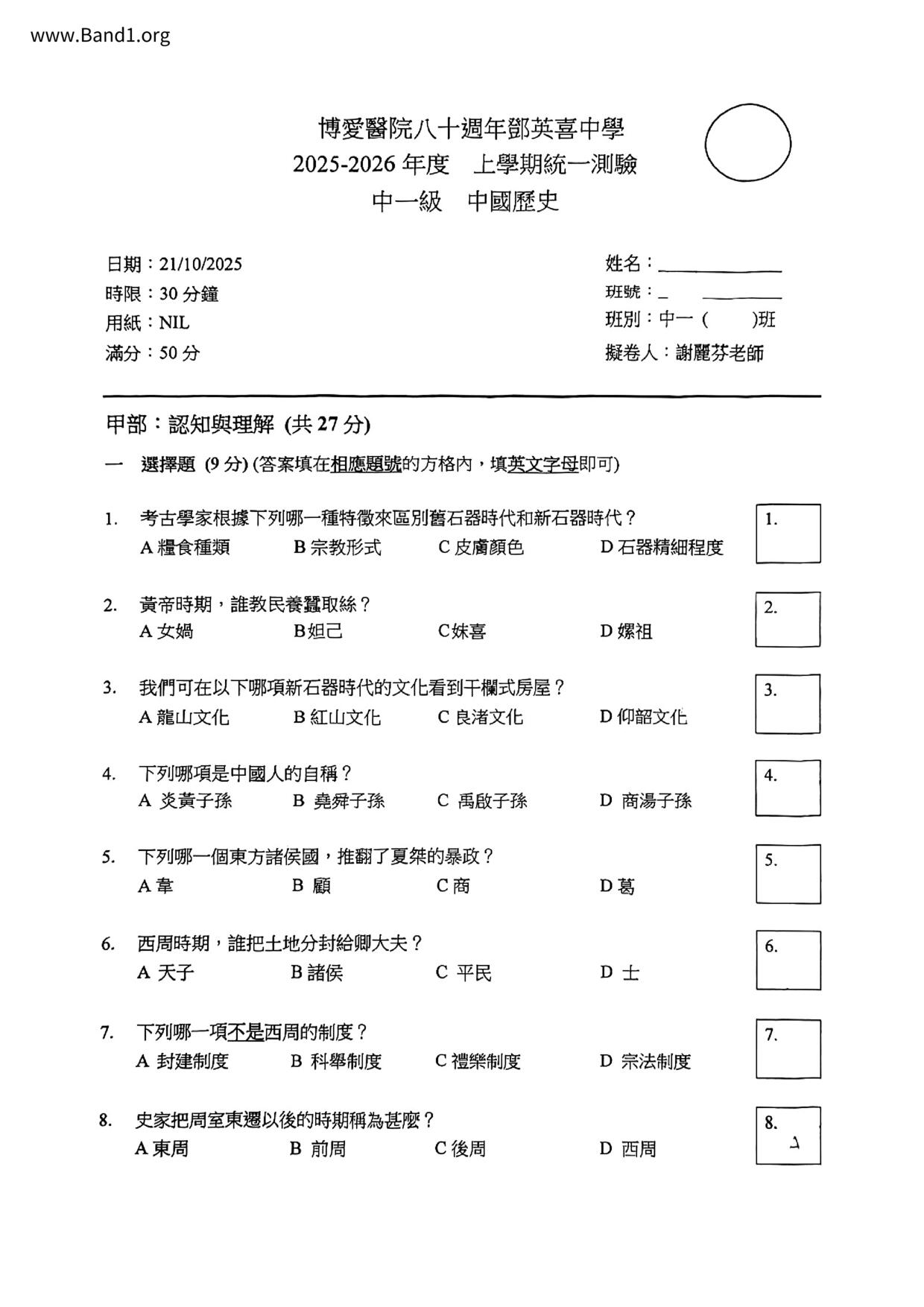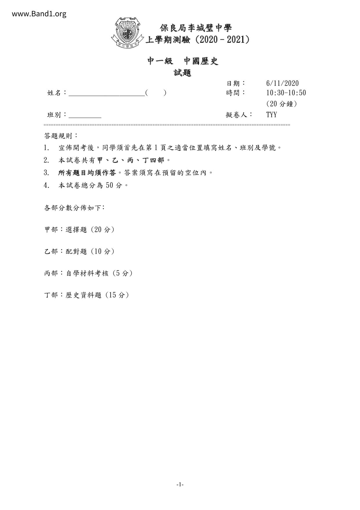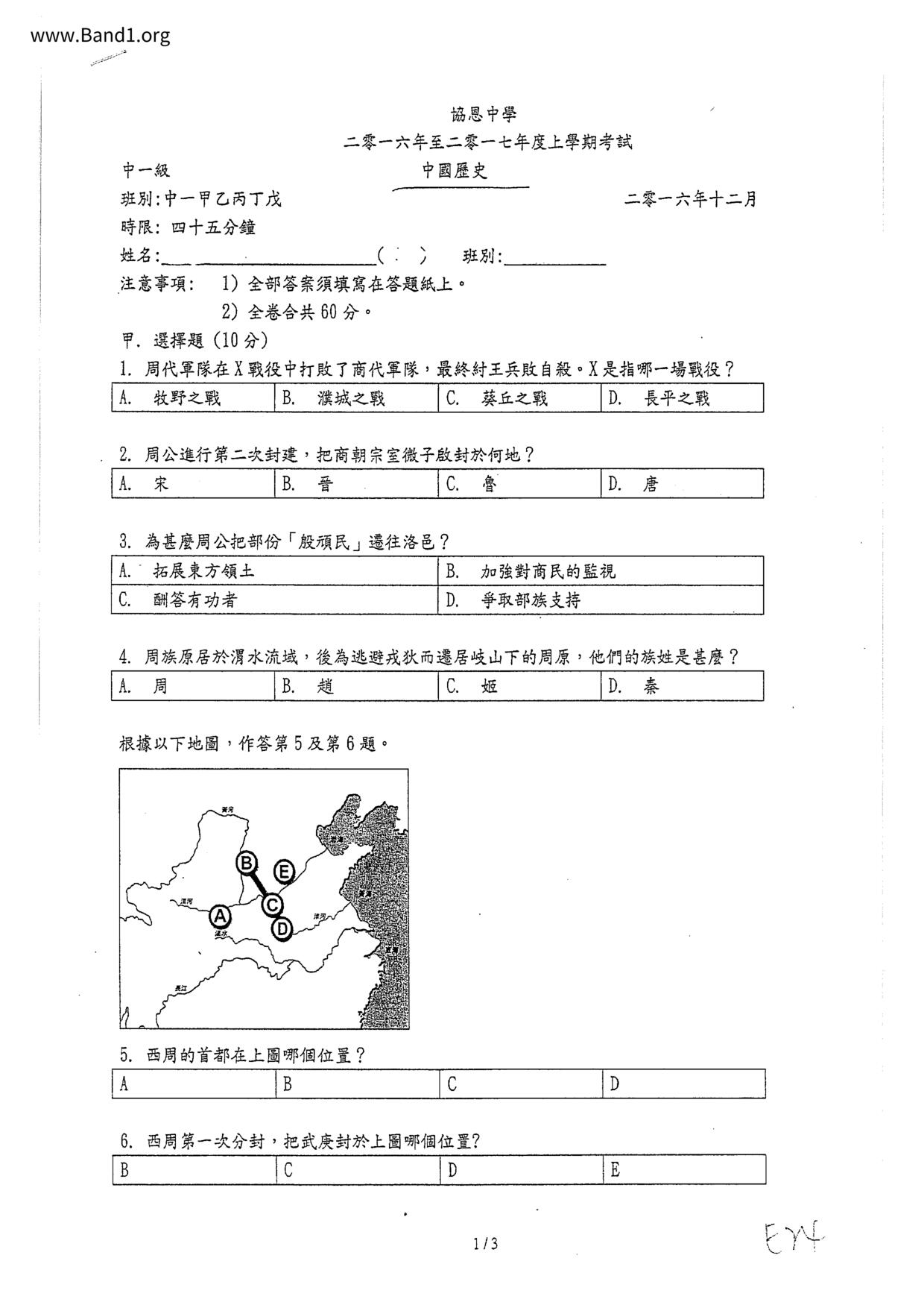 中一 中史 香港四邑商工總會黃棣珊紀念中學