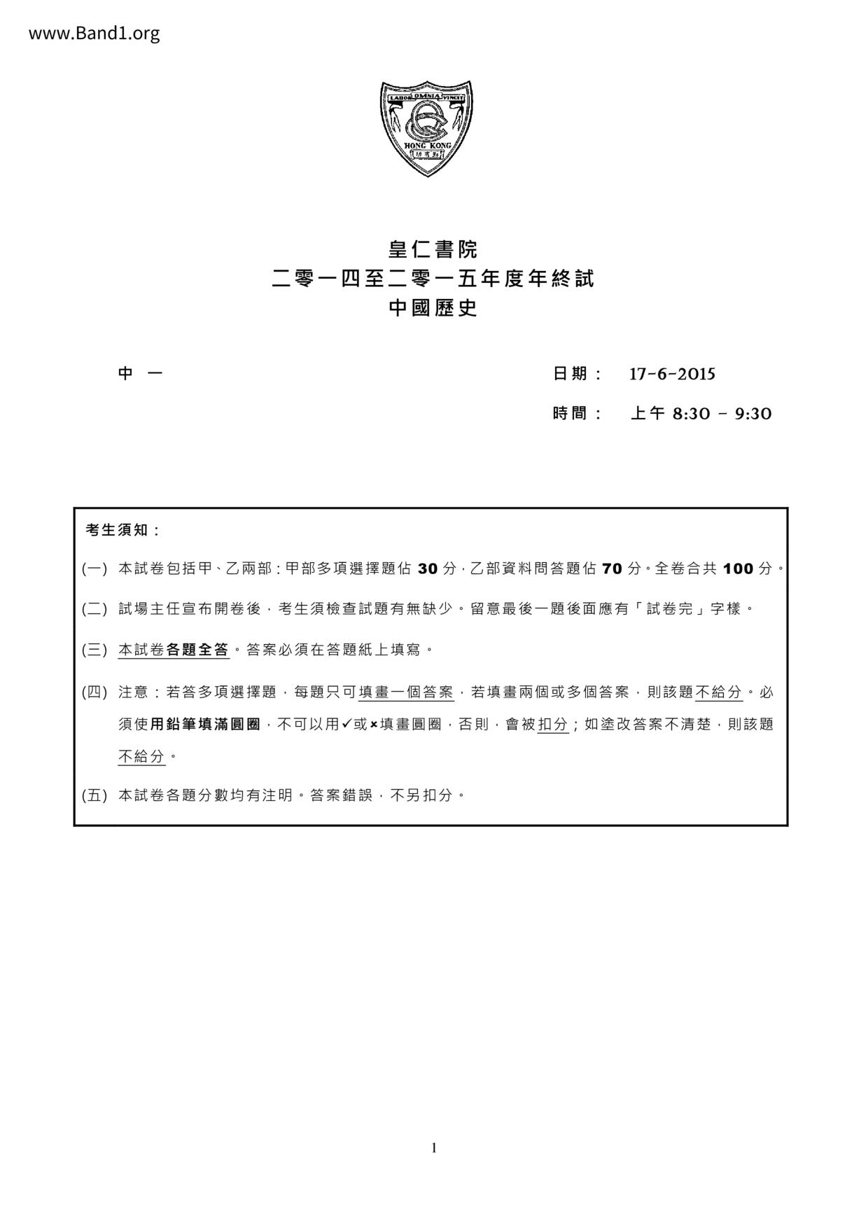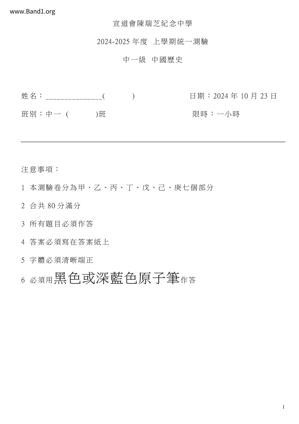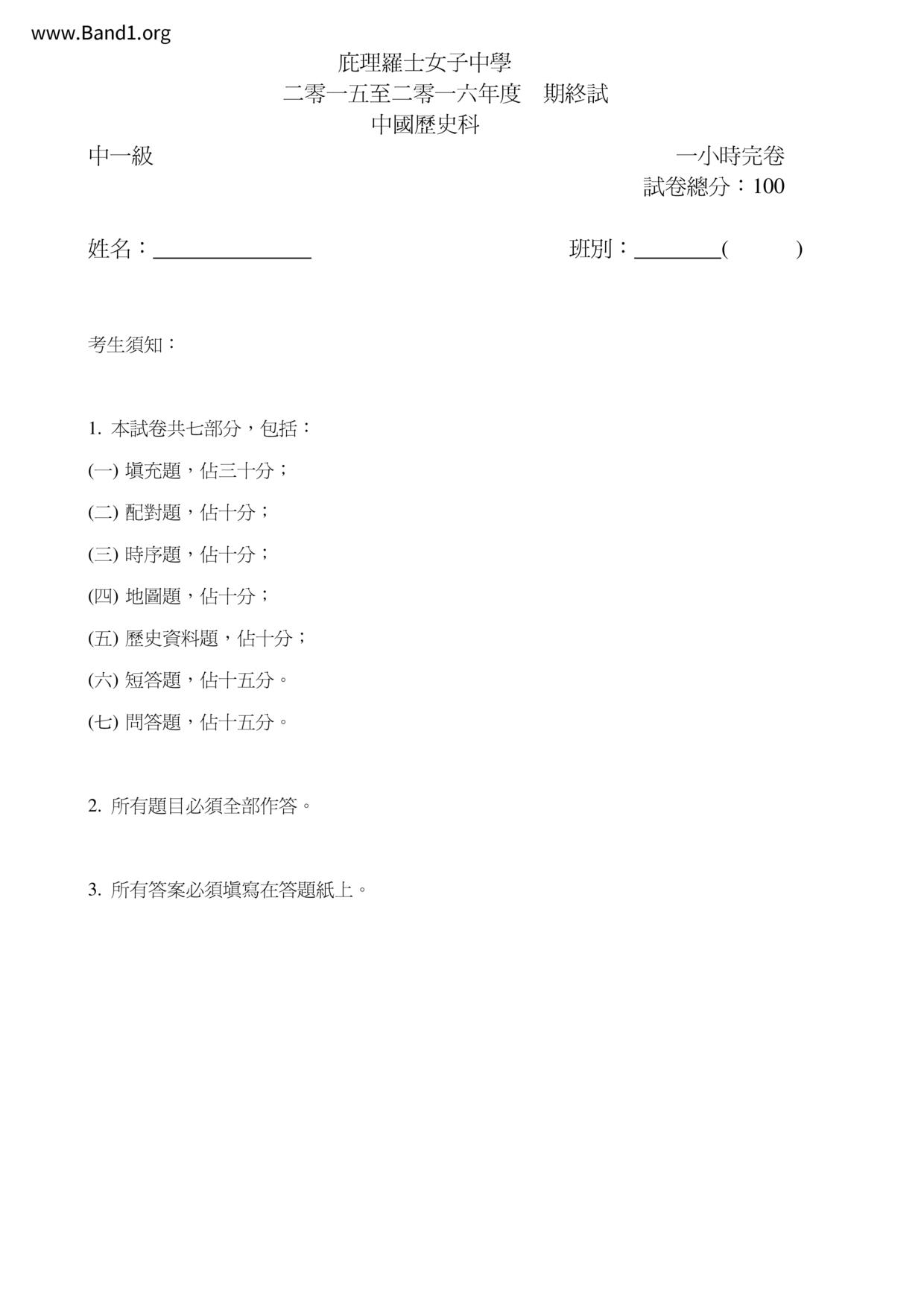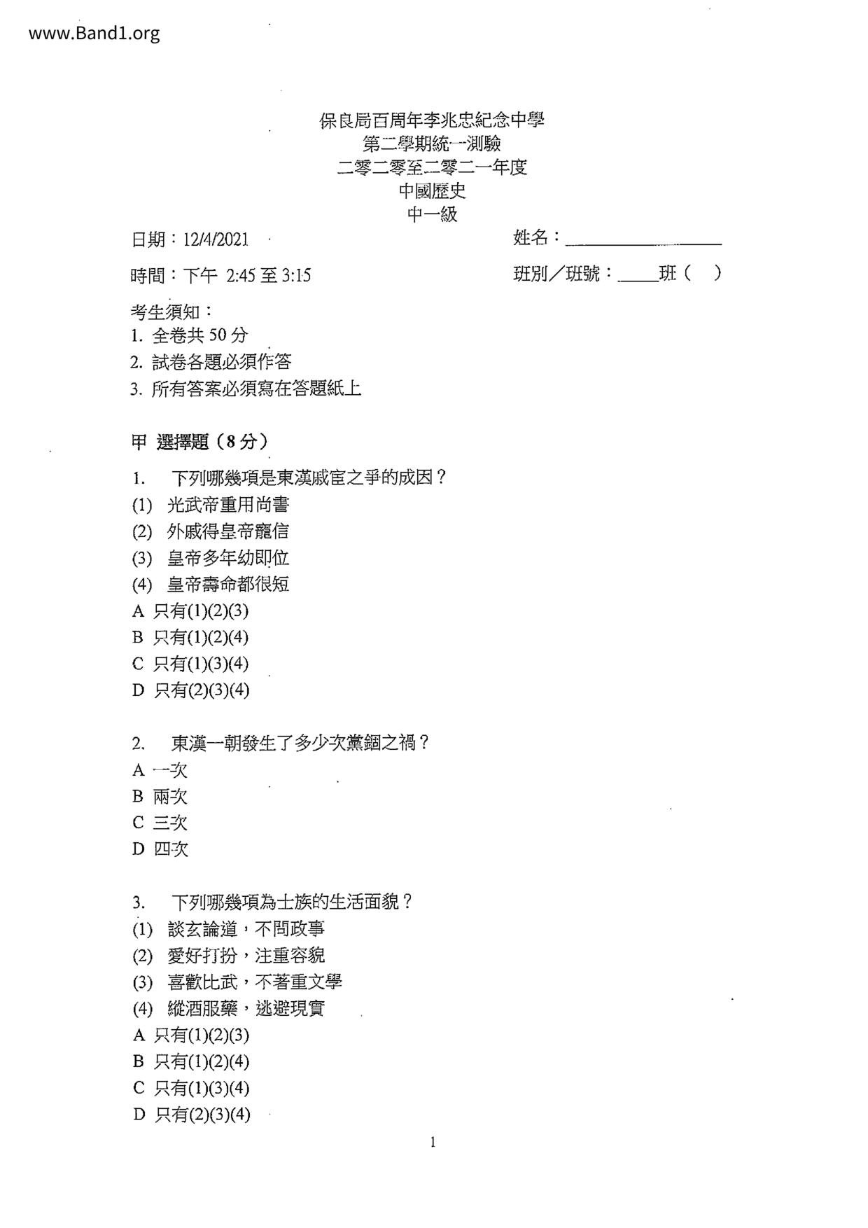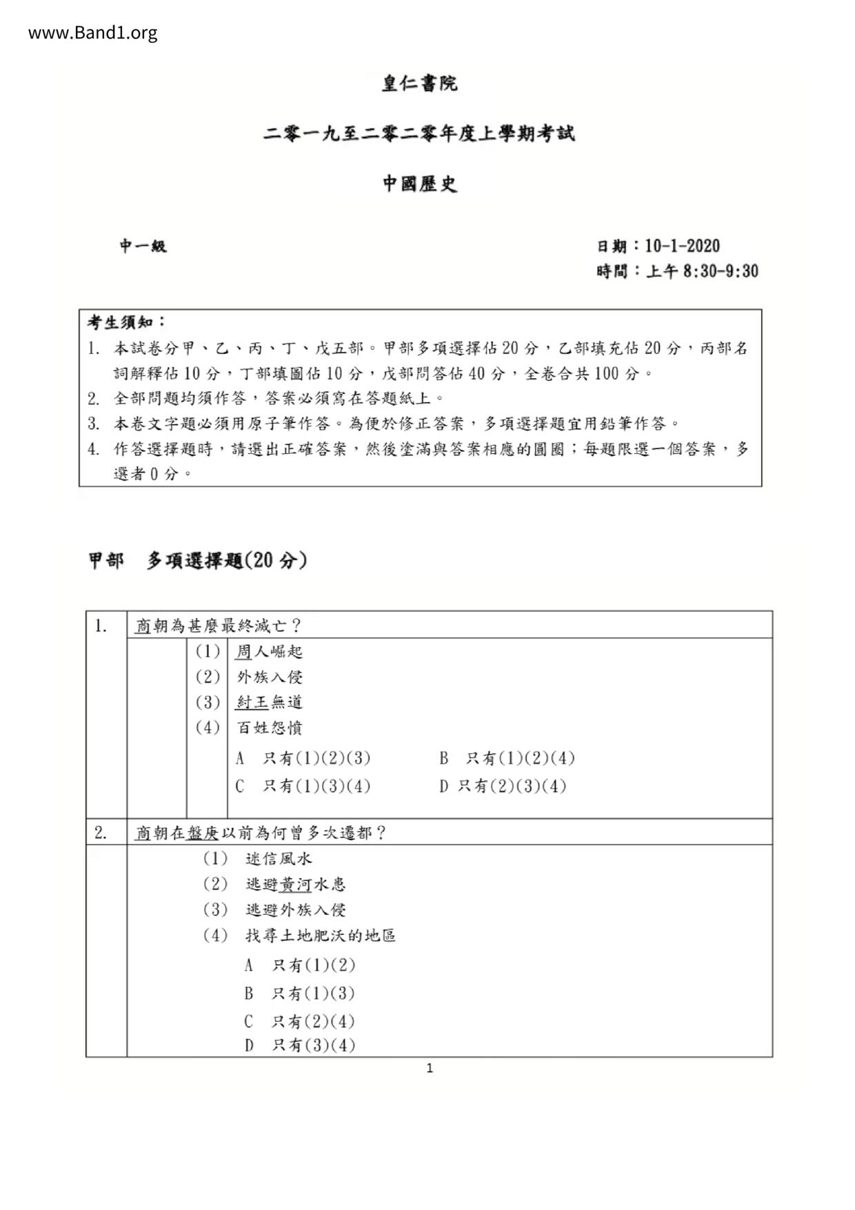 中一 中史 香港四邑商工總會黃棣珊紀念中學