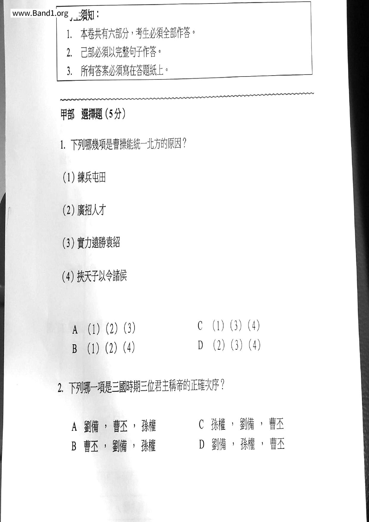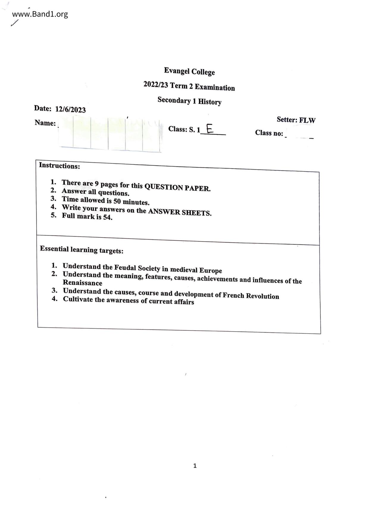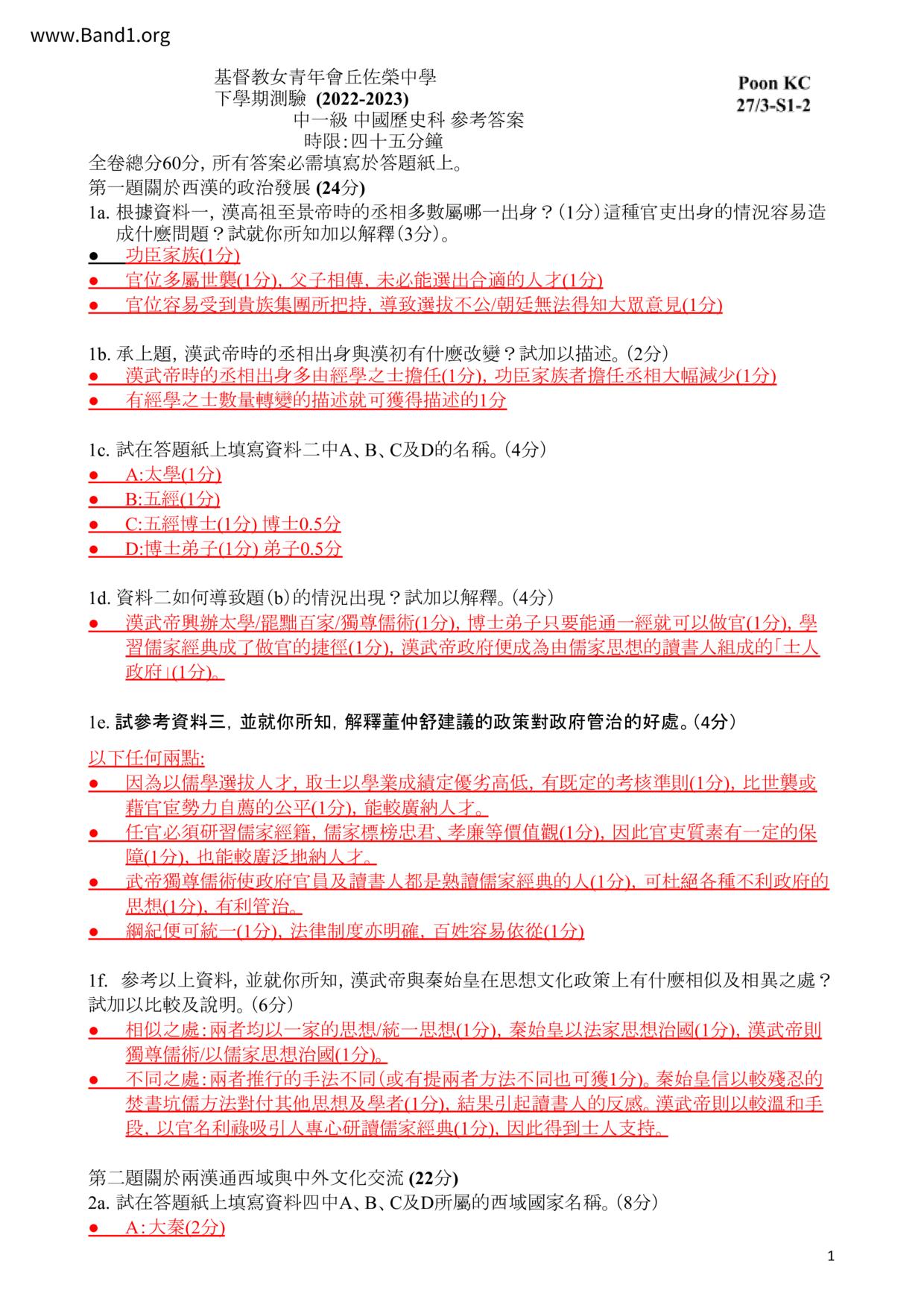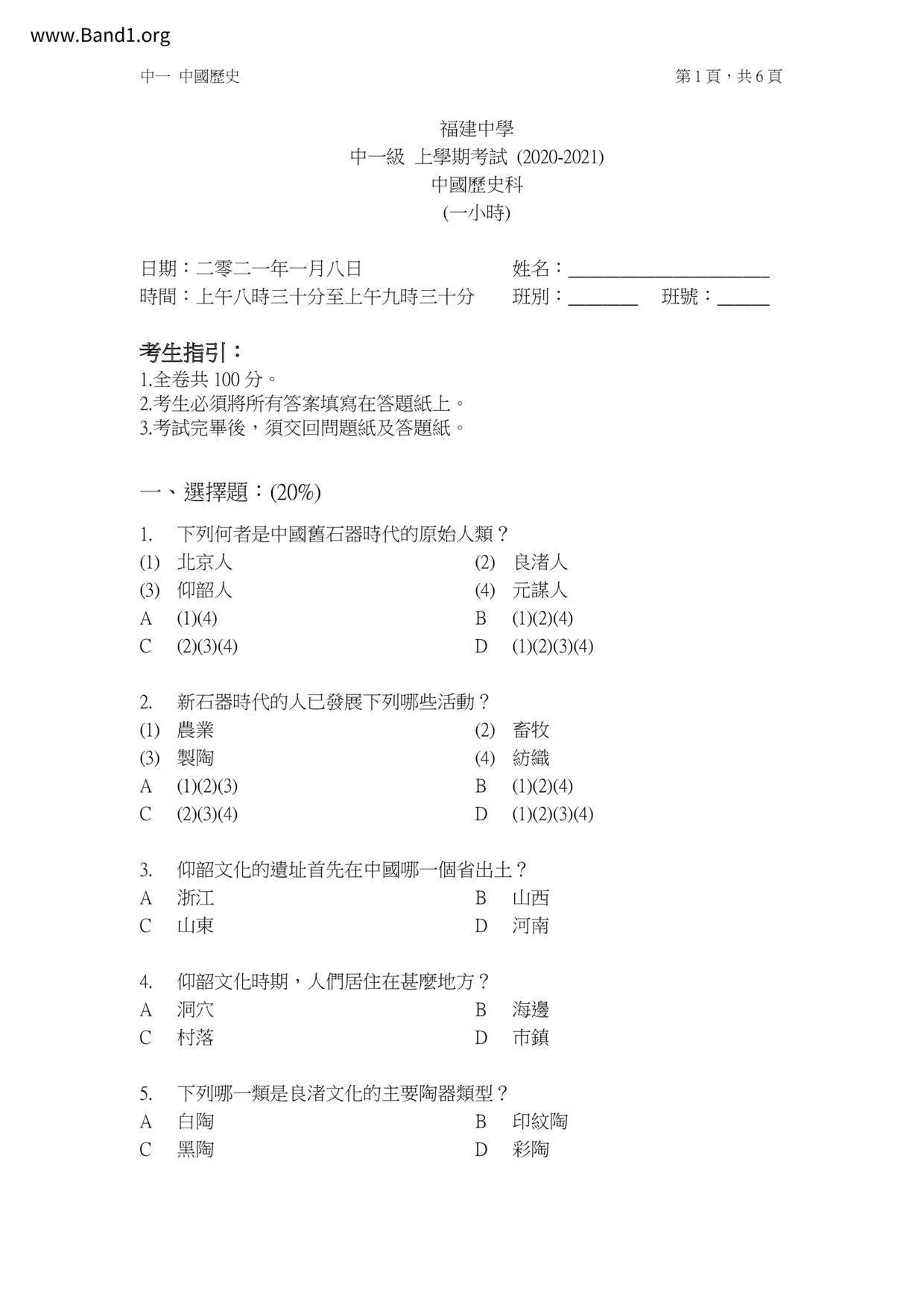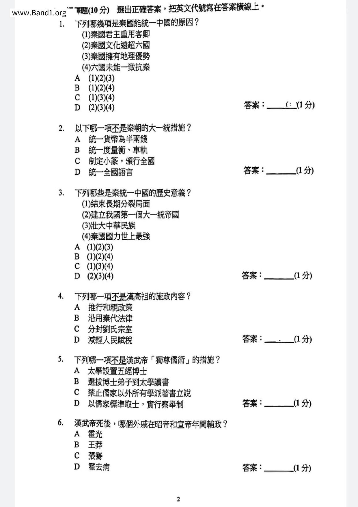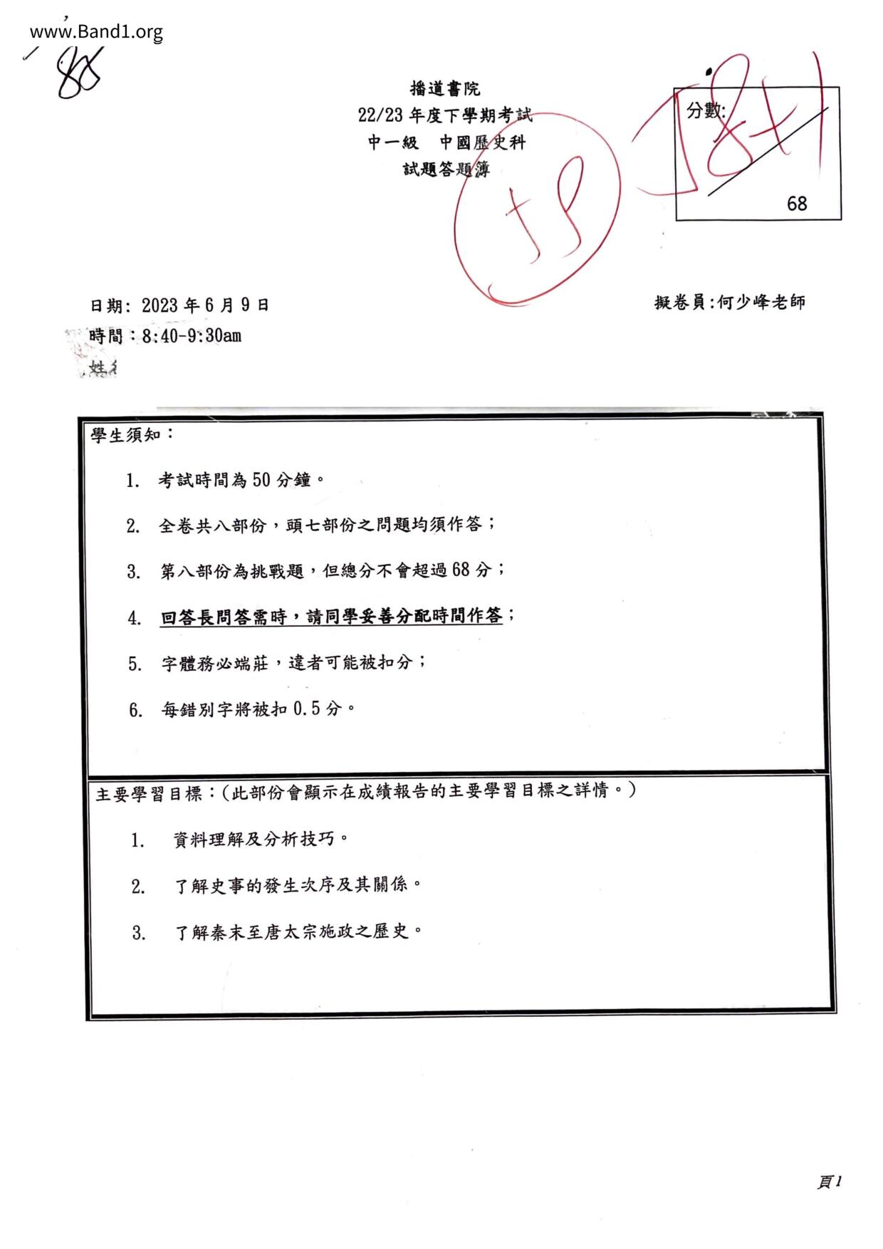 中一 中史 香港四邑商工總會黃棣珊紀念中學