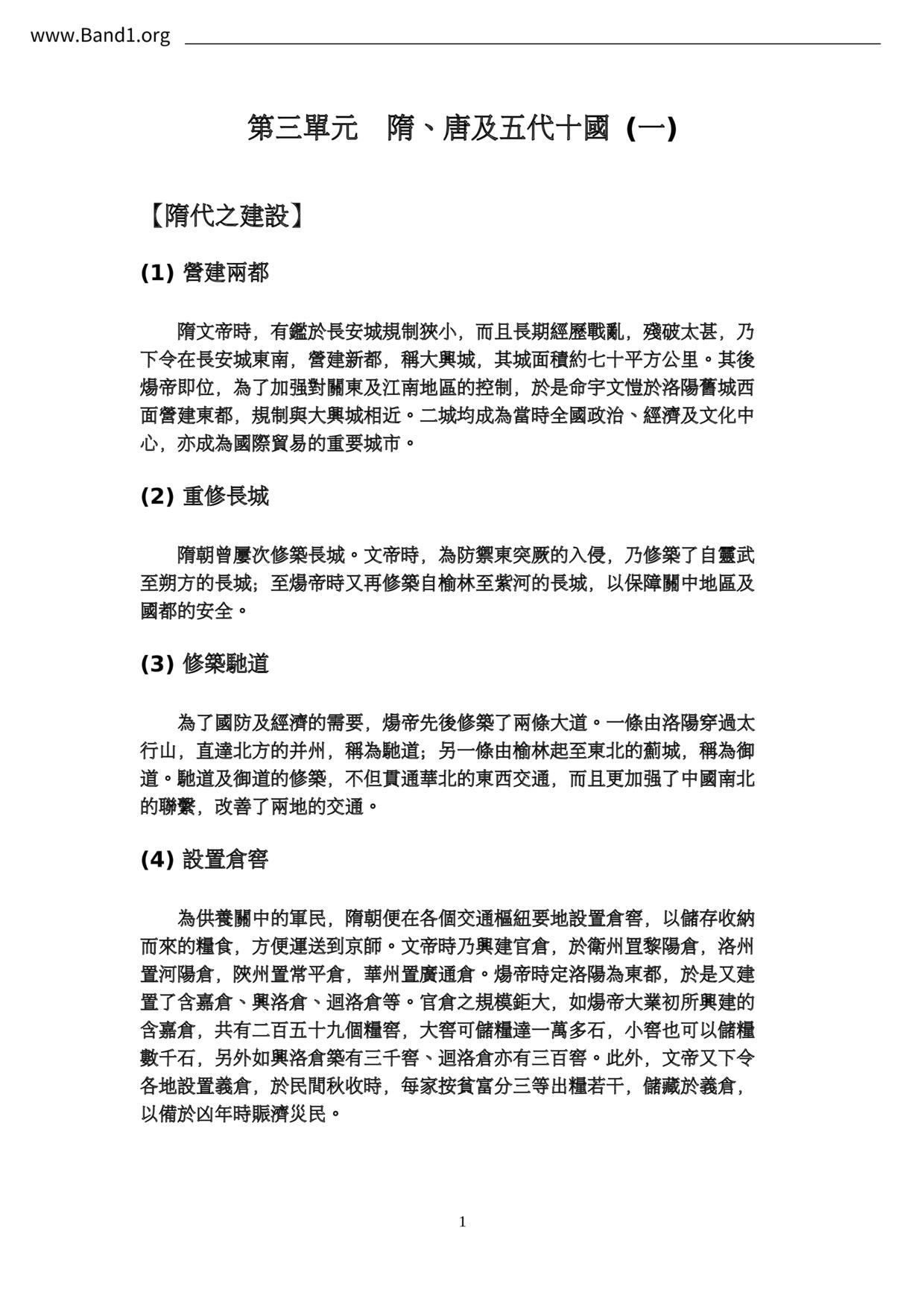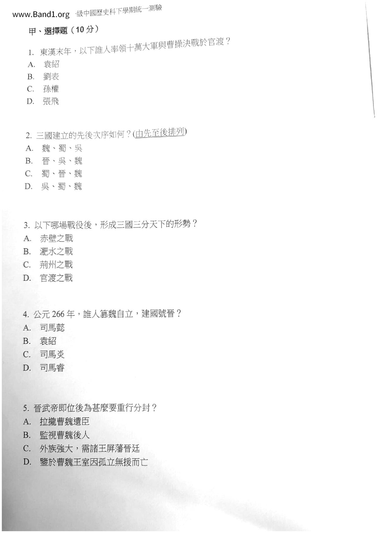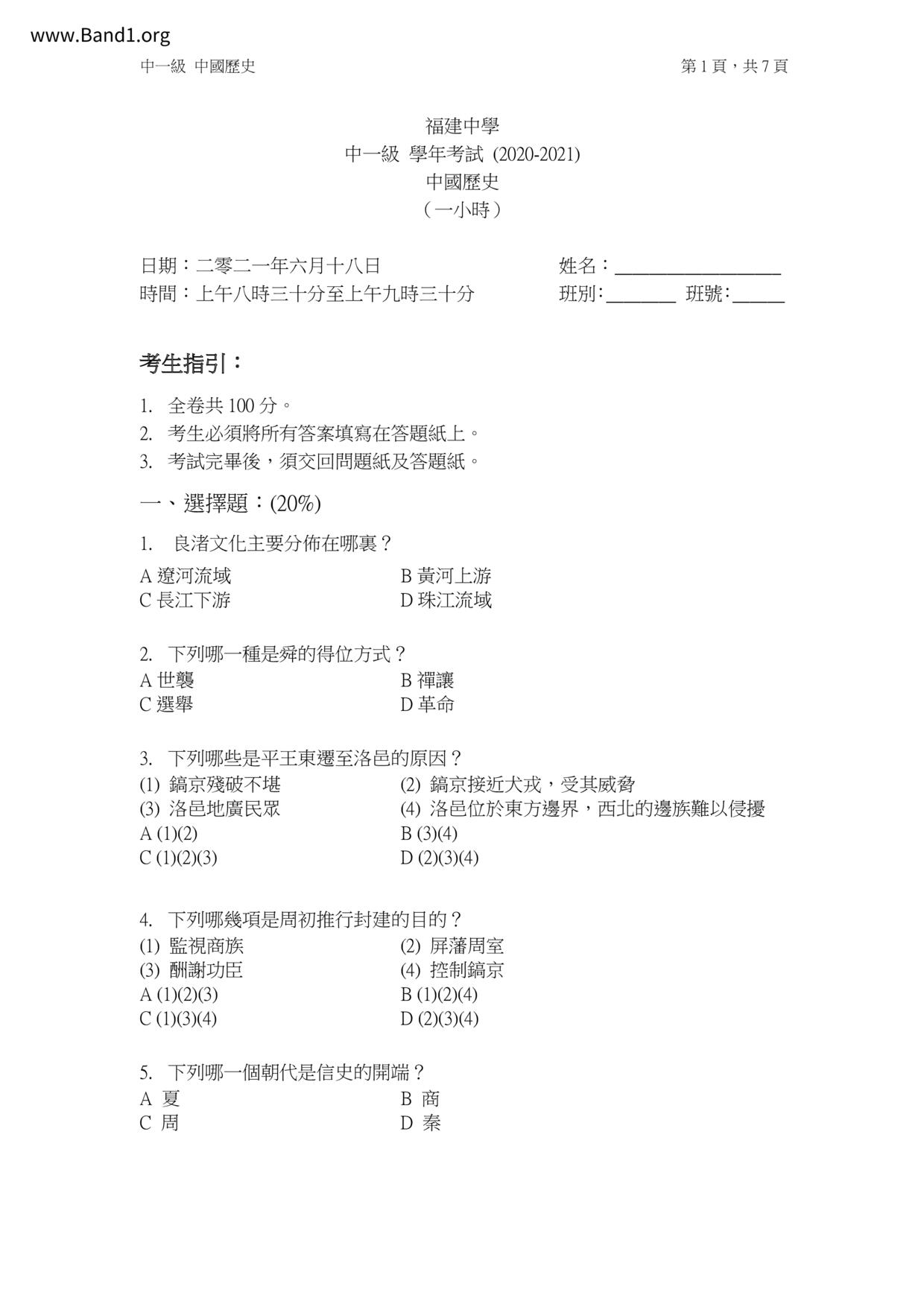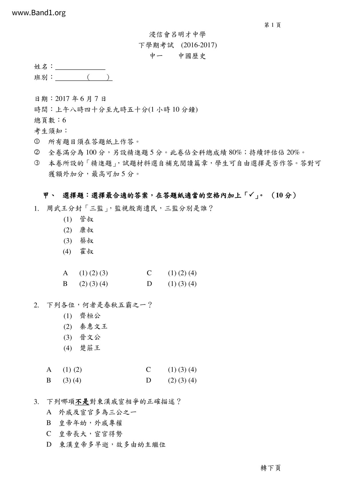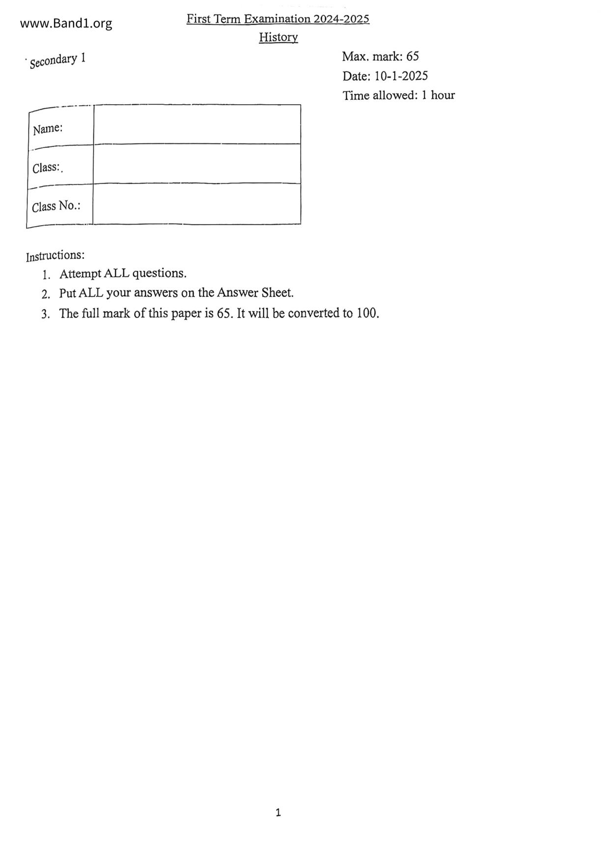 中一 中史 香港四邑商工總會黃棣珊紀念中學