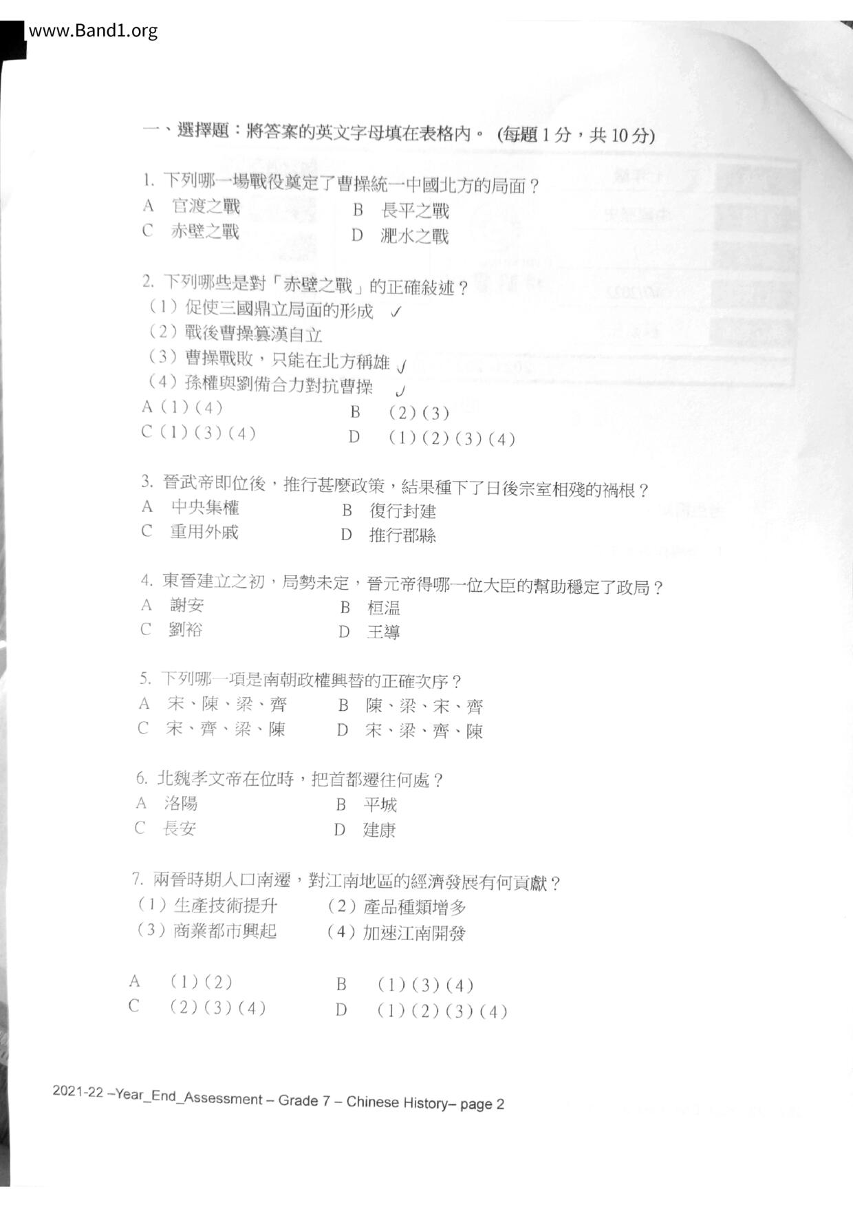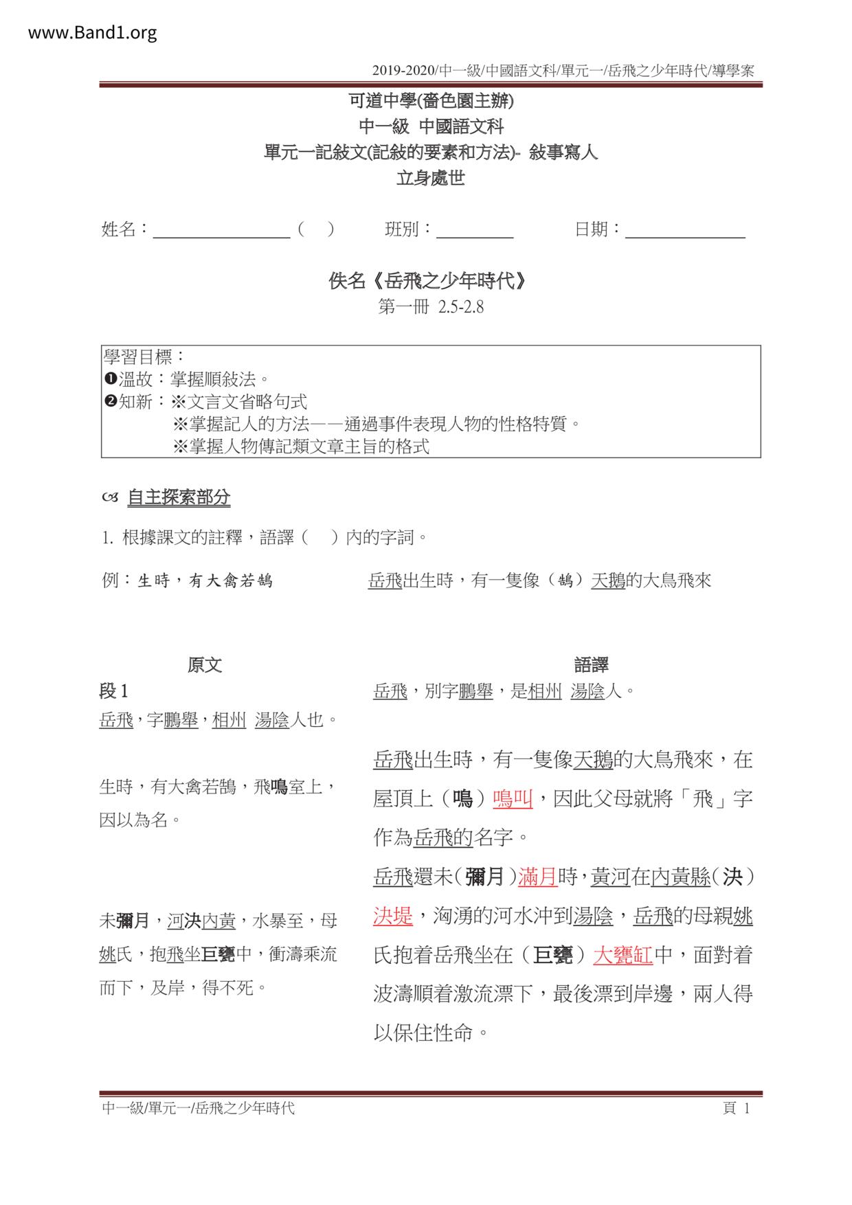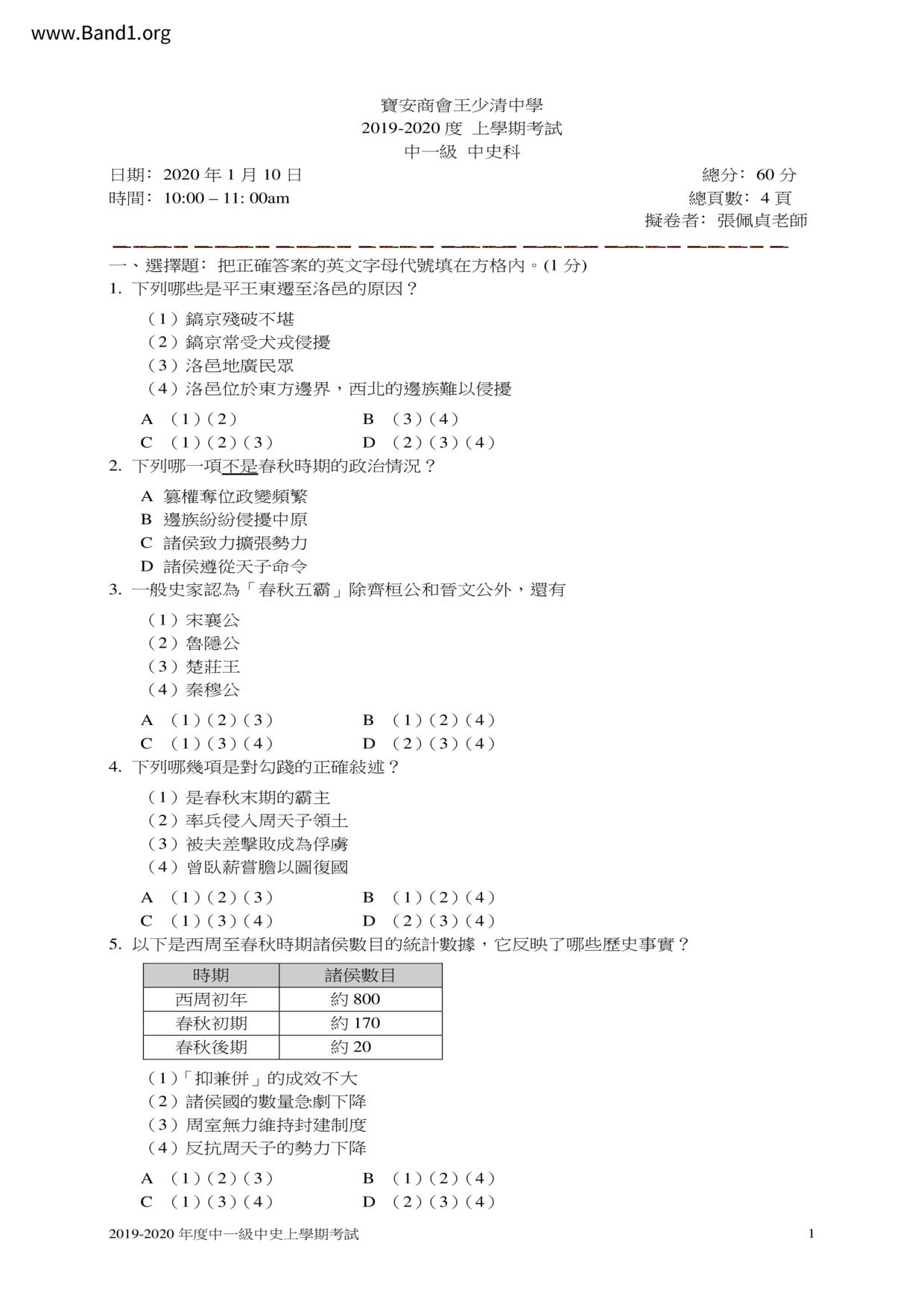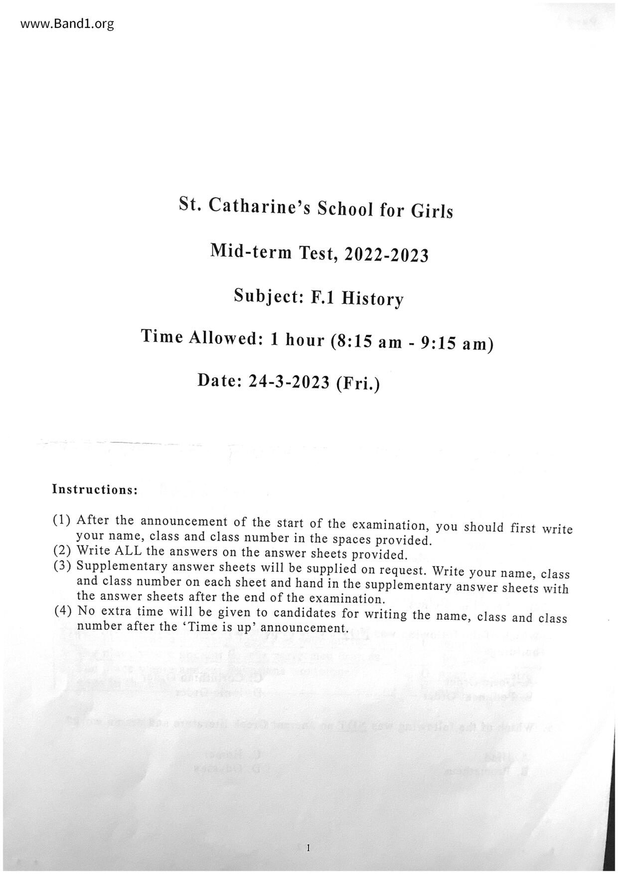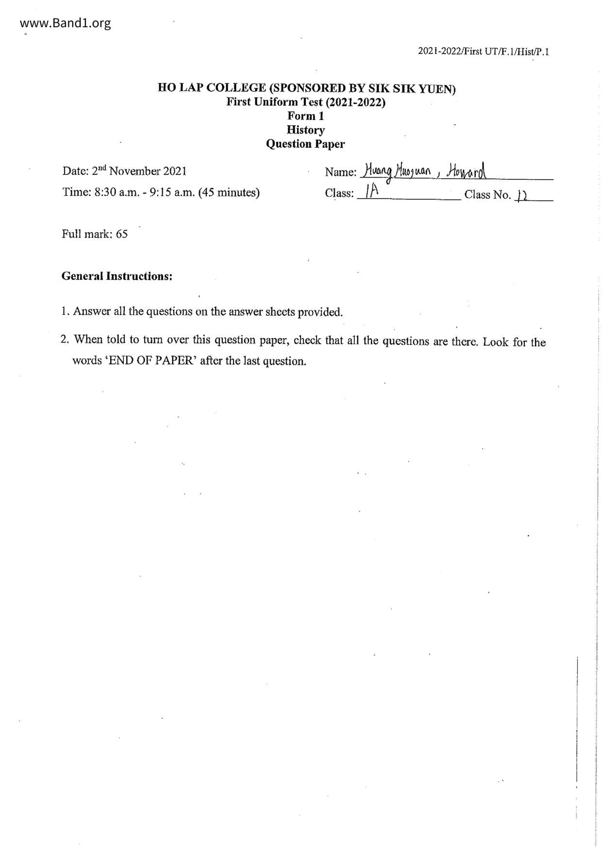 中一 中史 香港四邑商工總會黃棣珊紀念中學