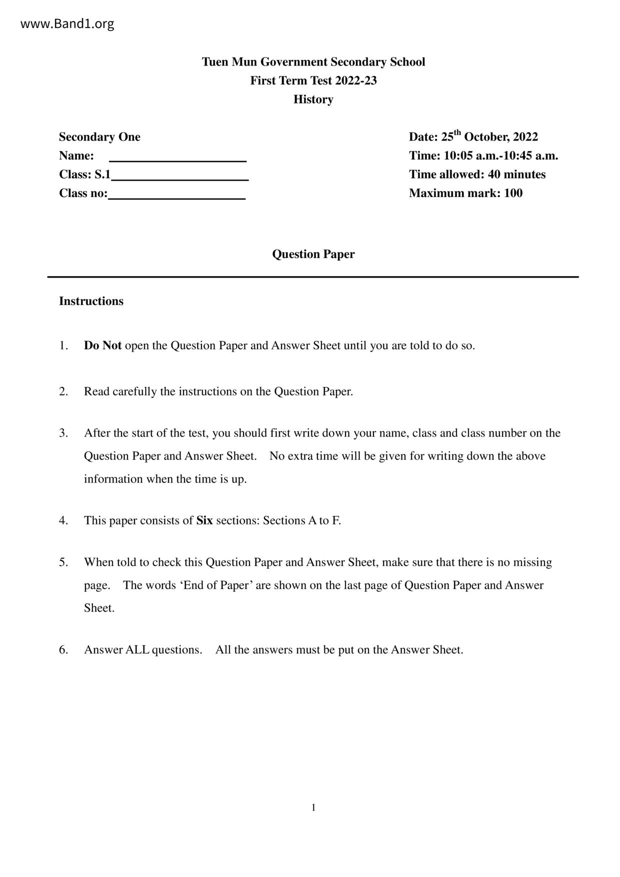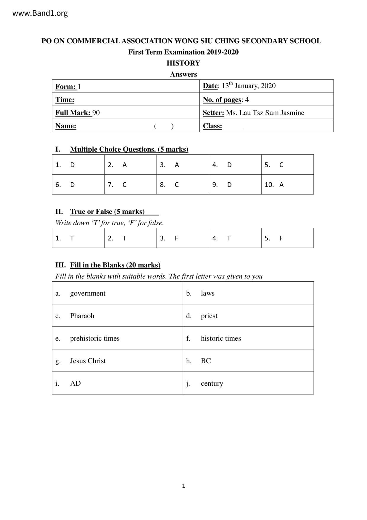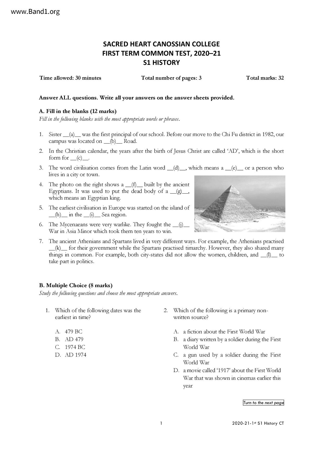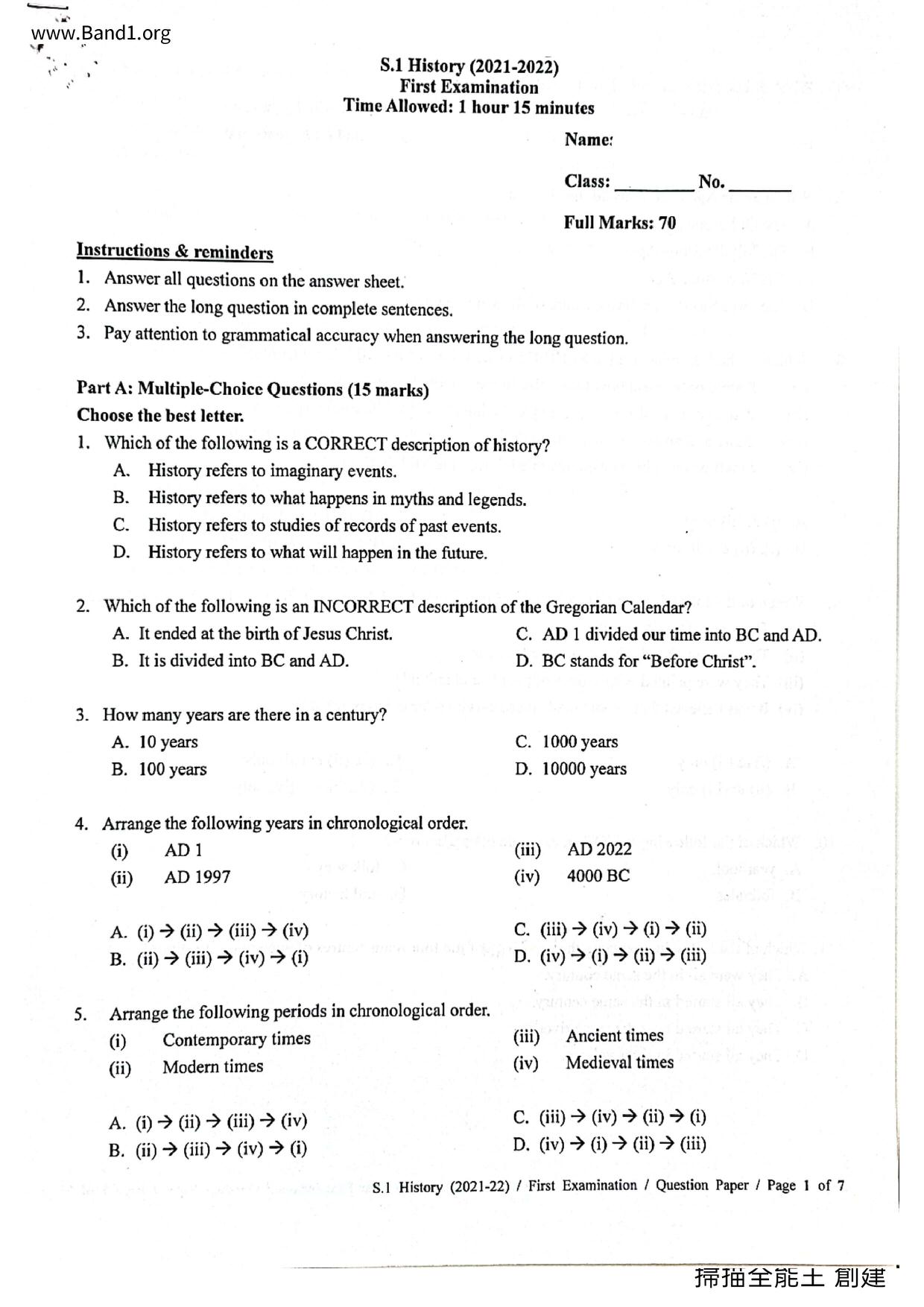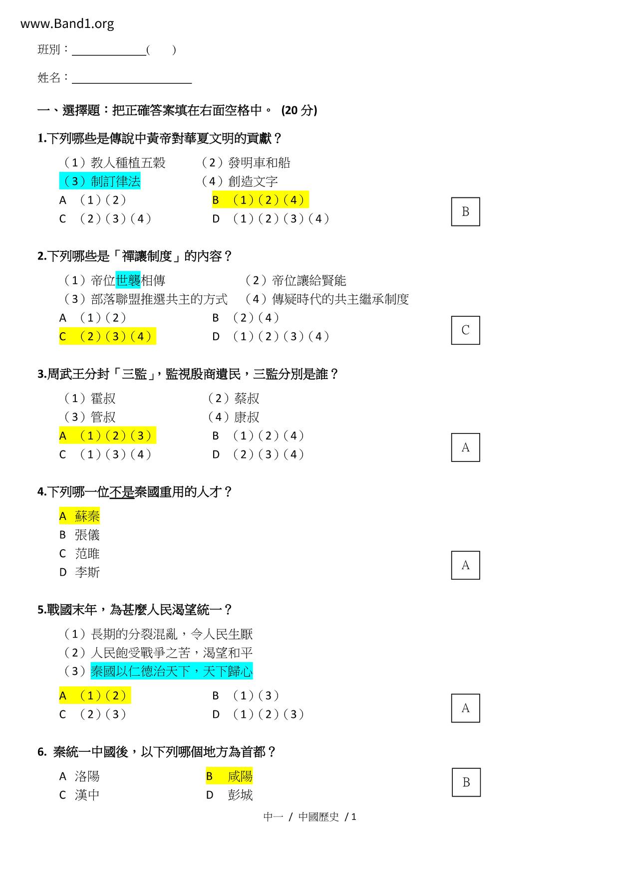 中一 中史 香港四邑商工總會黃棣珊紀念中學