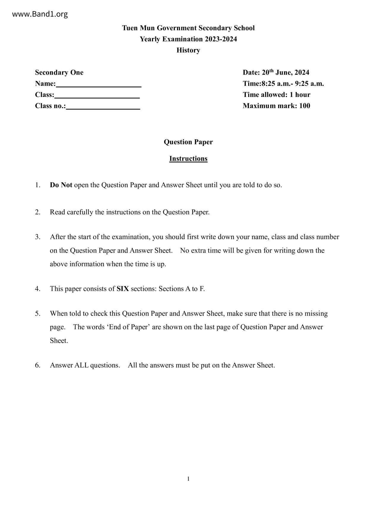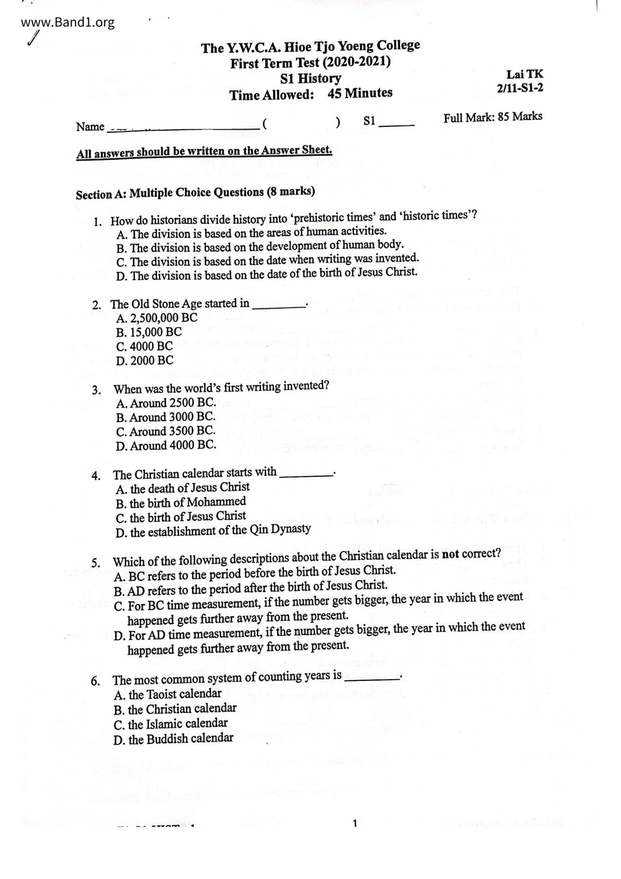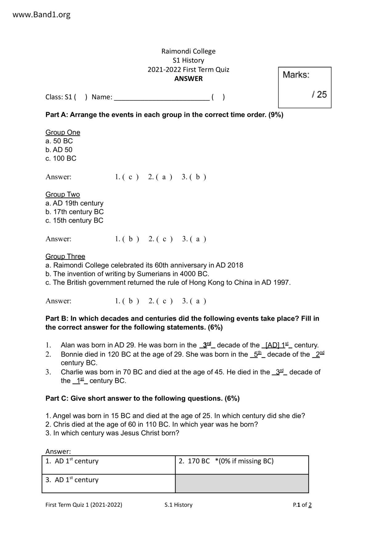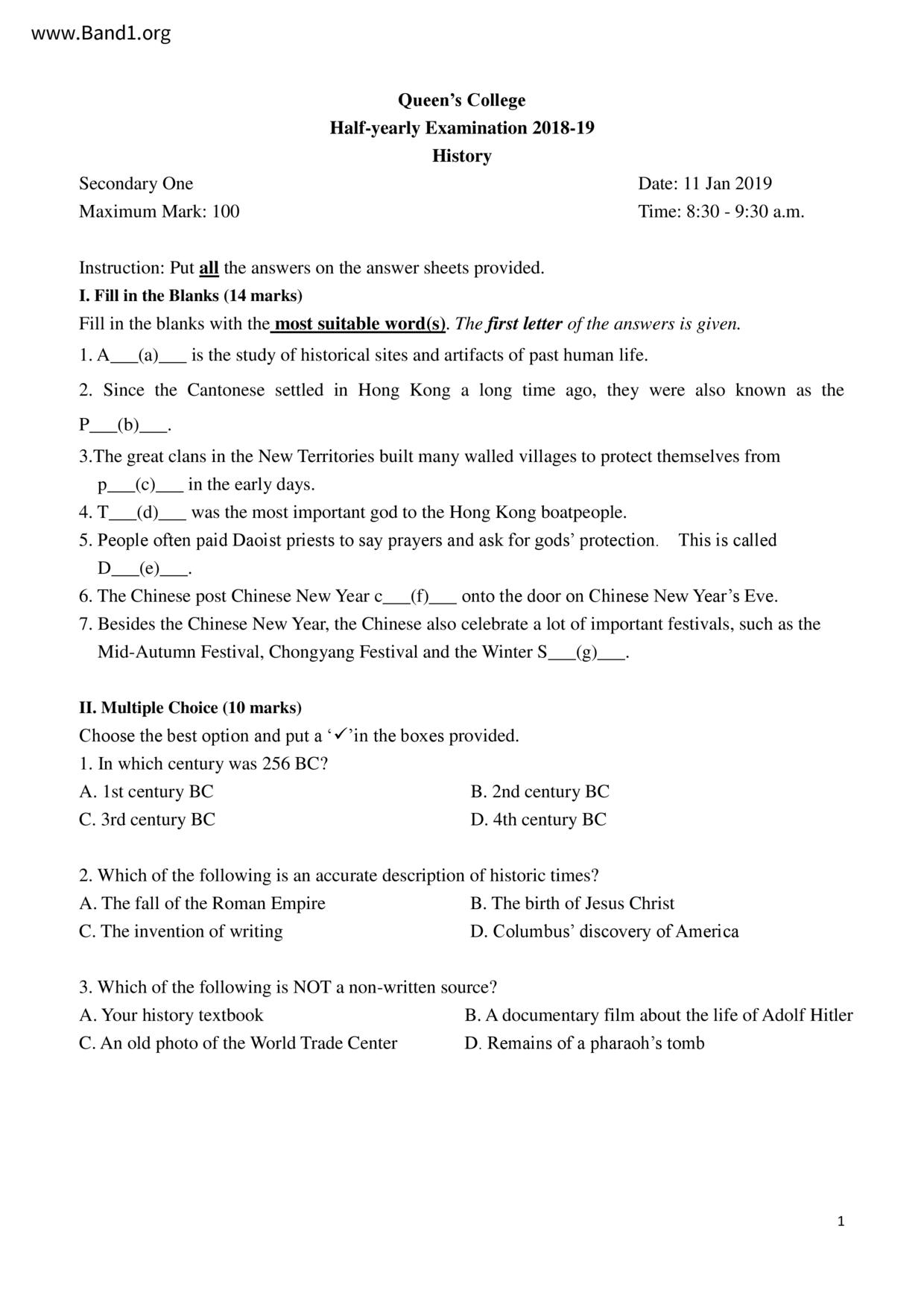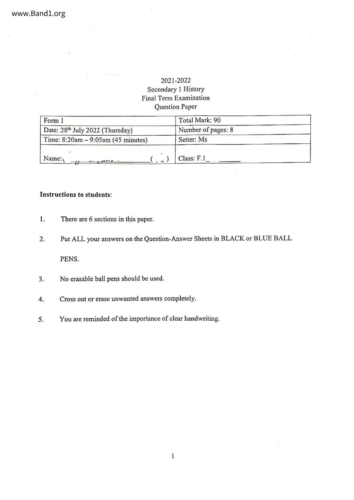 中一 中史 香港四邑商工總會黃棣珊紀念中學