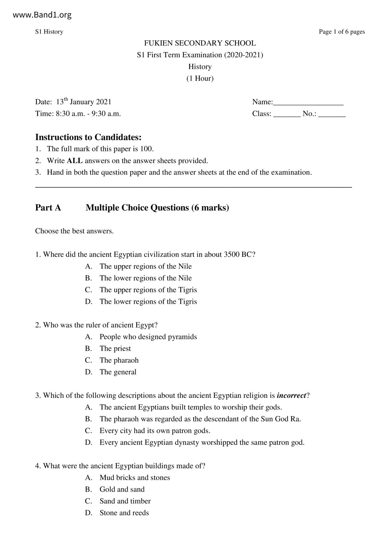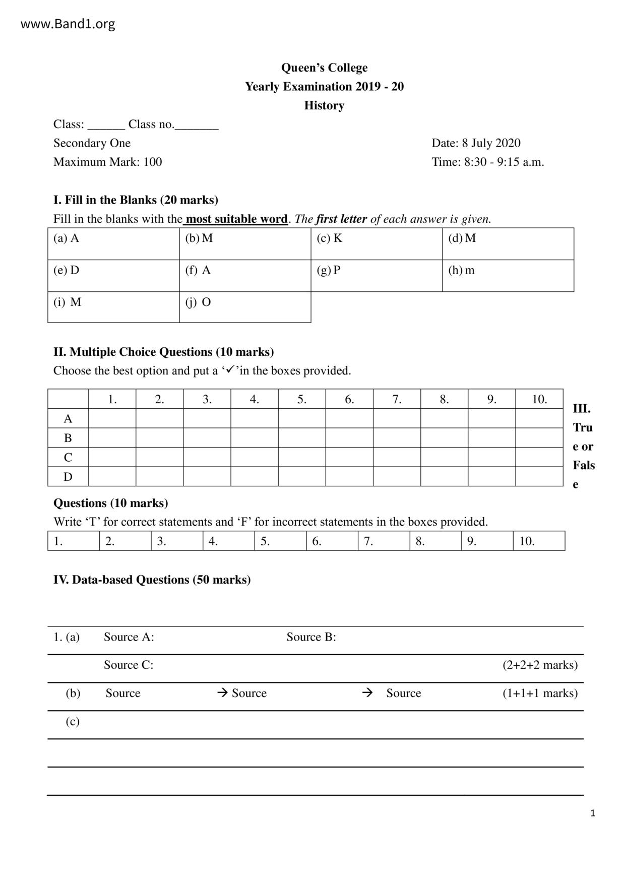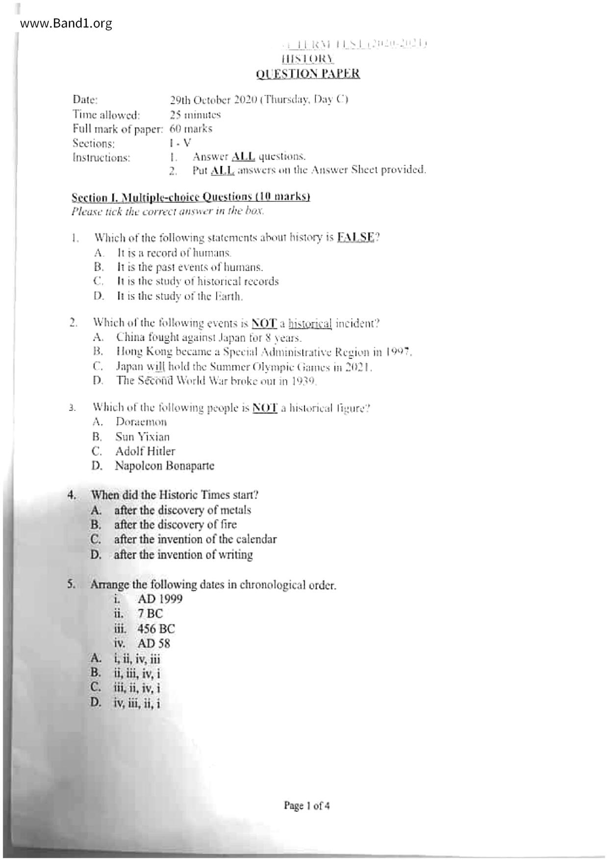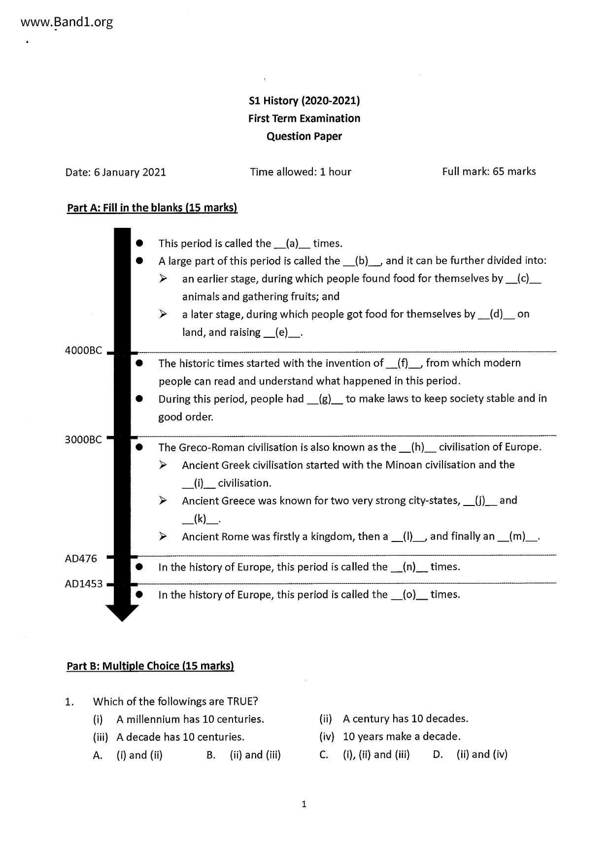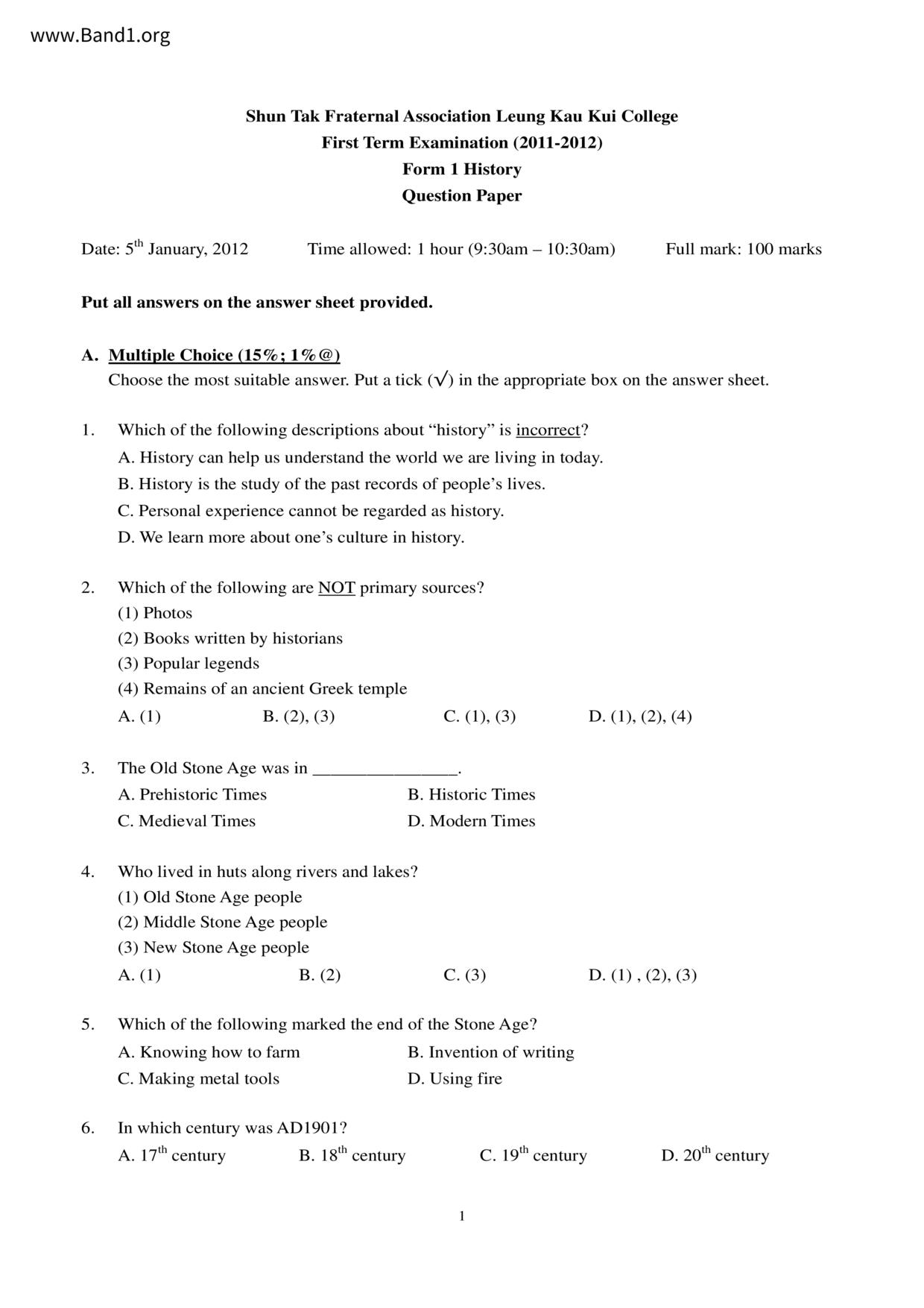 中一 中史 香港四邑商工總會黃棣珊紀念中學