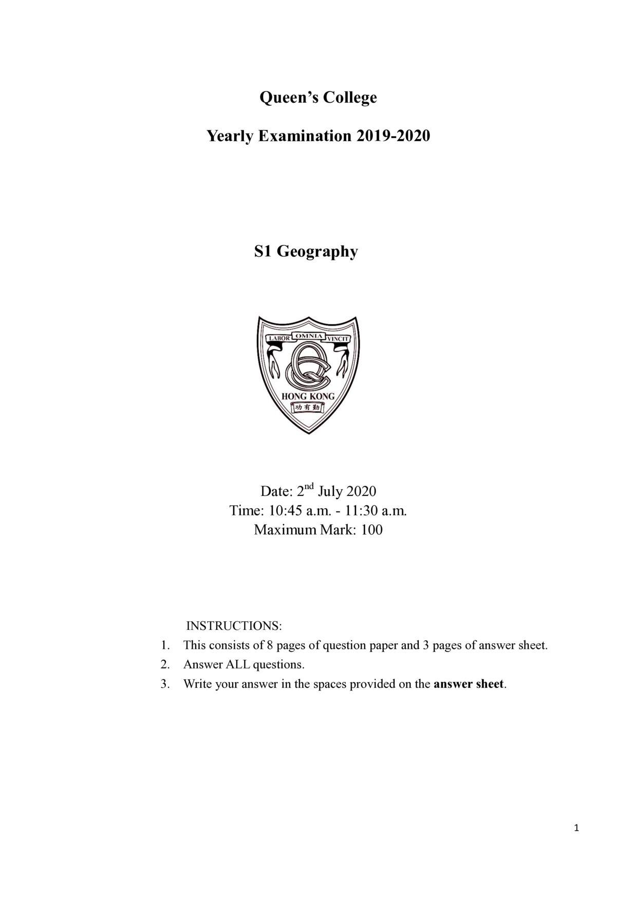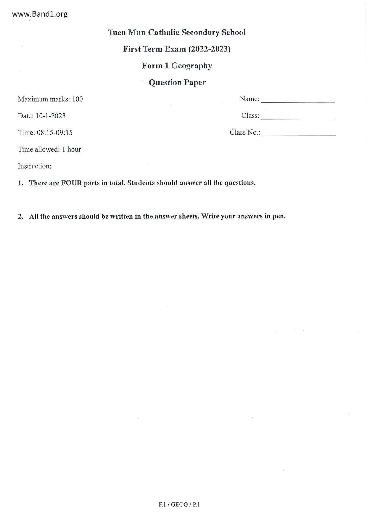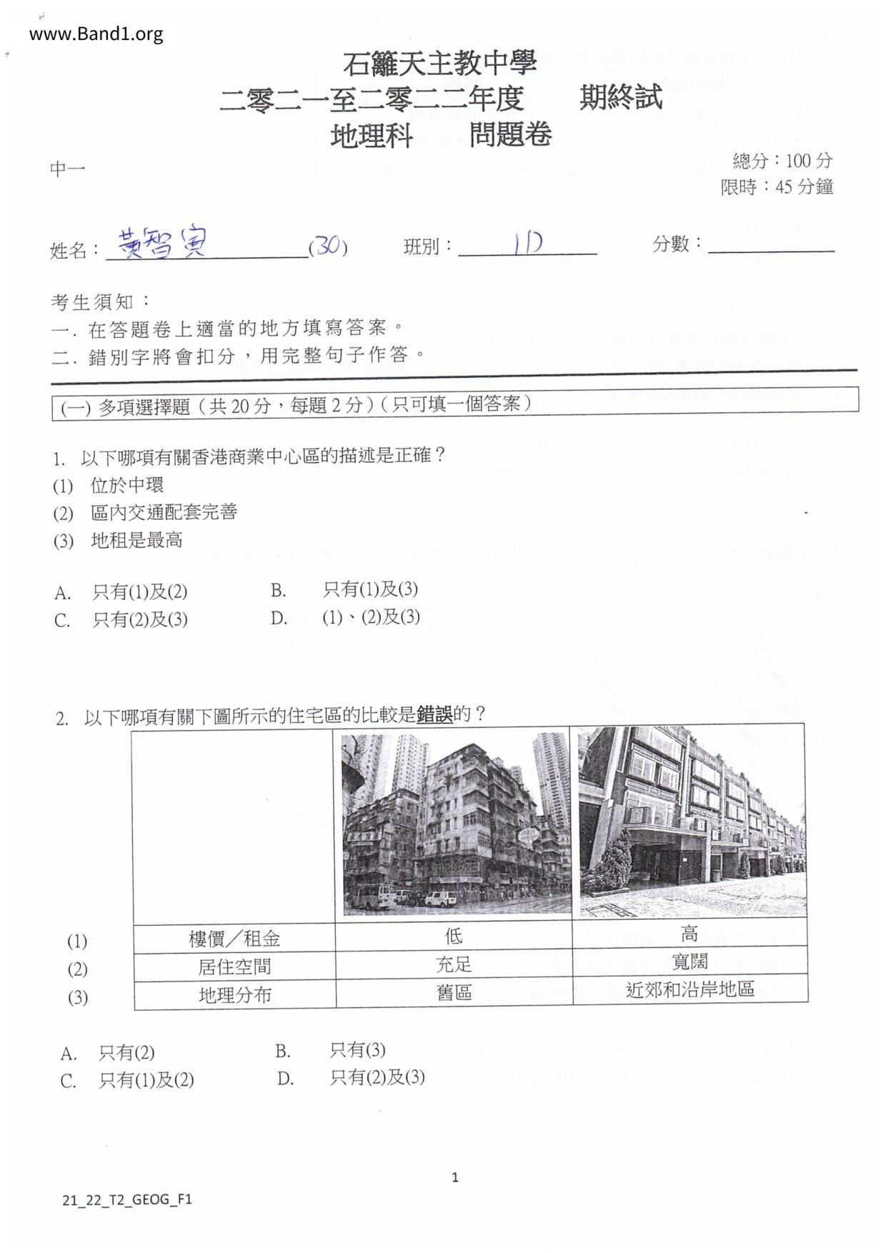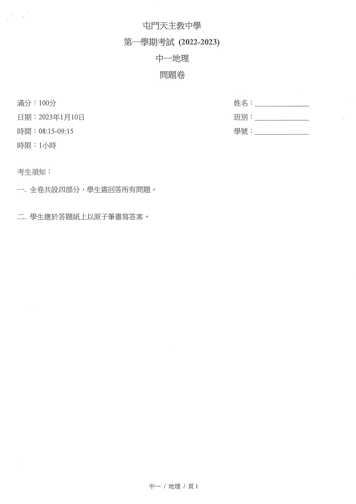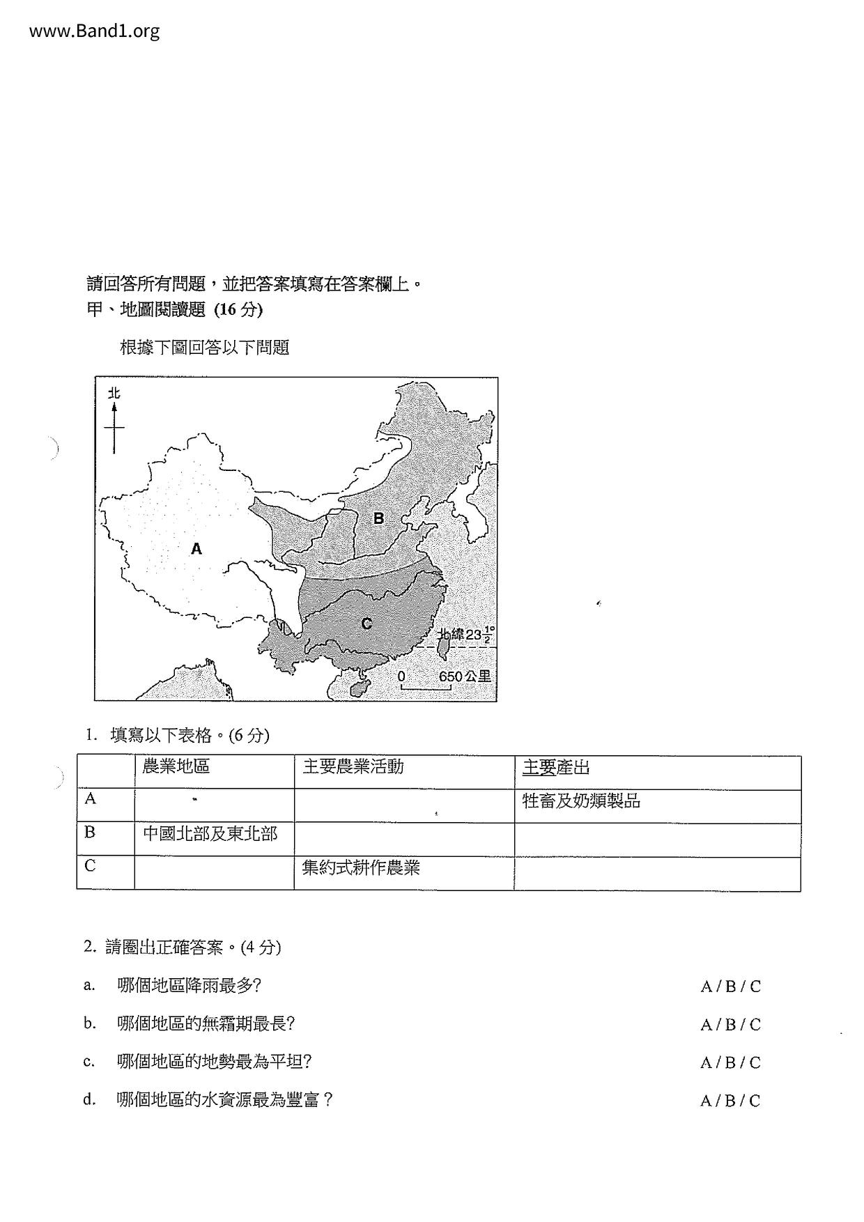中一 地理 香港四邑商工總會黃棣珊紀念中學