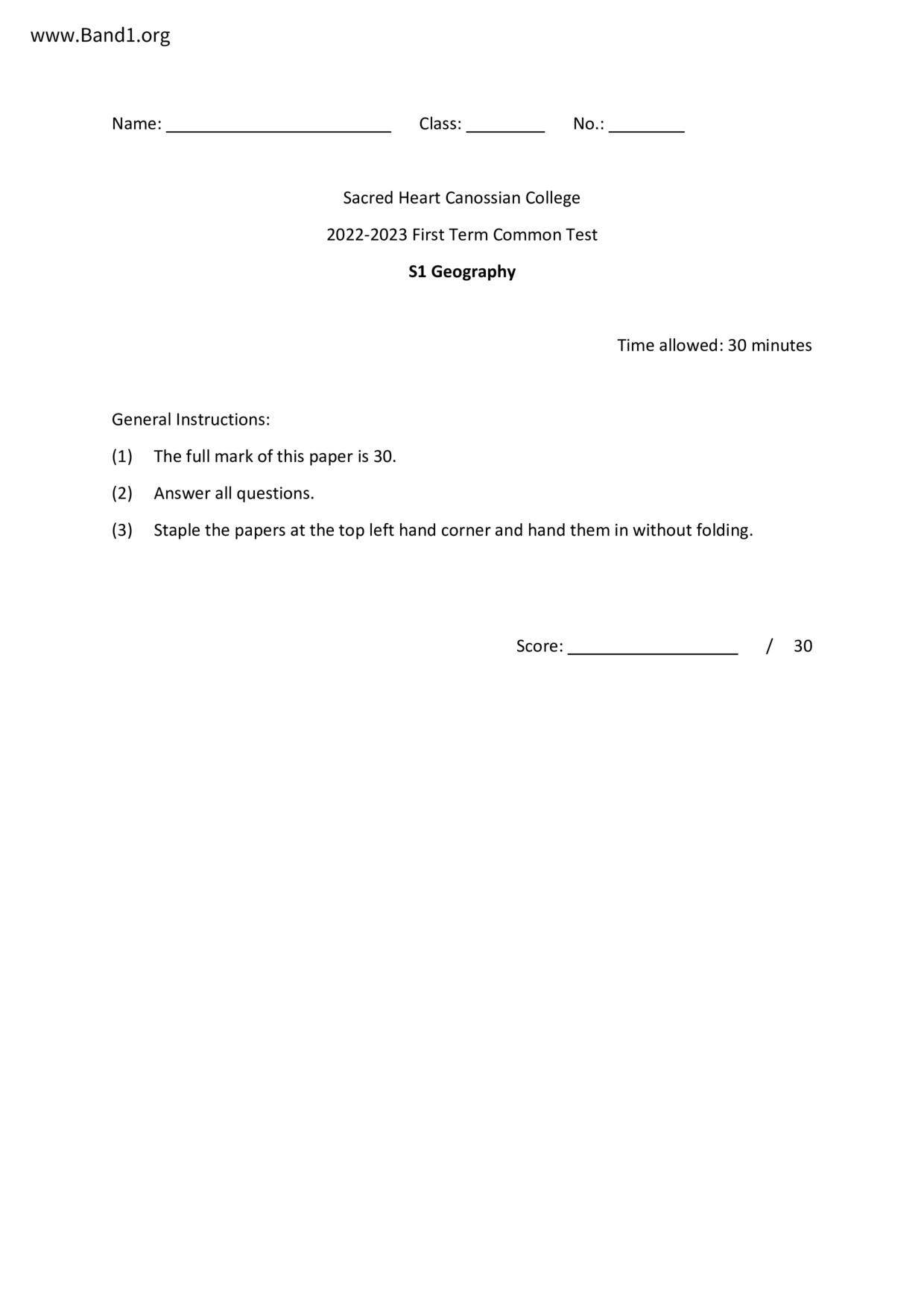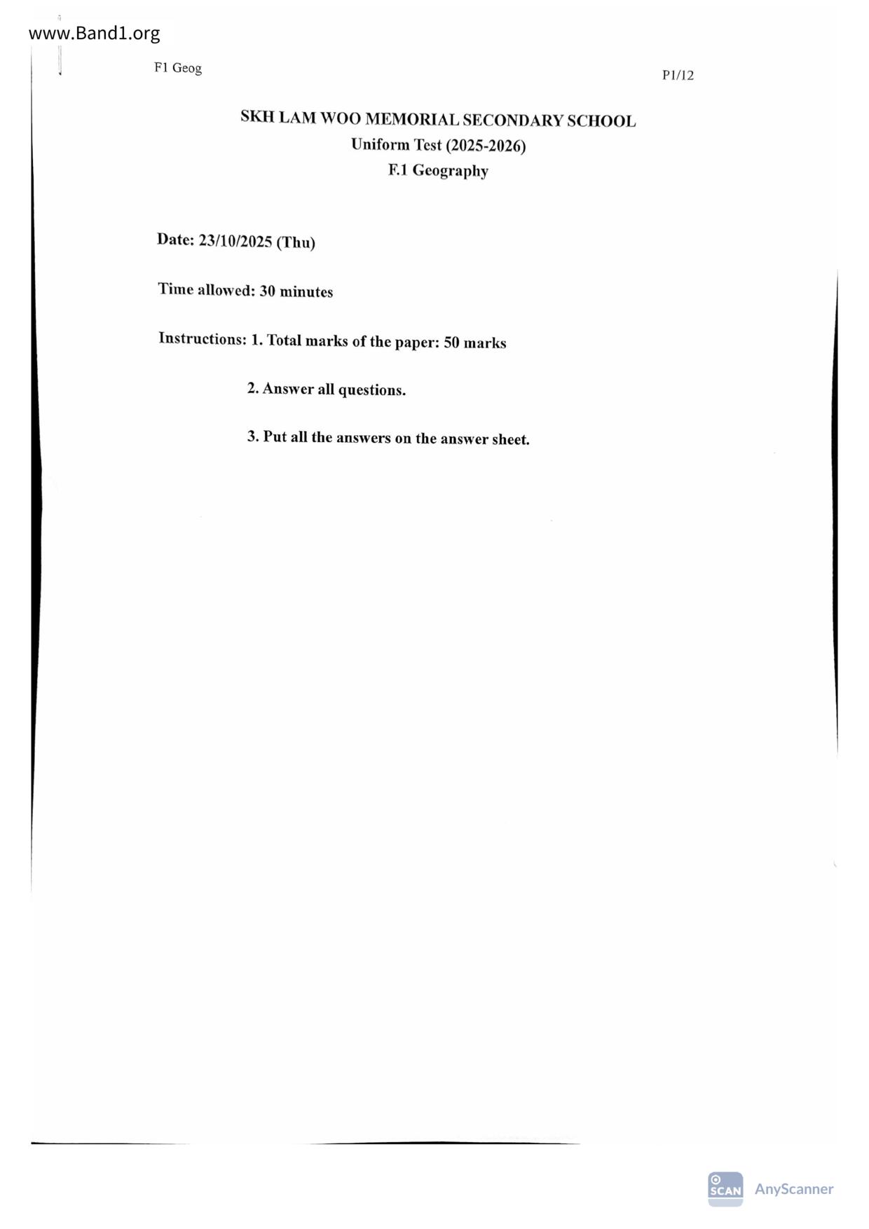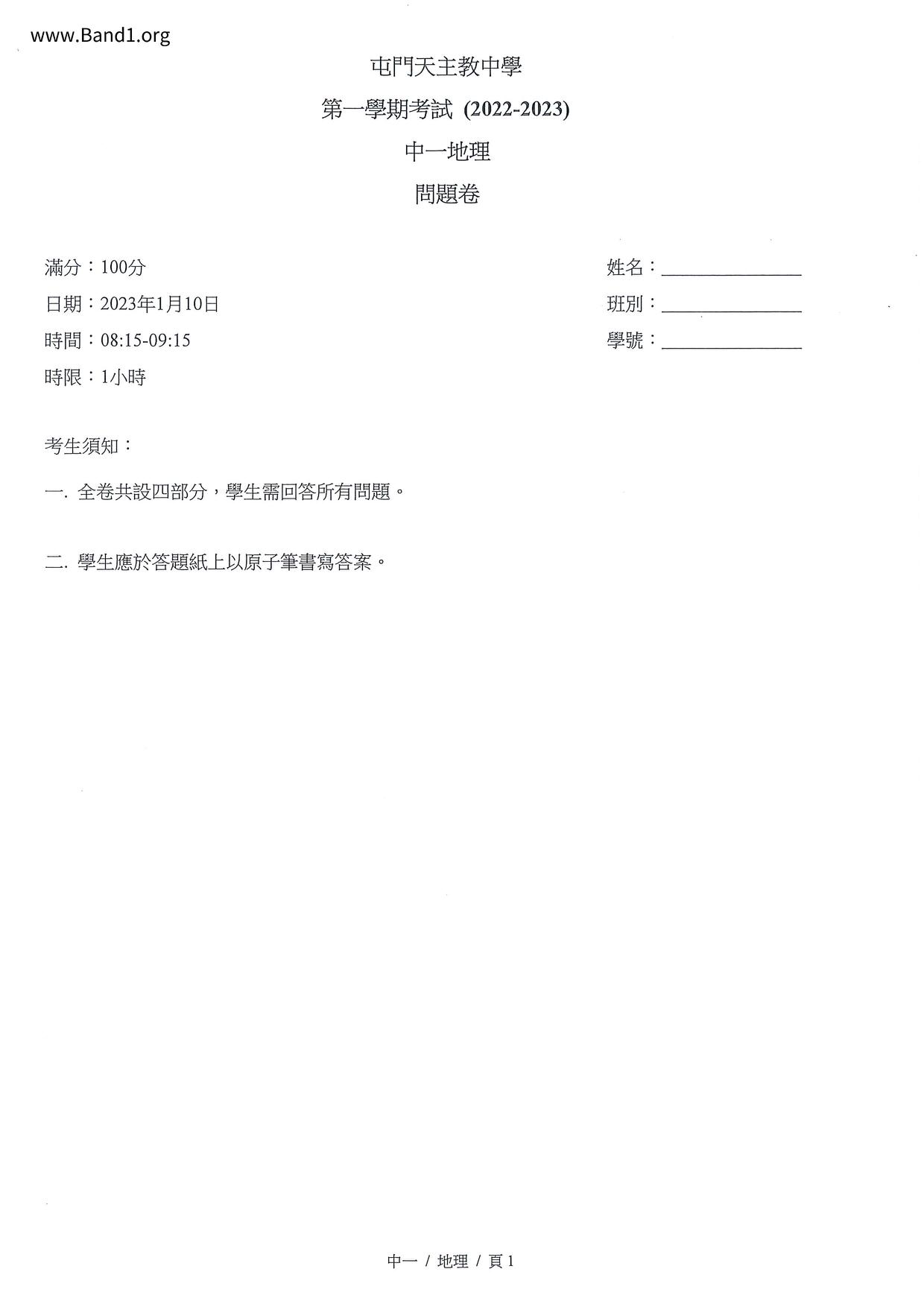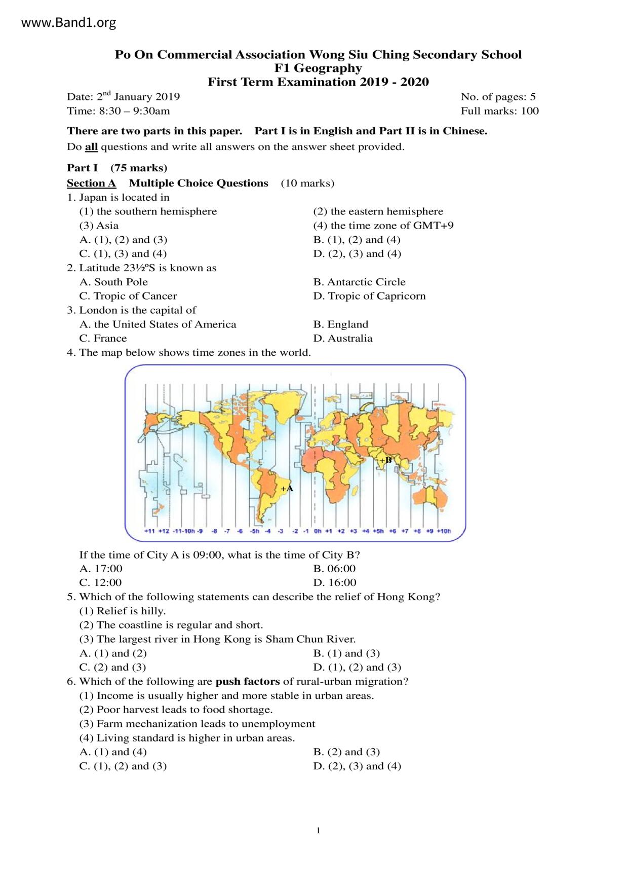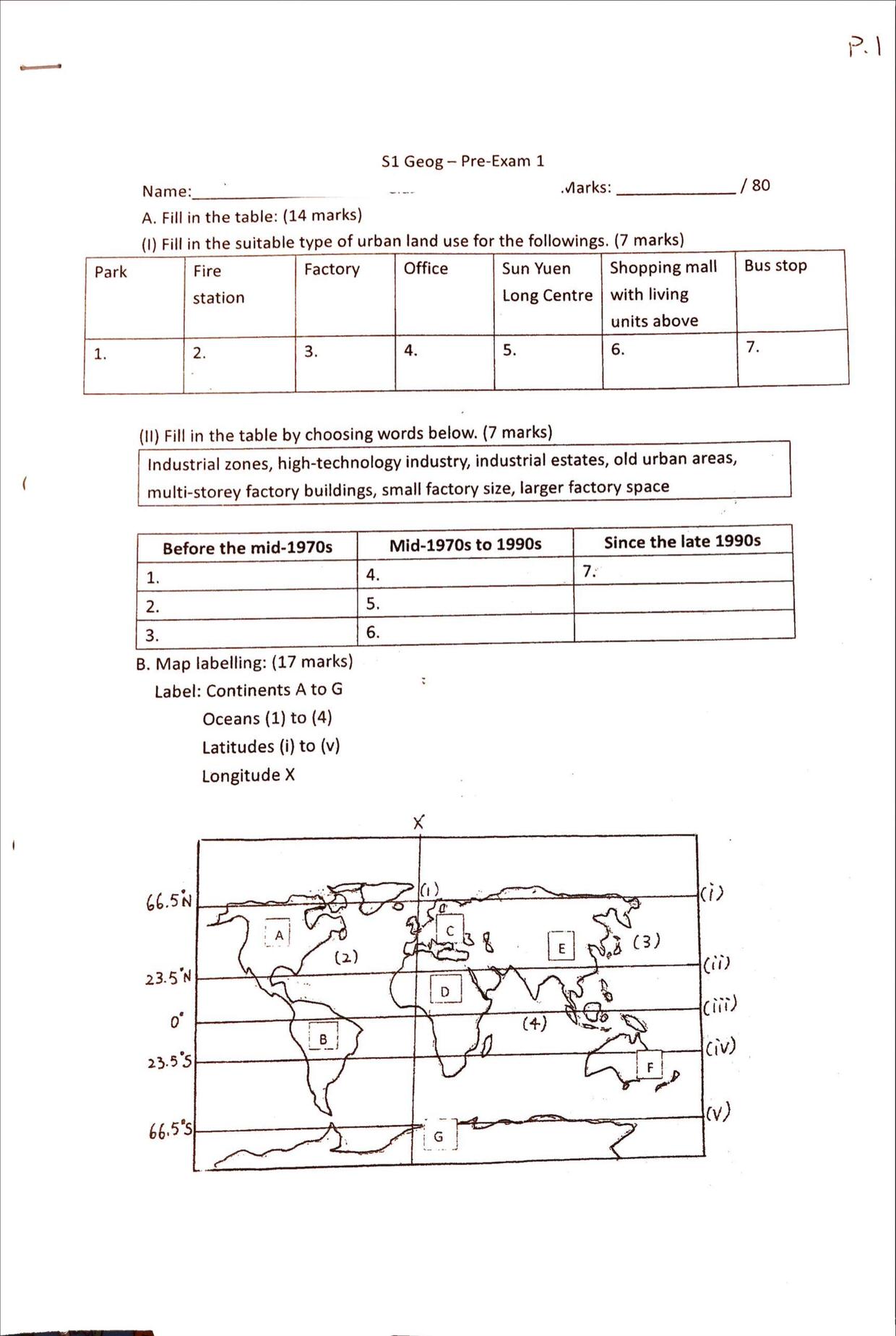 中一 地理 香港四邑商工總會黃棣珊紀念中學