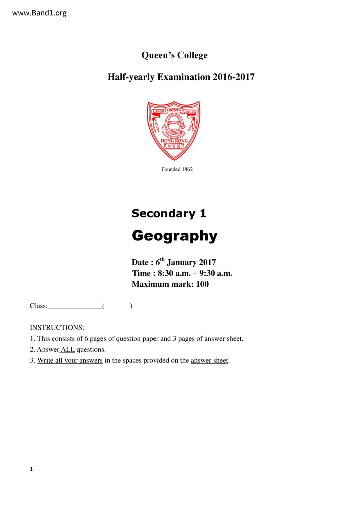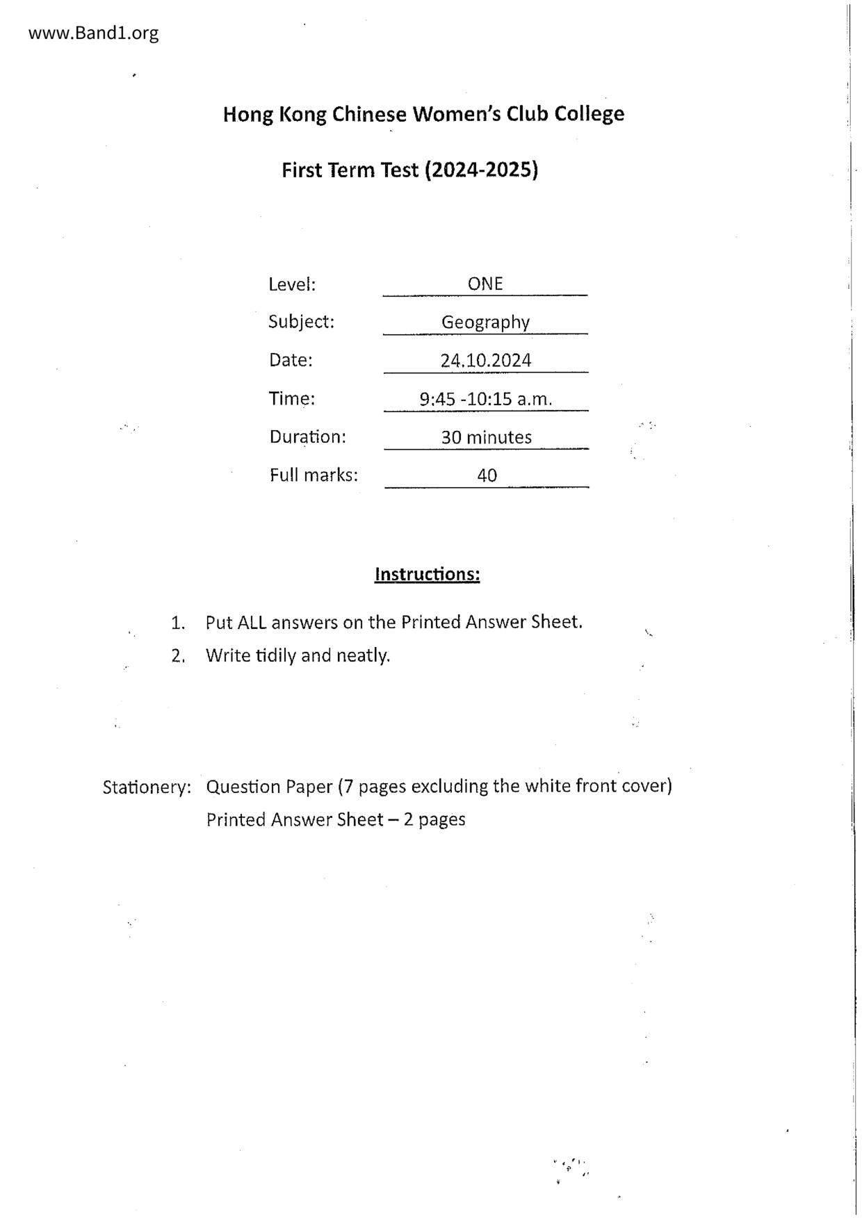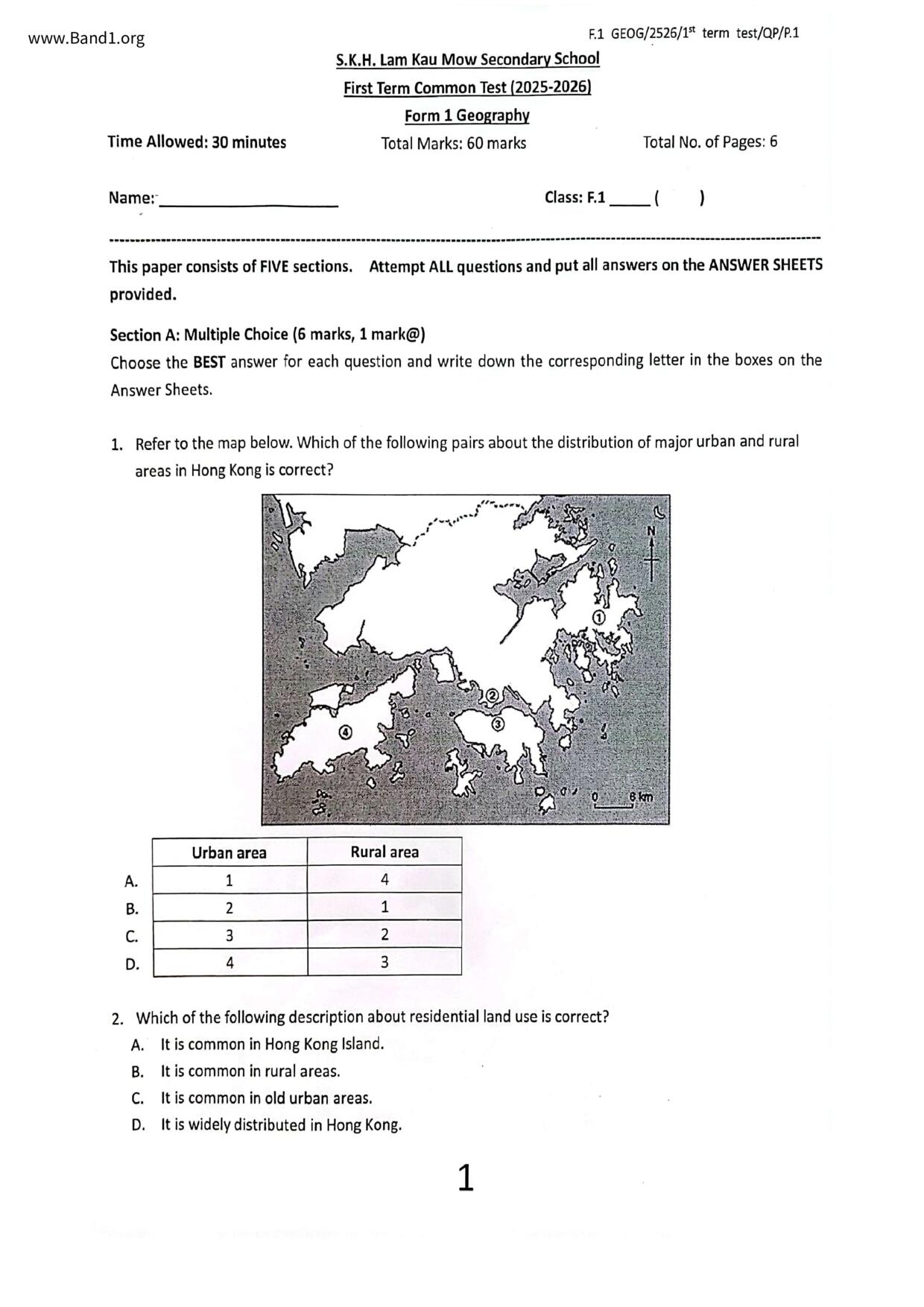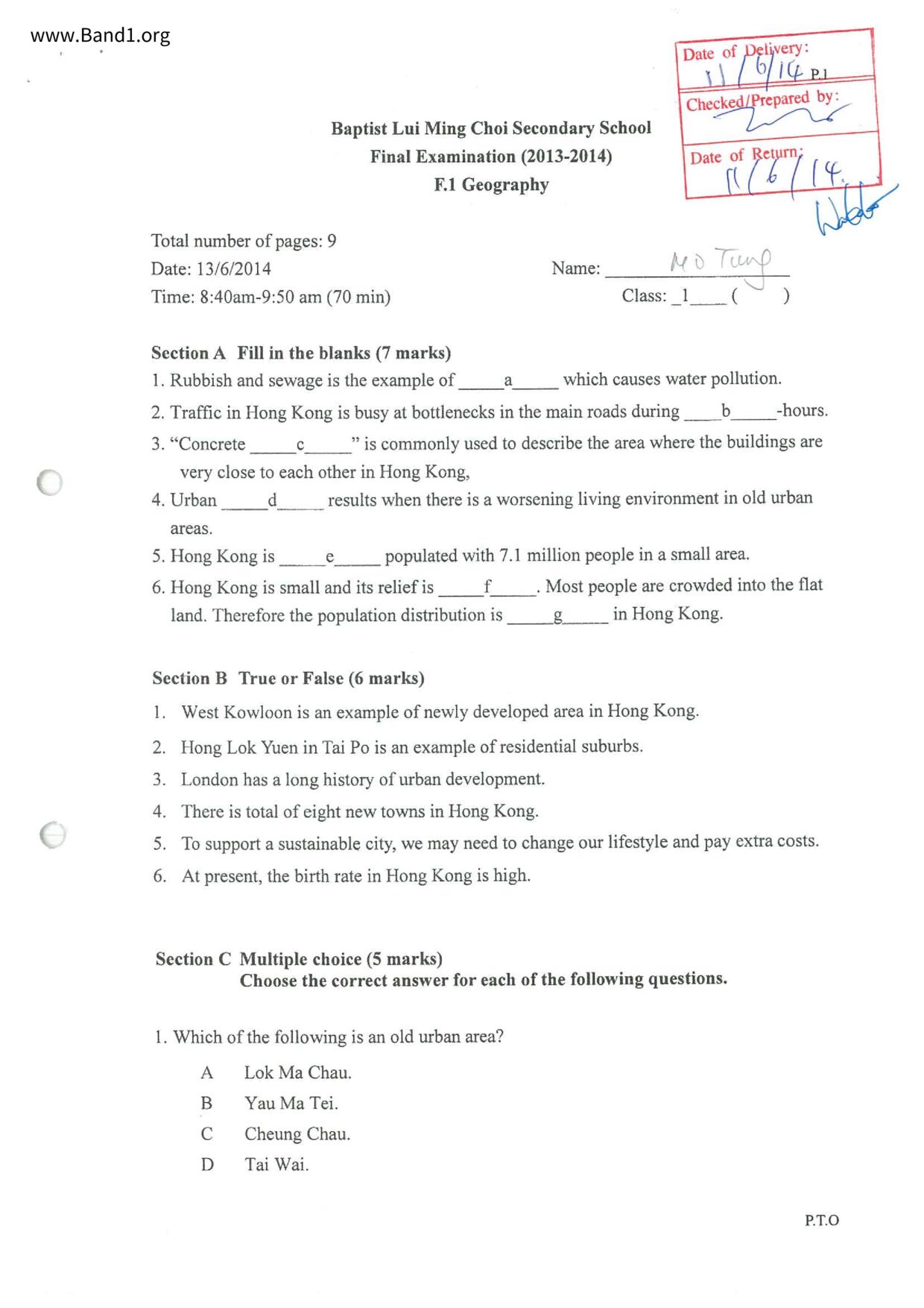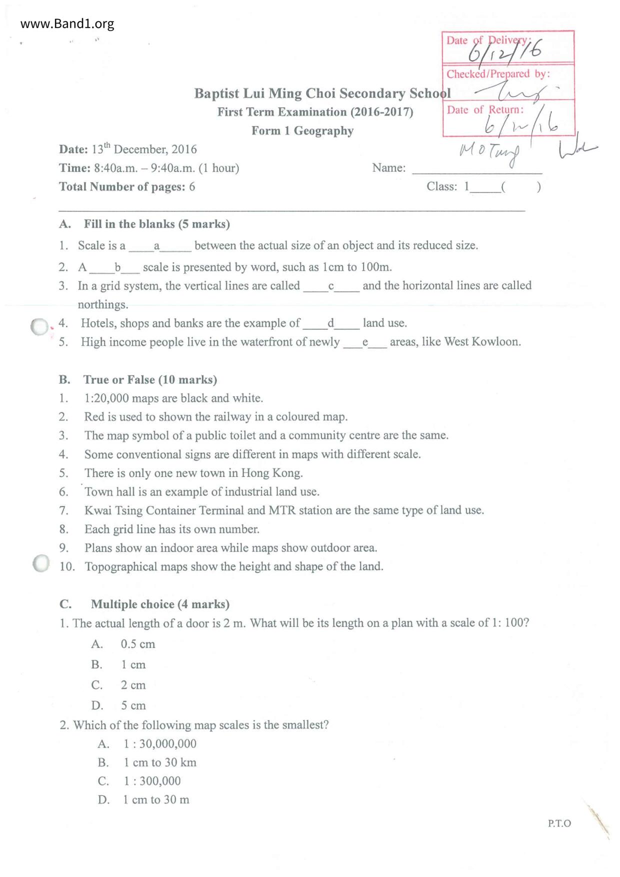 中一 地理 香港四邑商工總會黃棣珊紀念中學