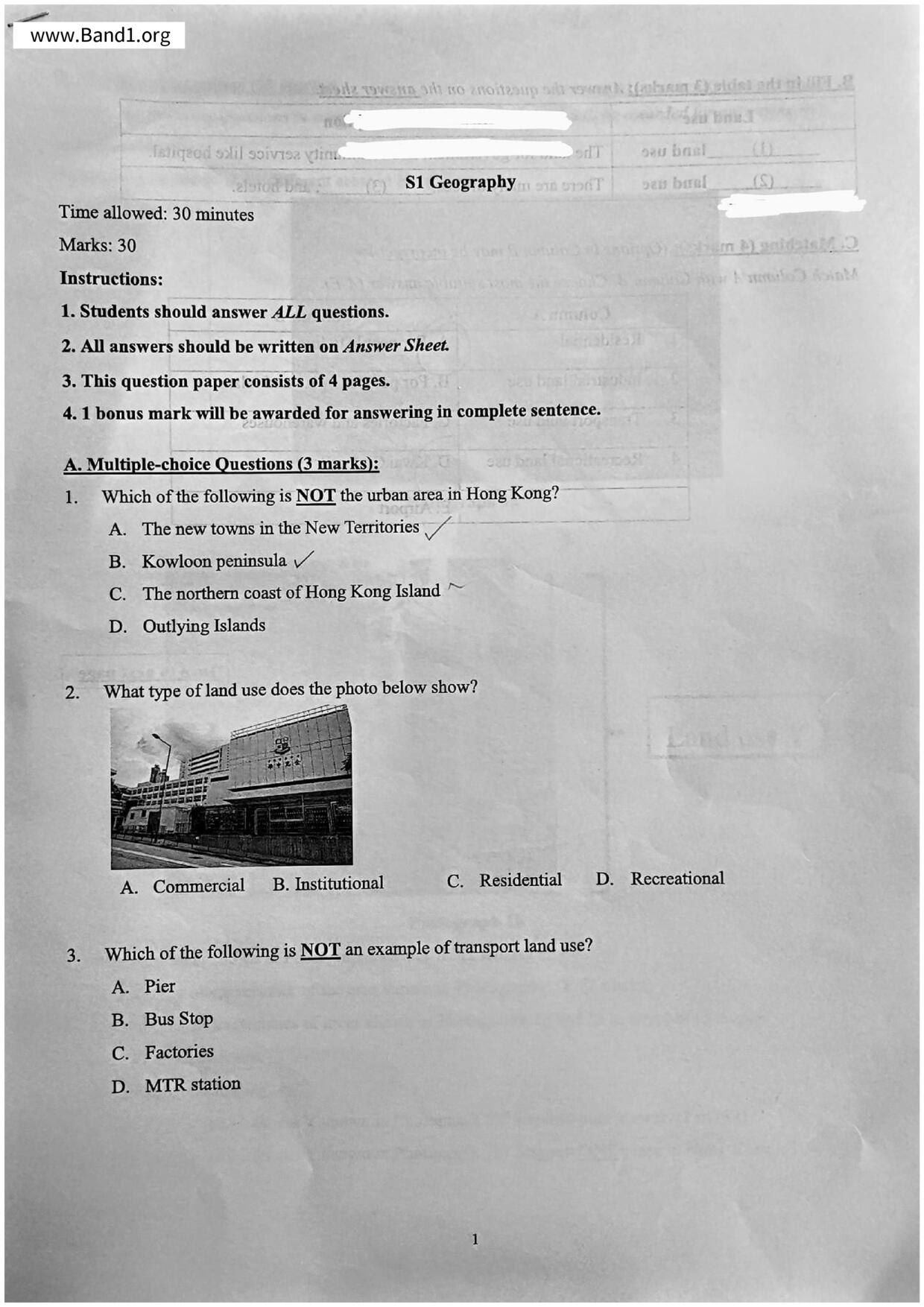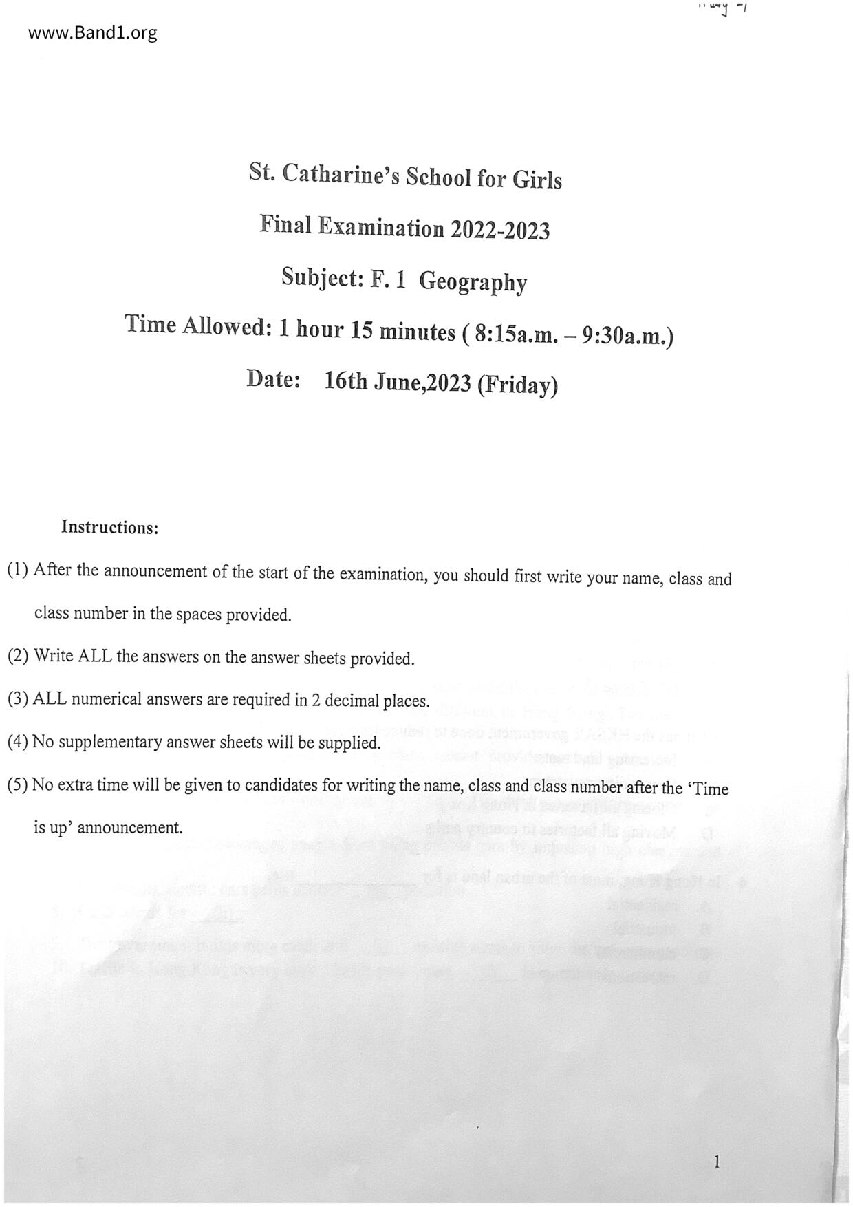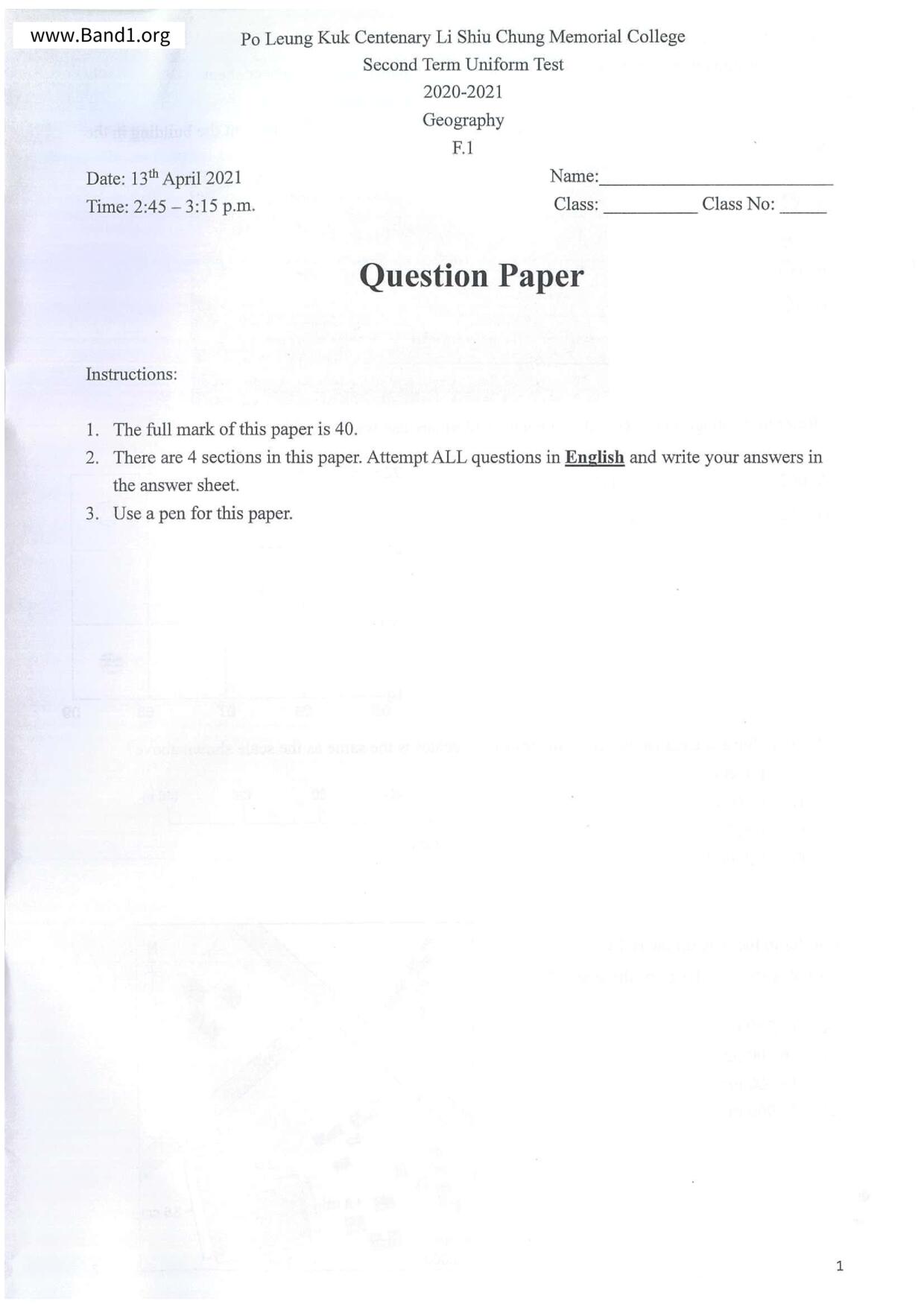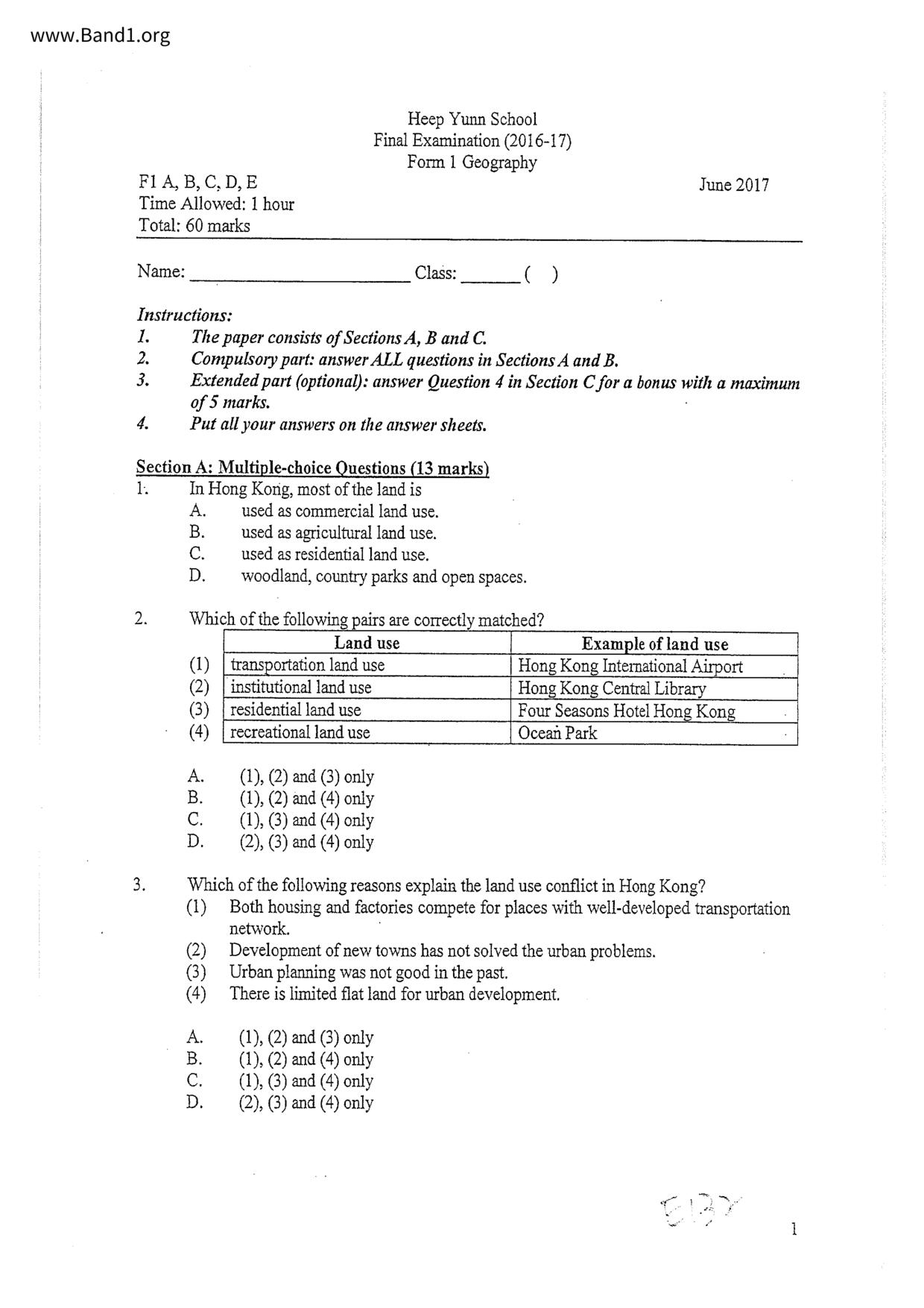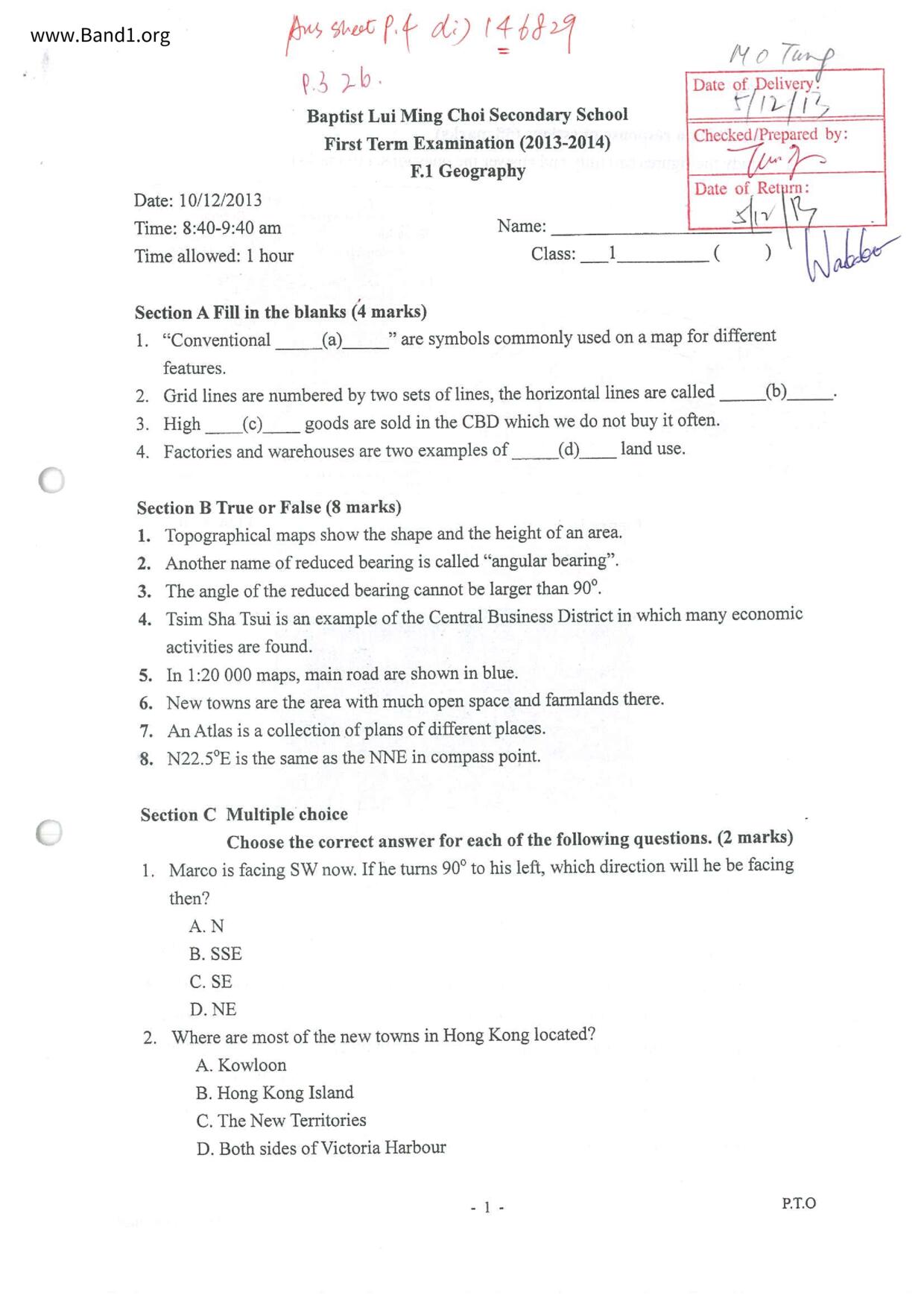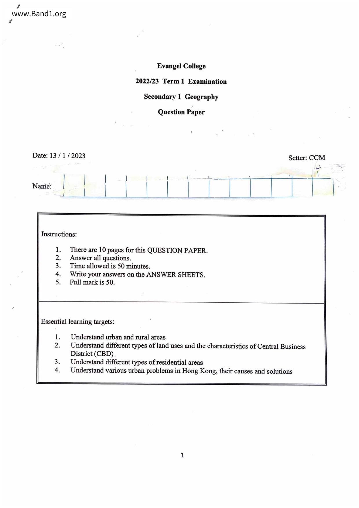 中一 地理 香港四邑商工總會黃棣珊紀念中學
