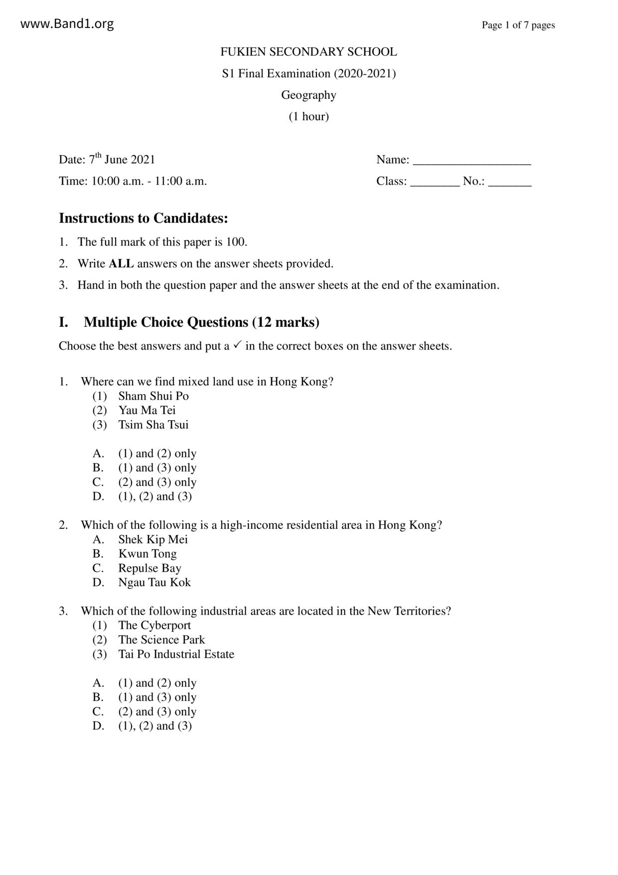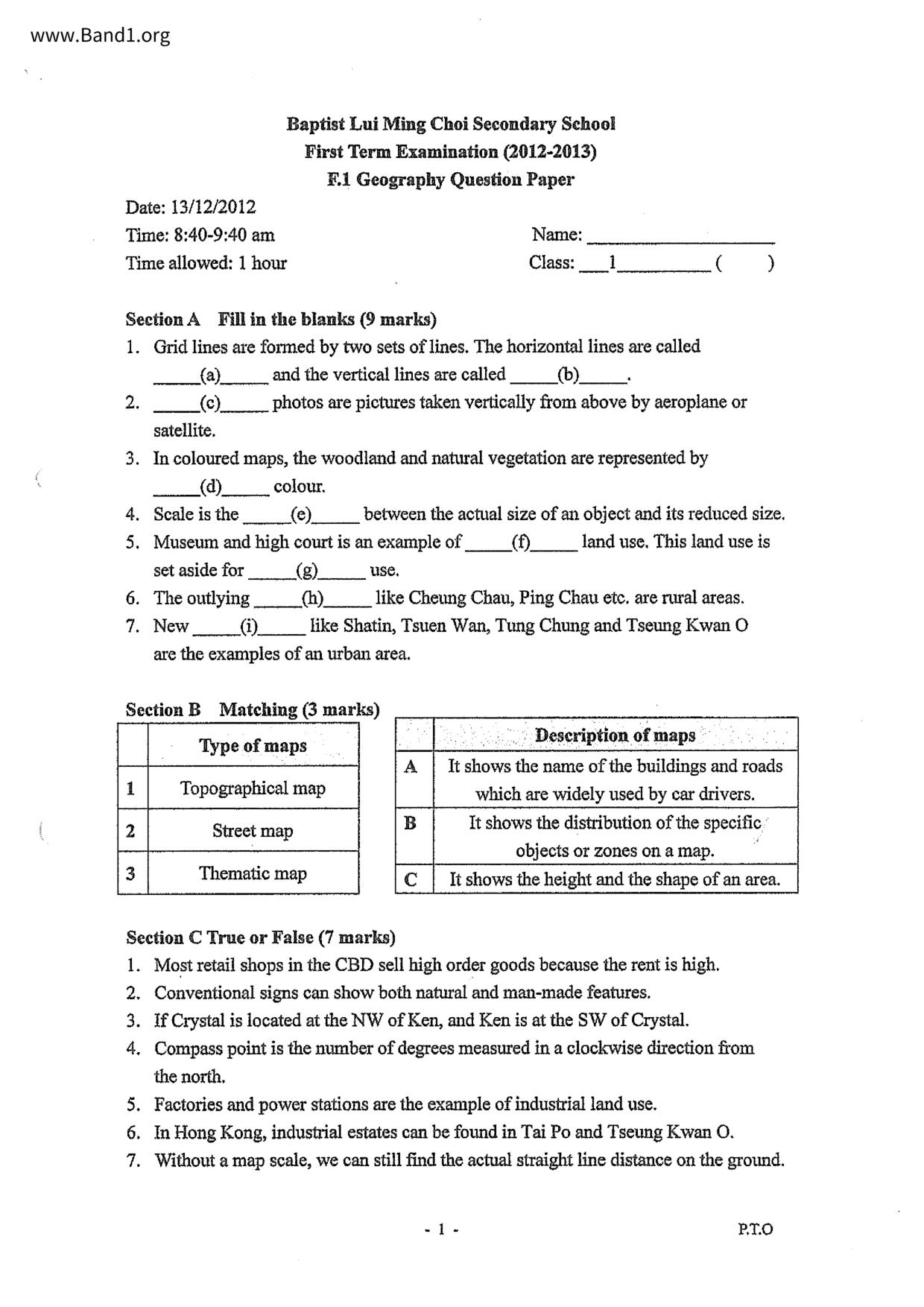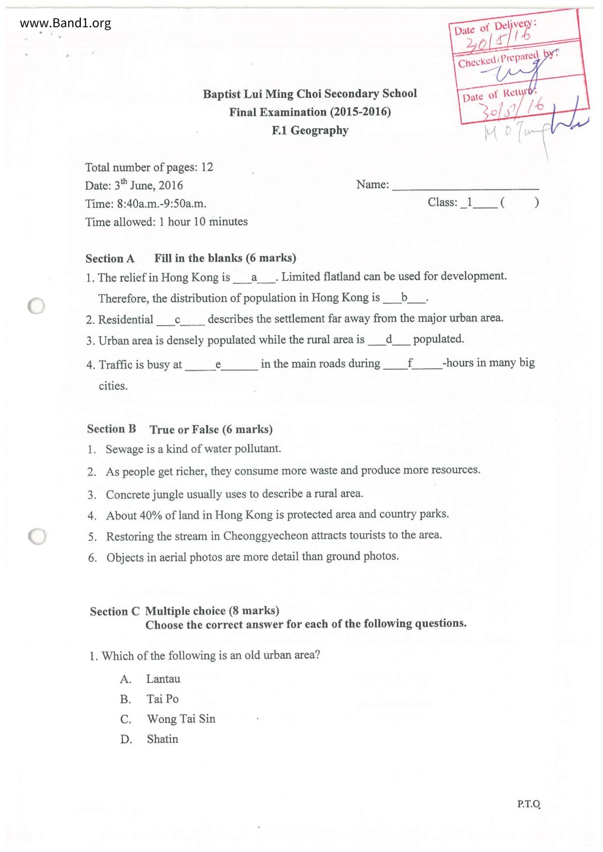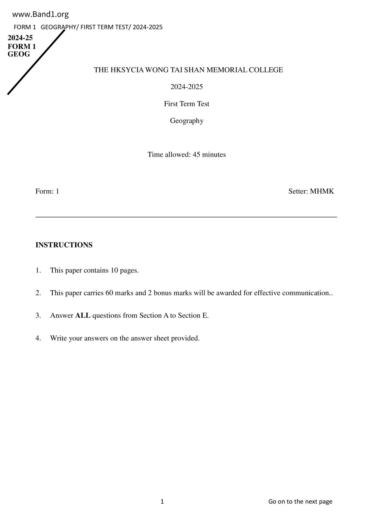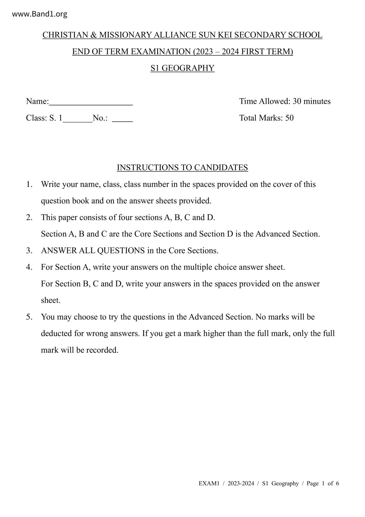 中一 地理 香港四邑商工總會黃棣珊紀念中學