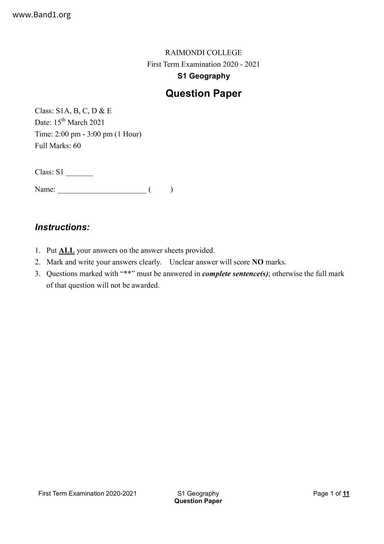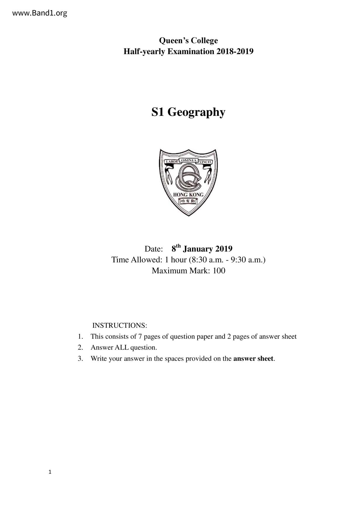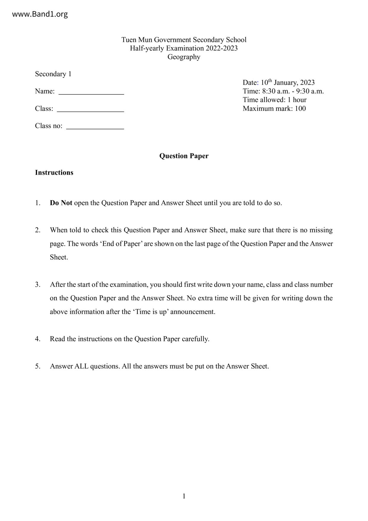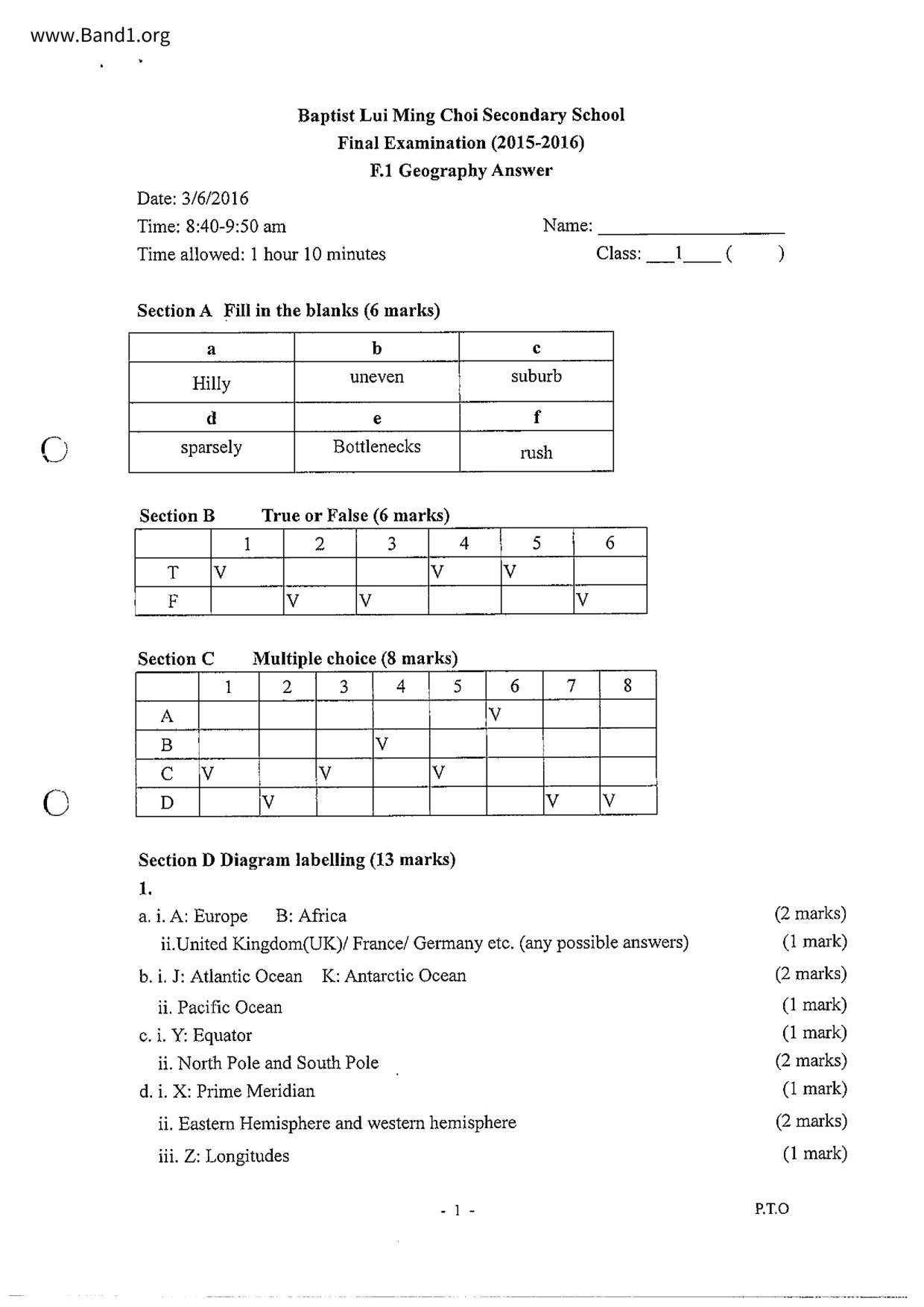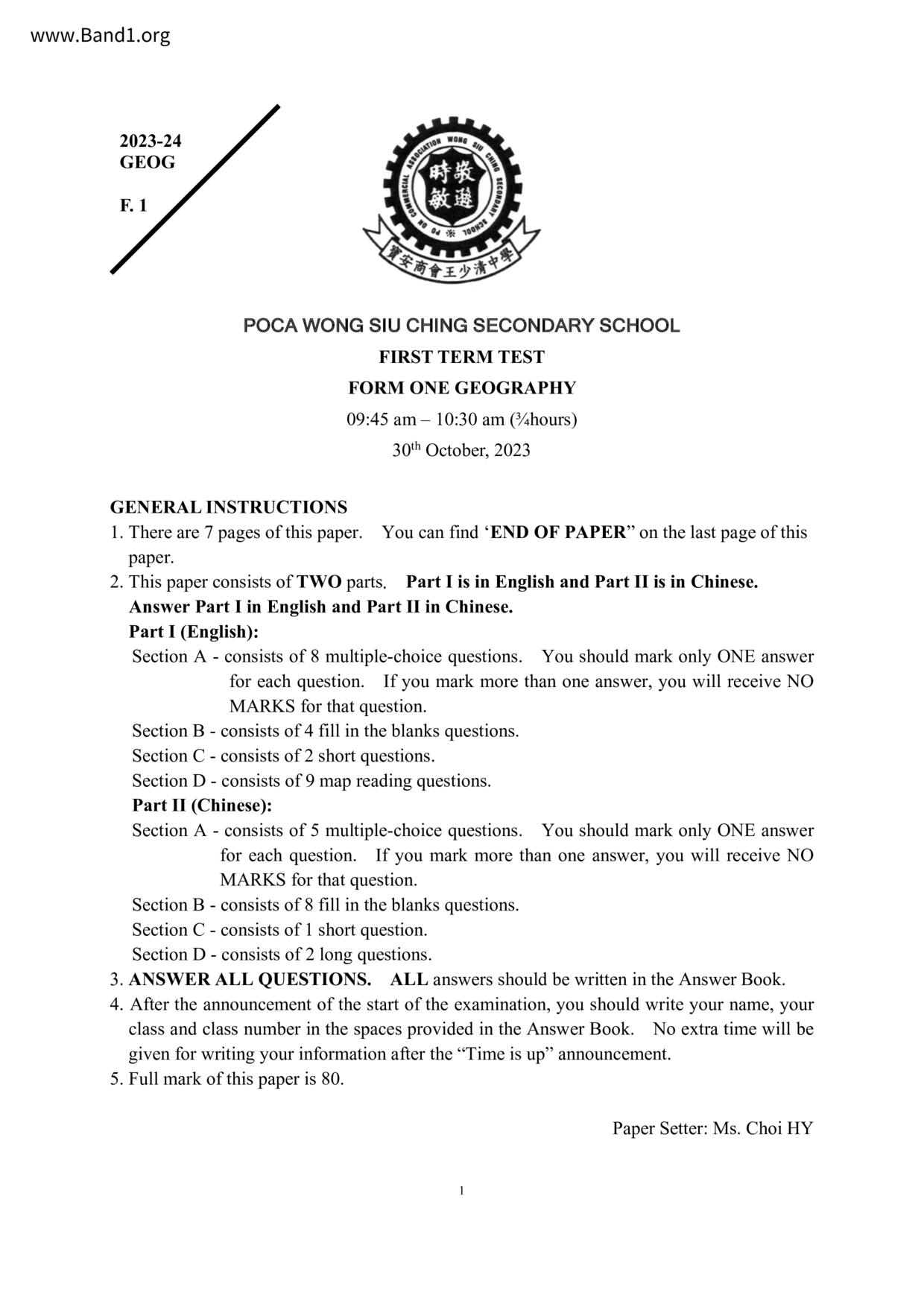 中一 地理 香港四邑商工總會黃棣珊紀念中學