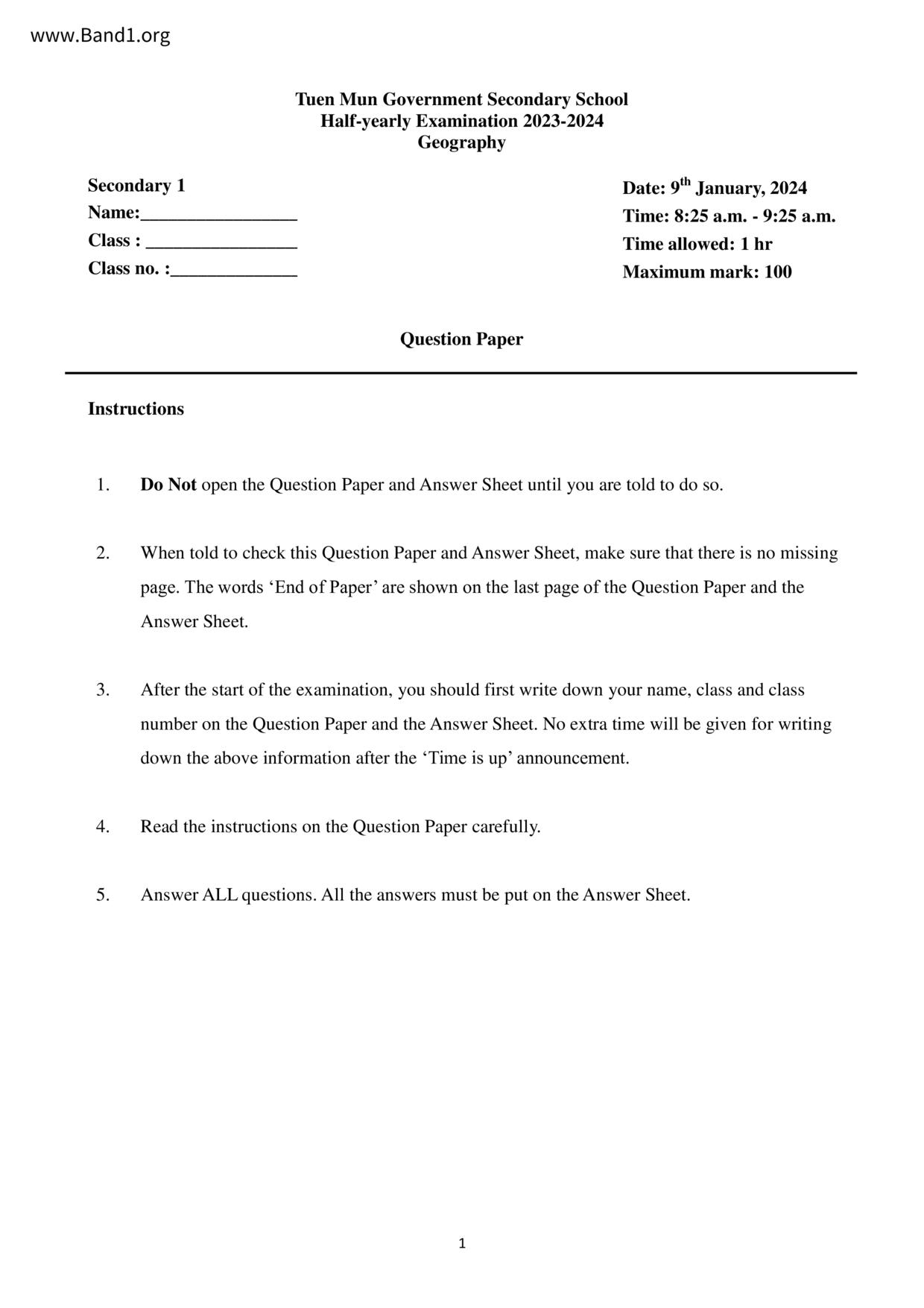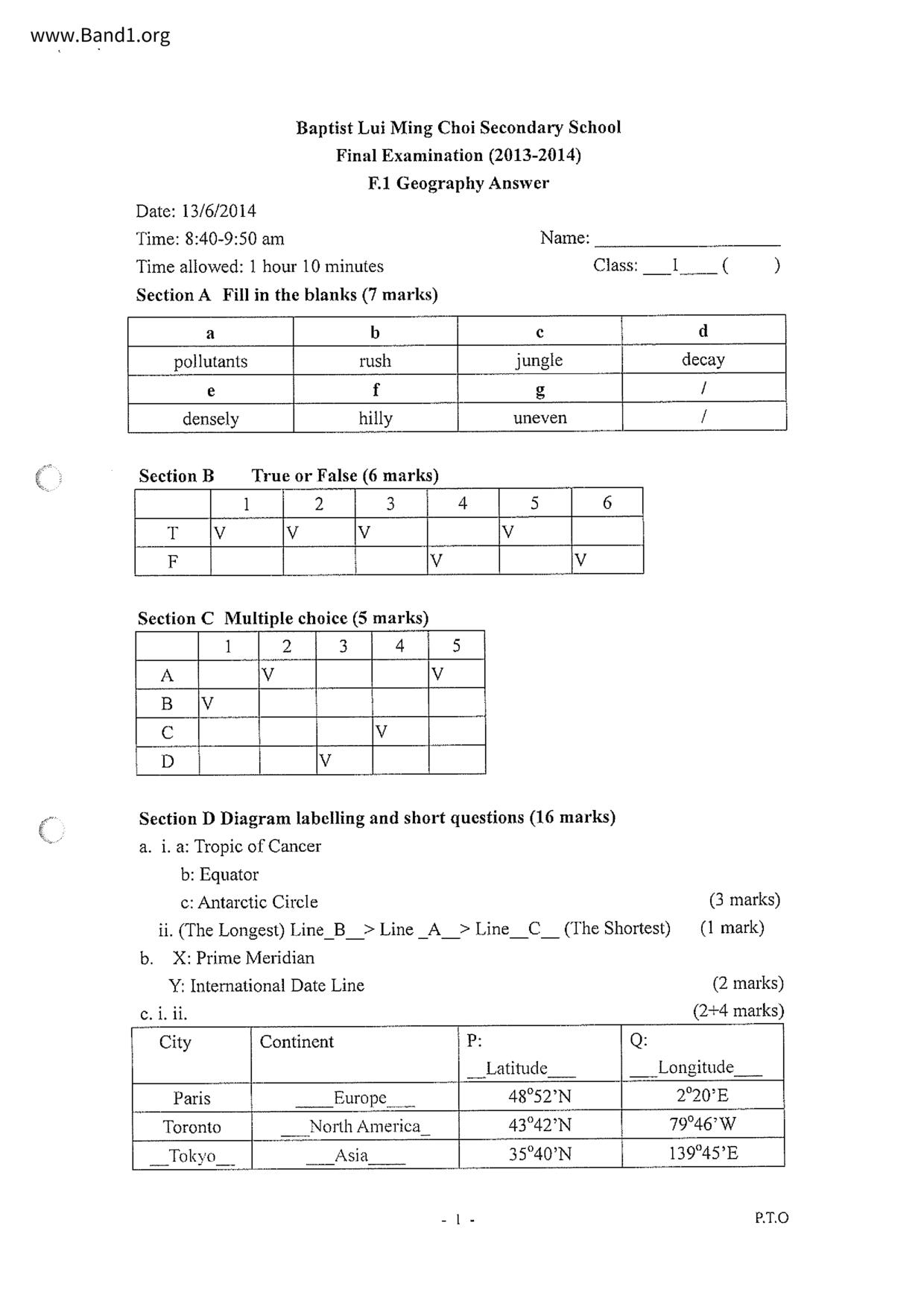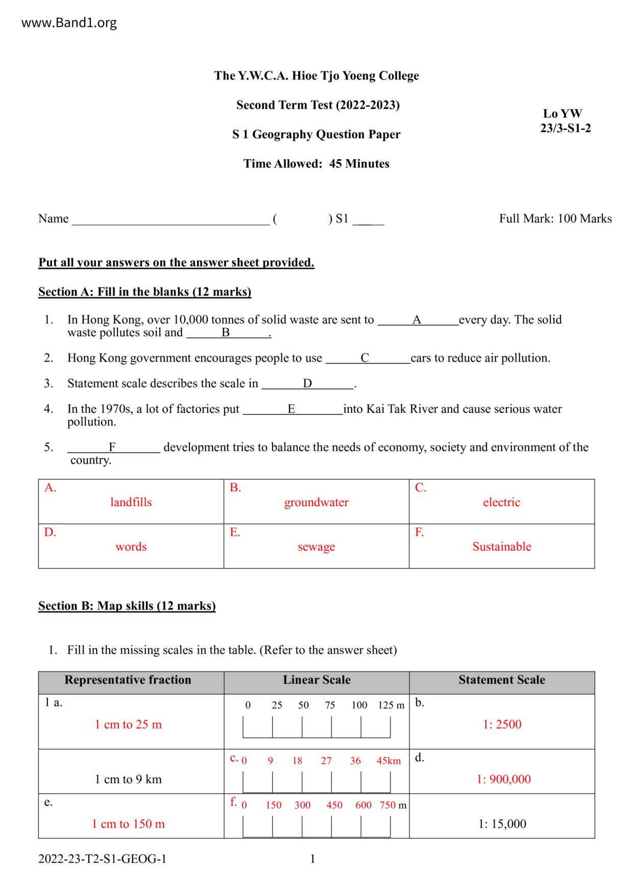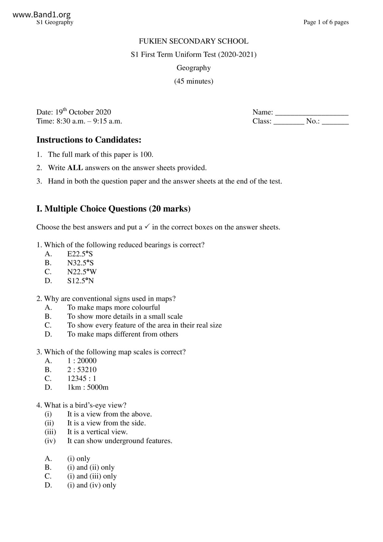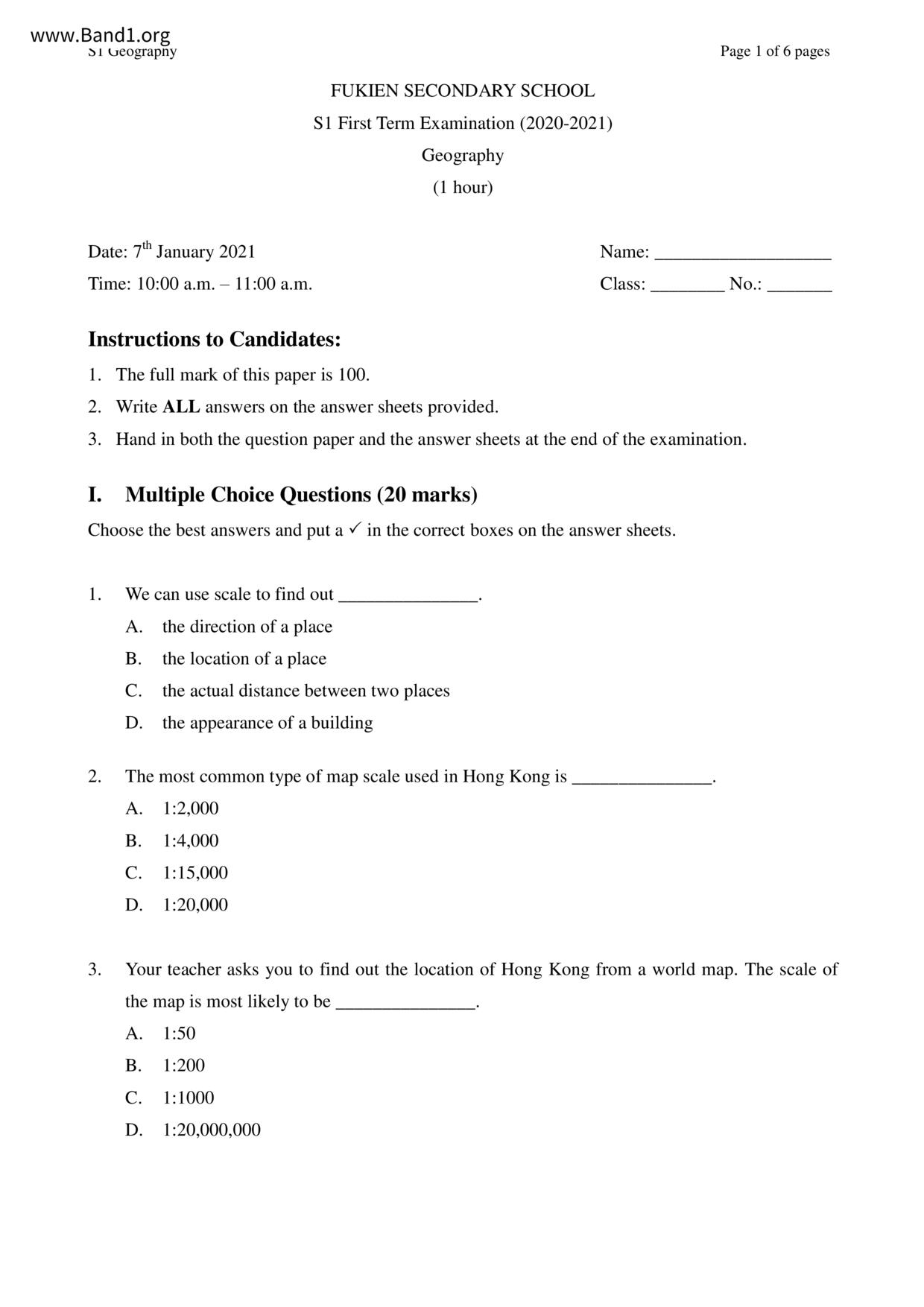 中一 地理 香港四邑商工總會黃棣珊紀念中學