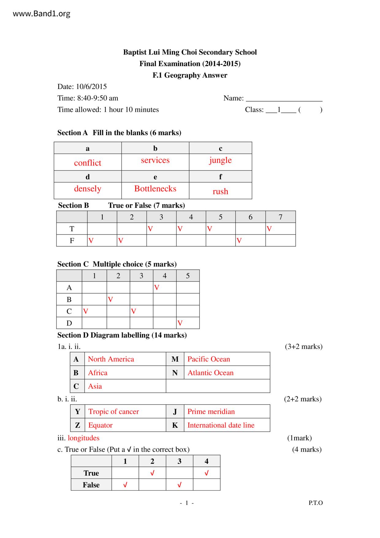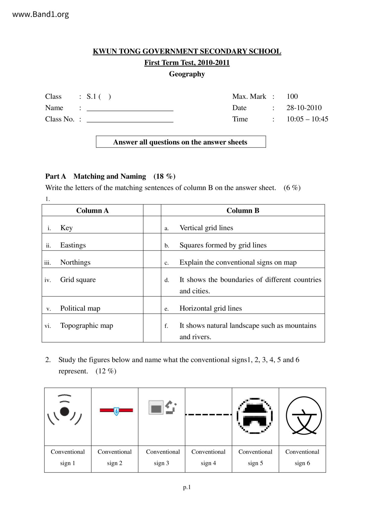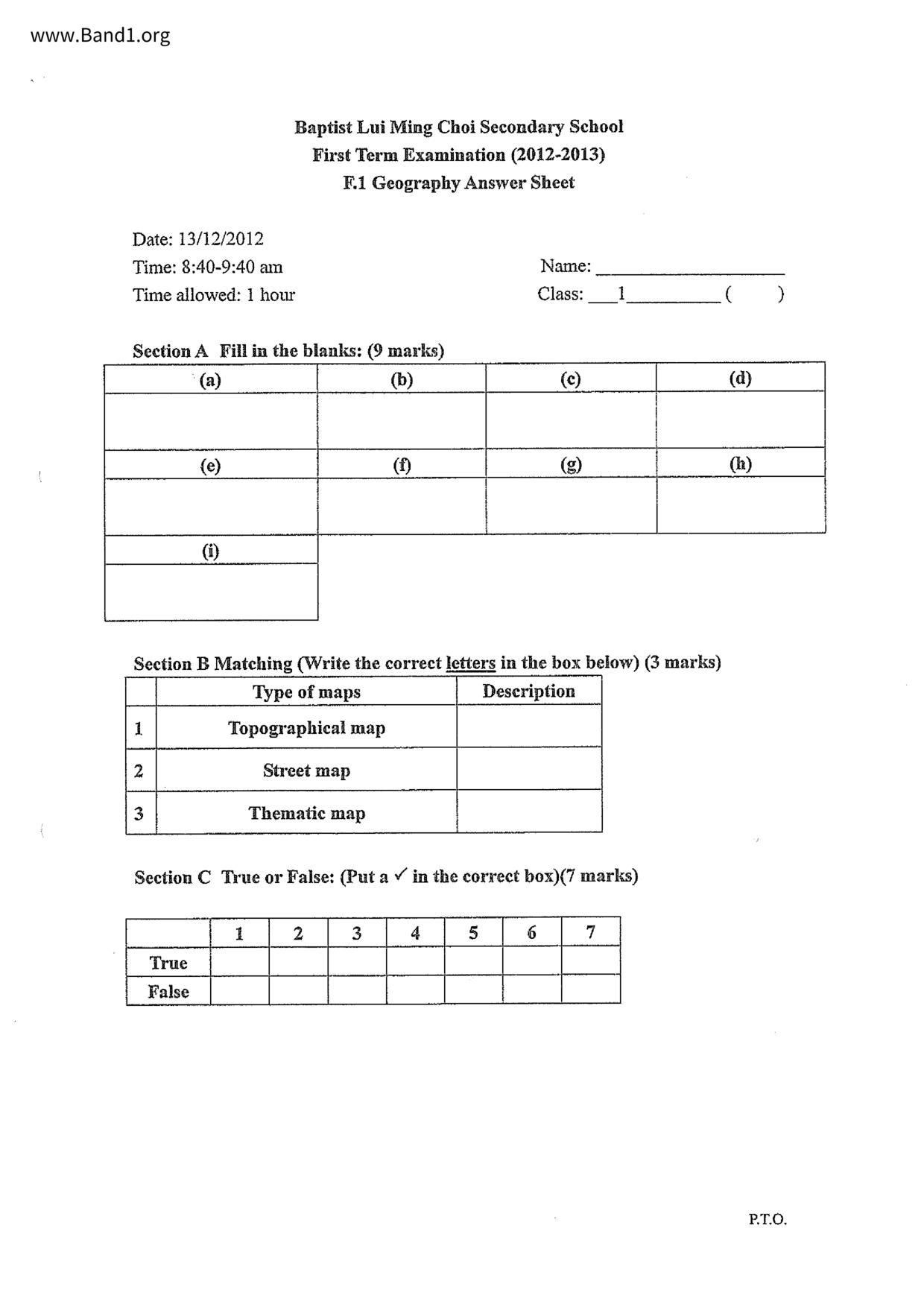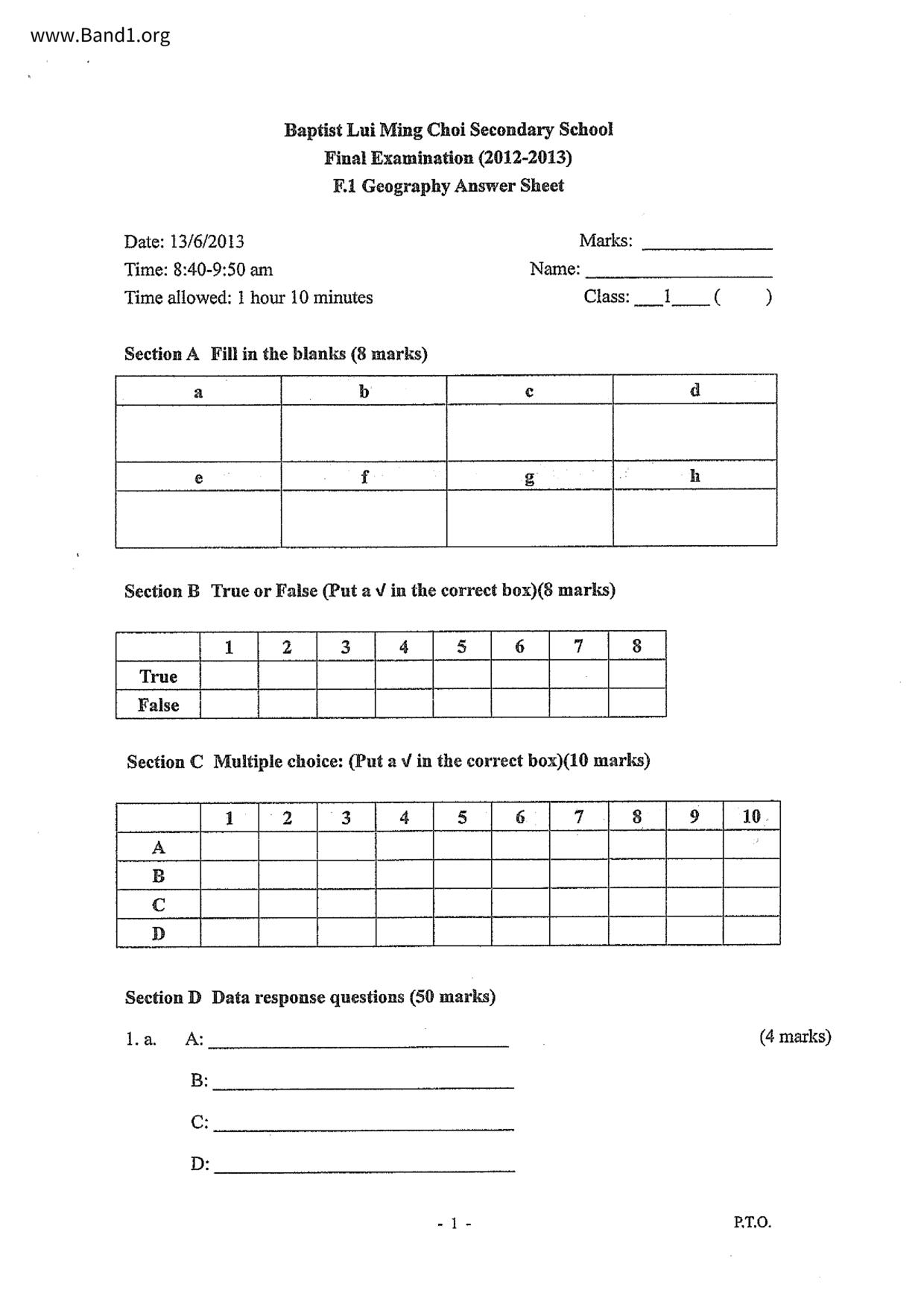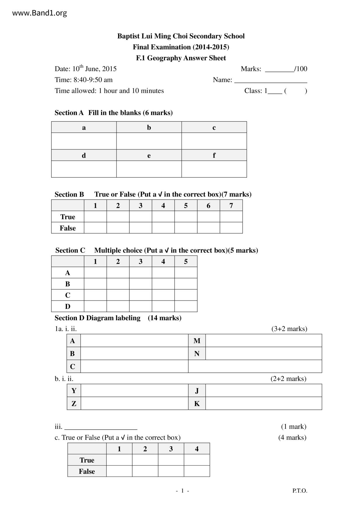 中一 地理 香港四邑商工總會黃棣珊紀念中學