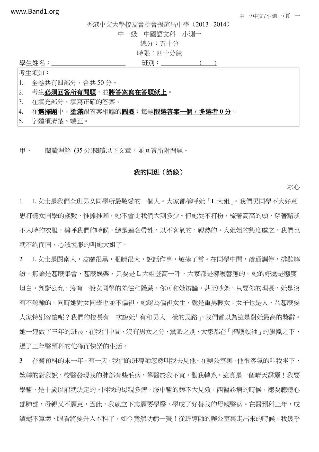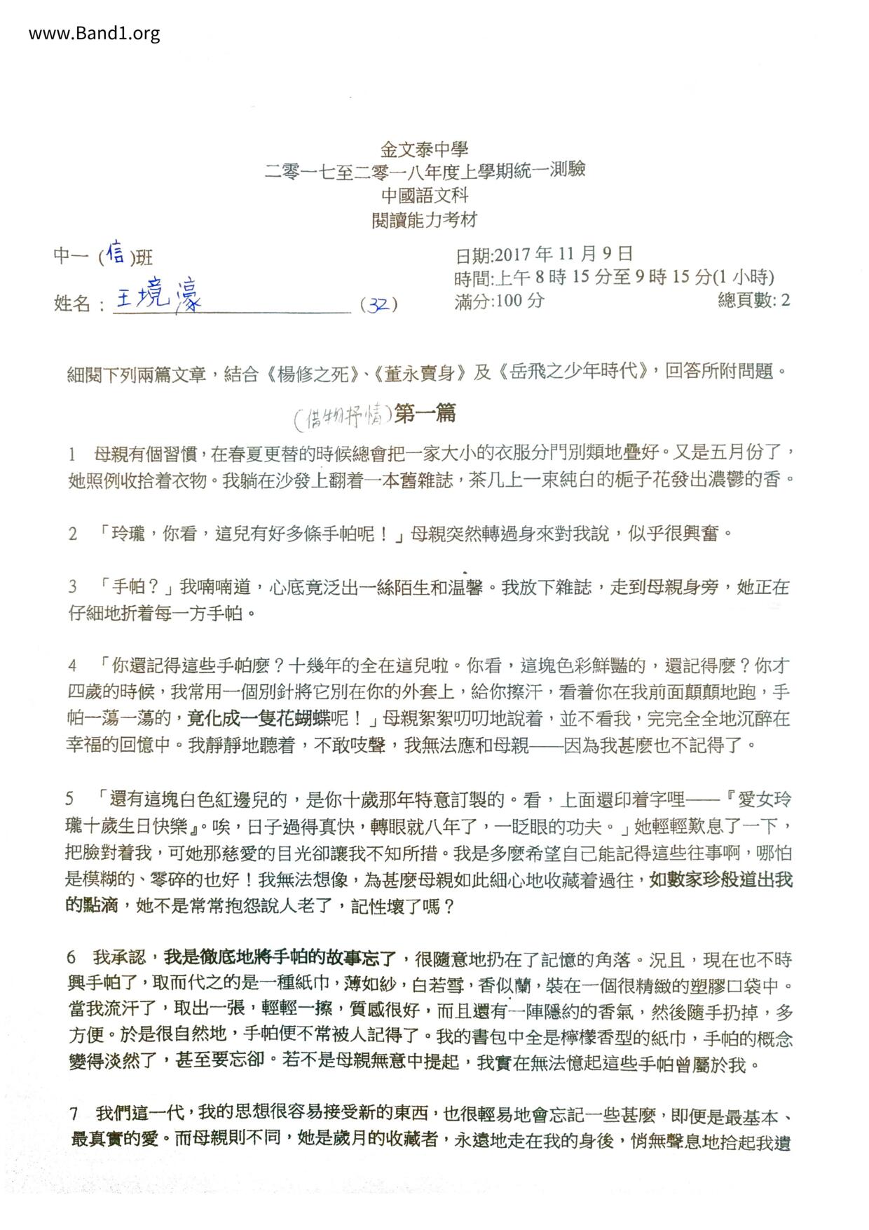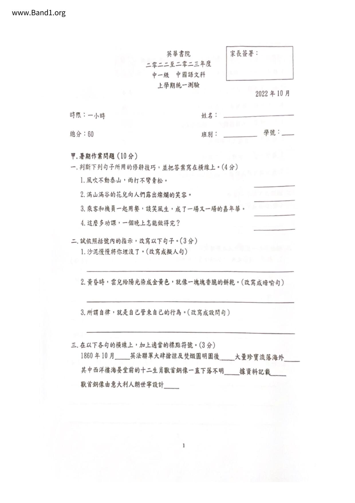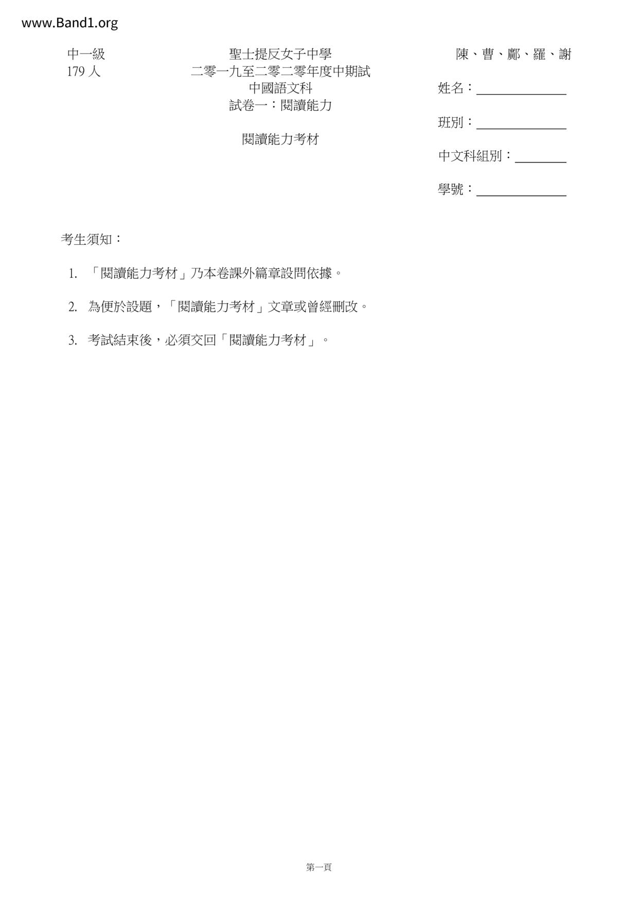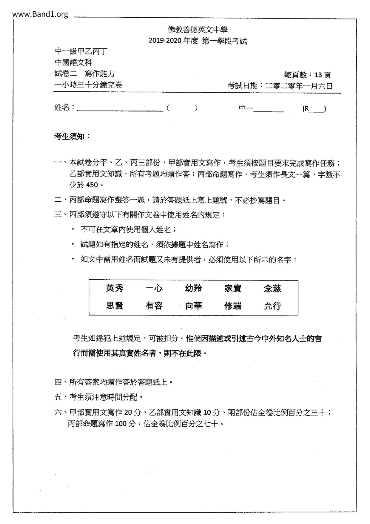 中一 英文 博愛醫院八十週年鄧英喜中學