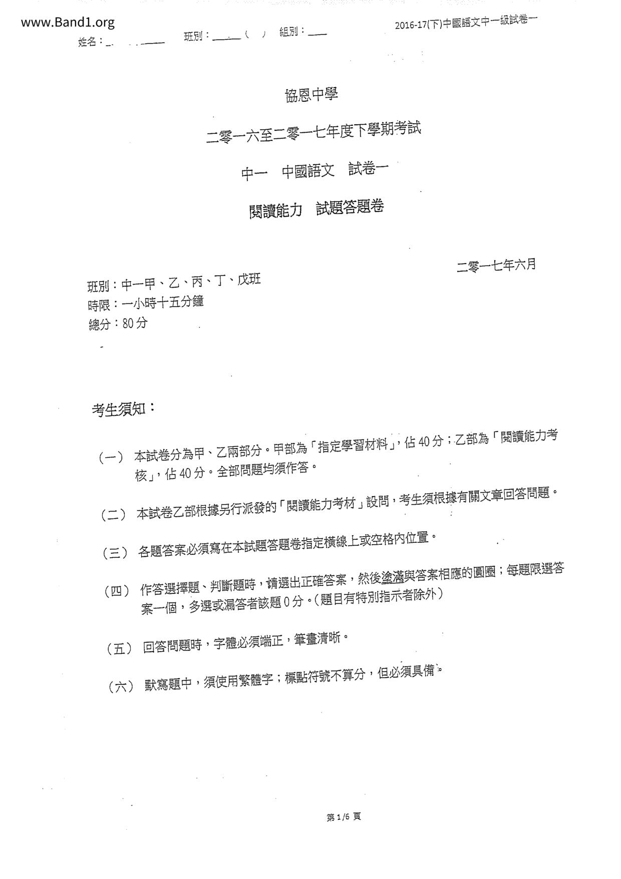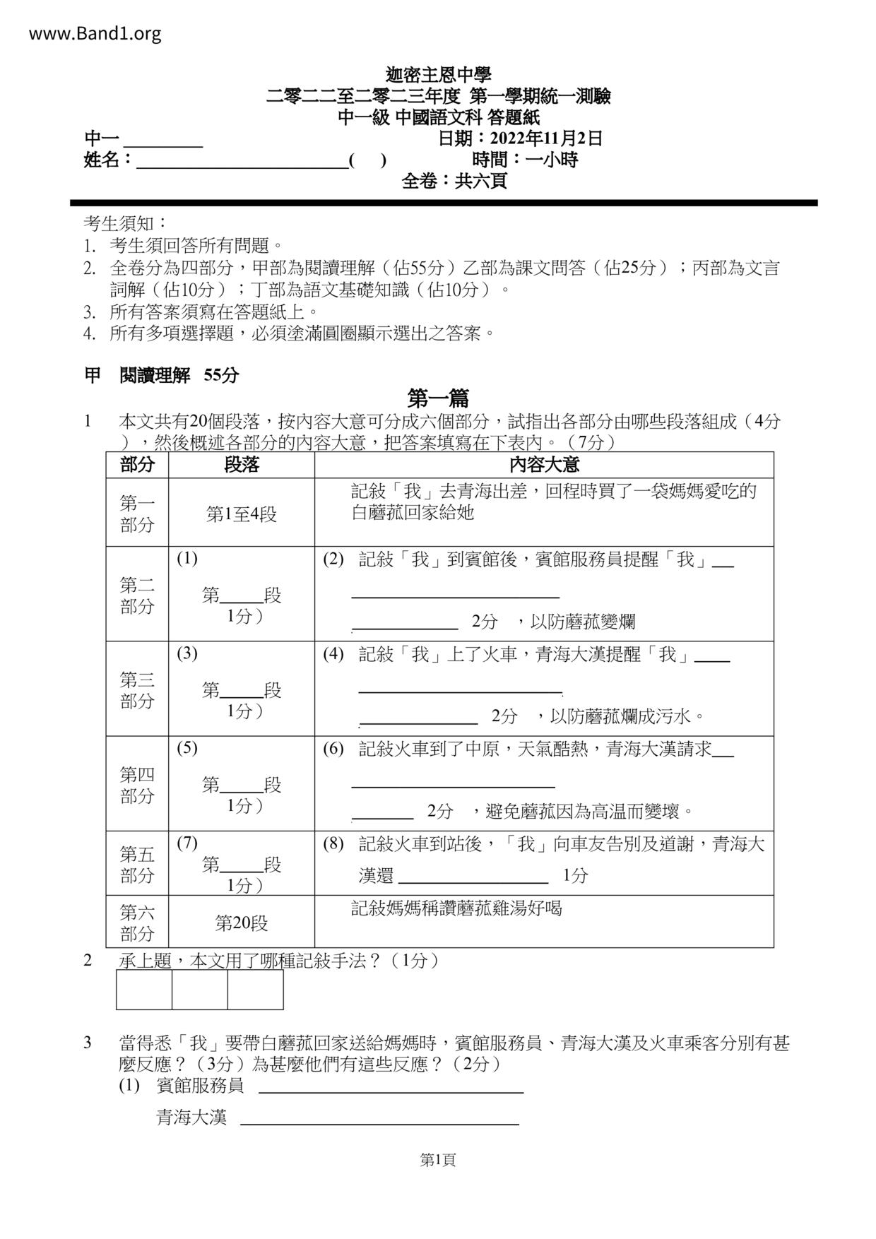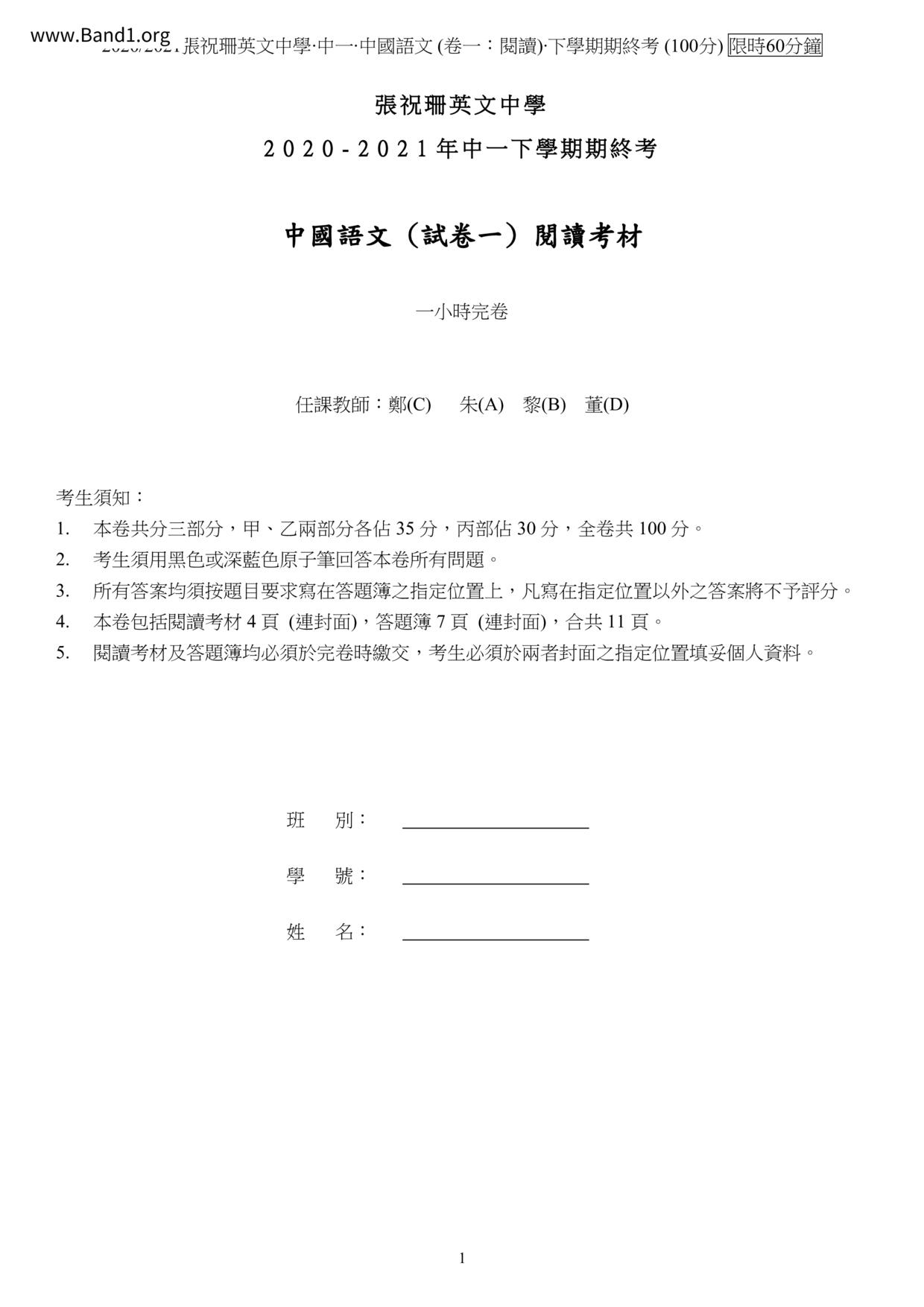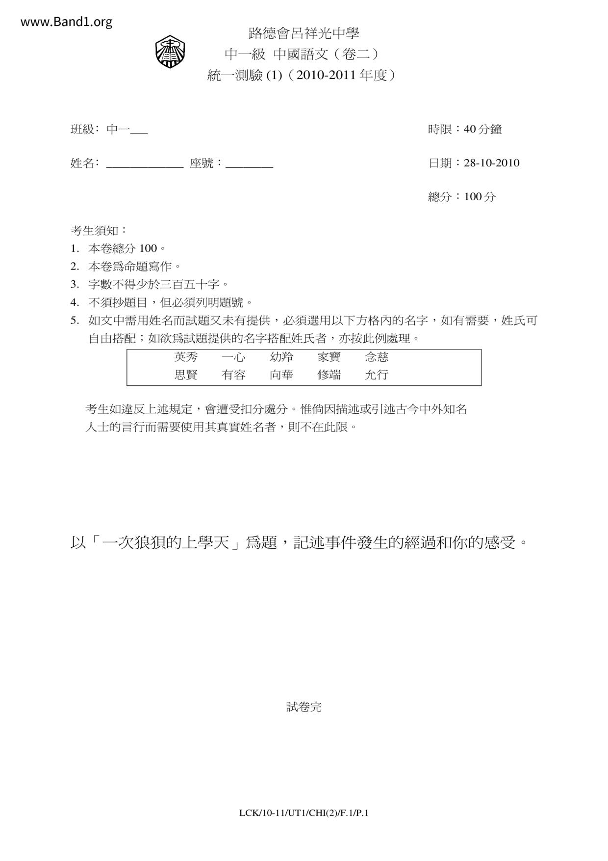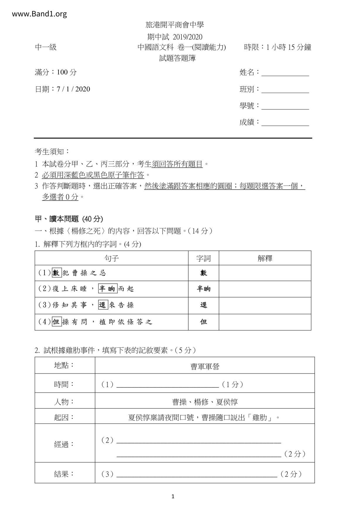 中一 英文 博愛醫院八十週年鄧英喜中學