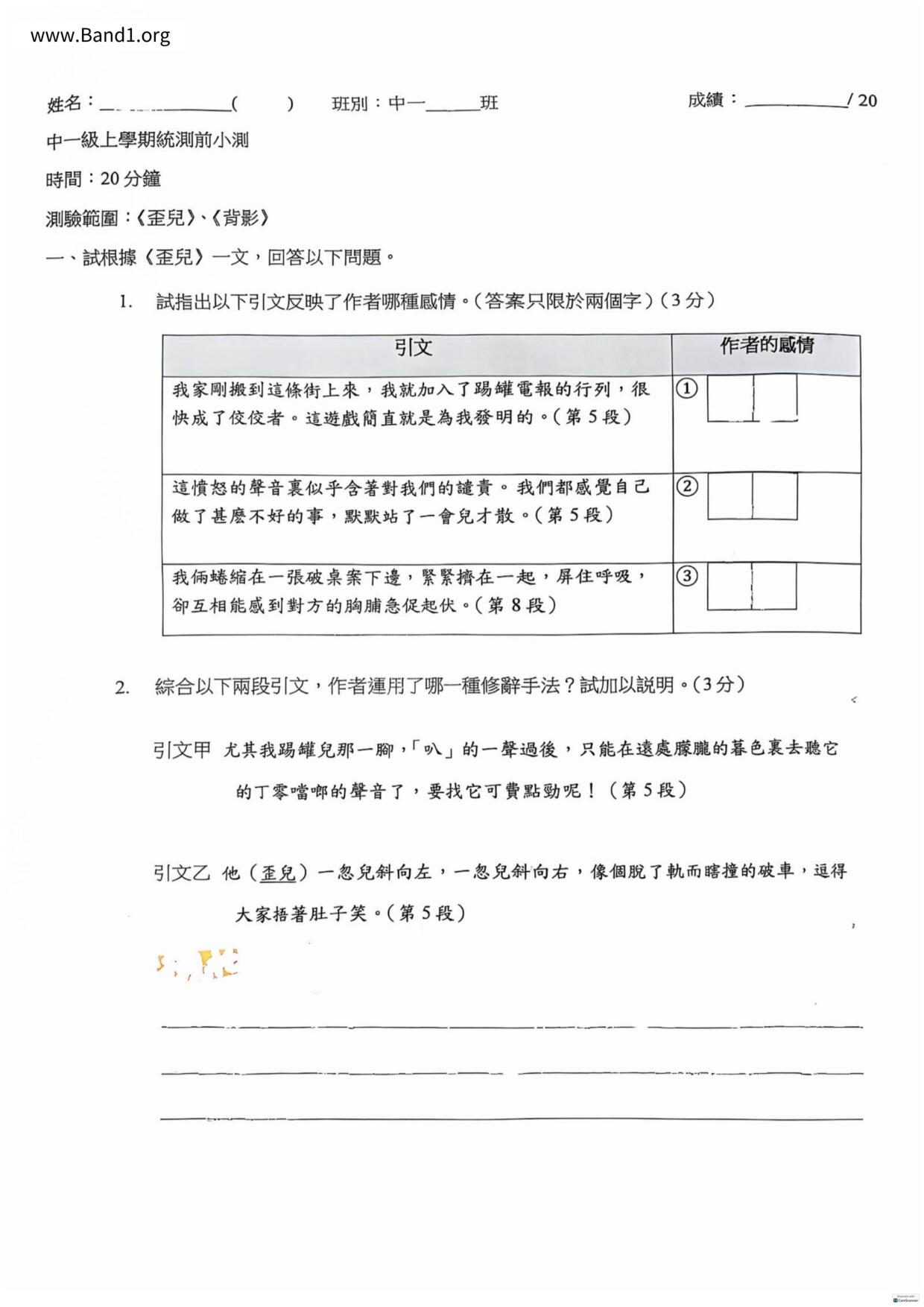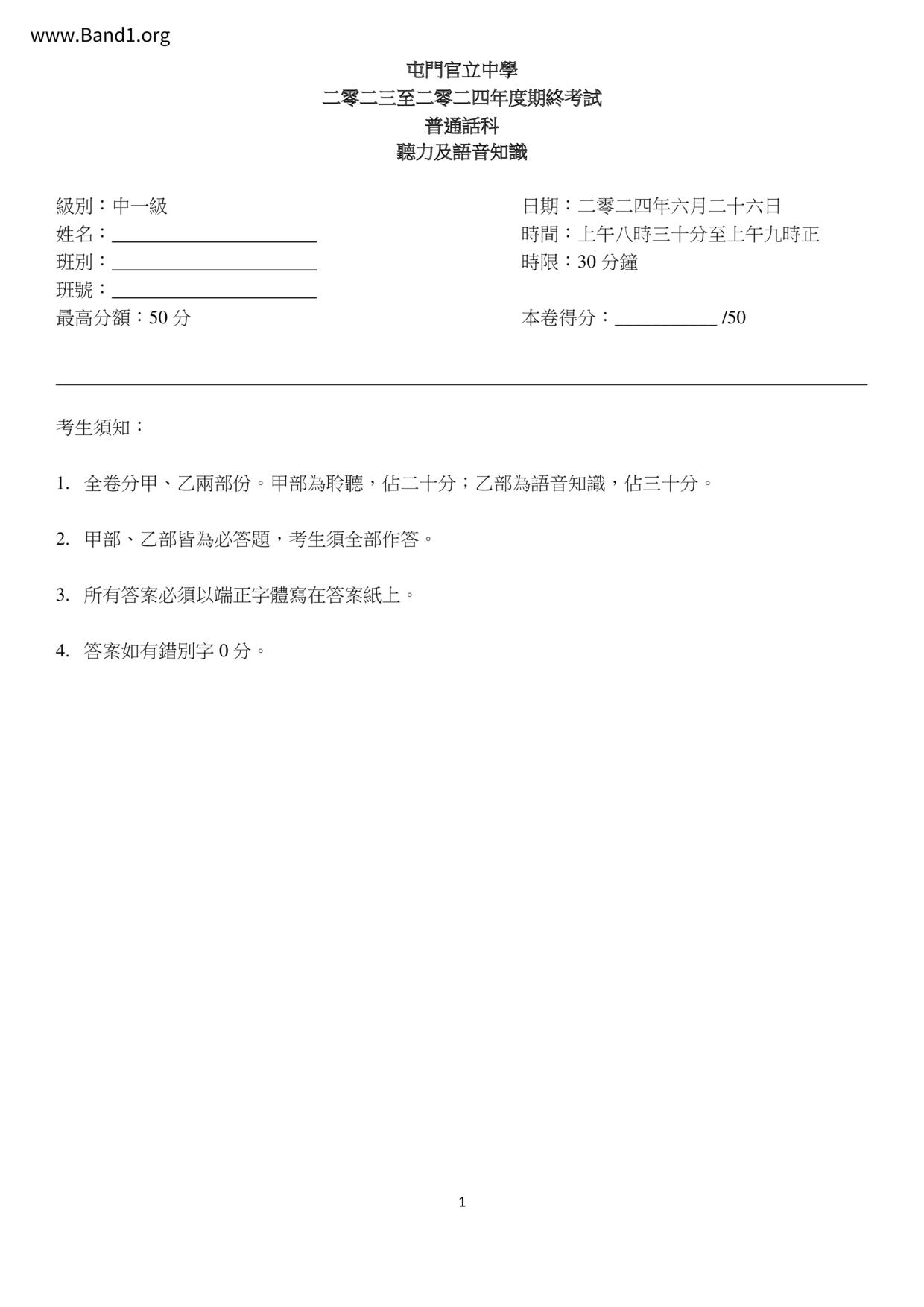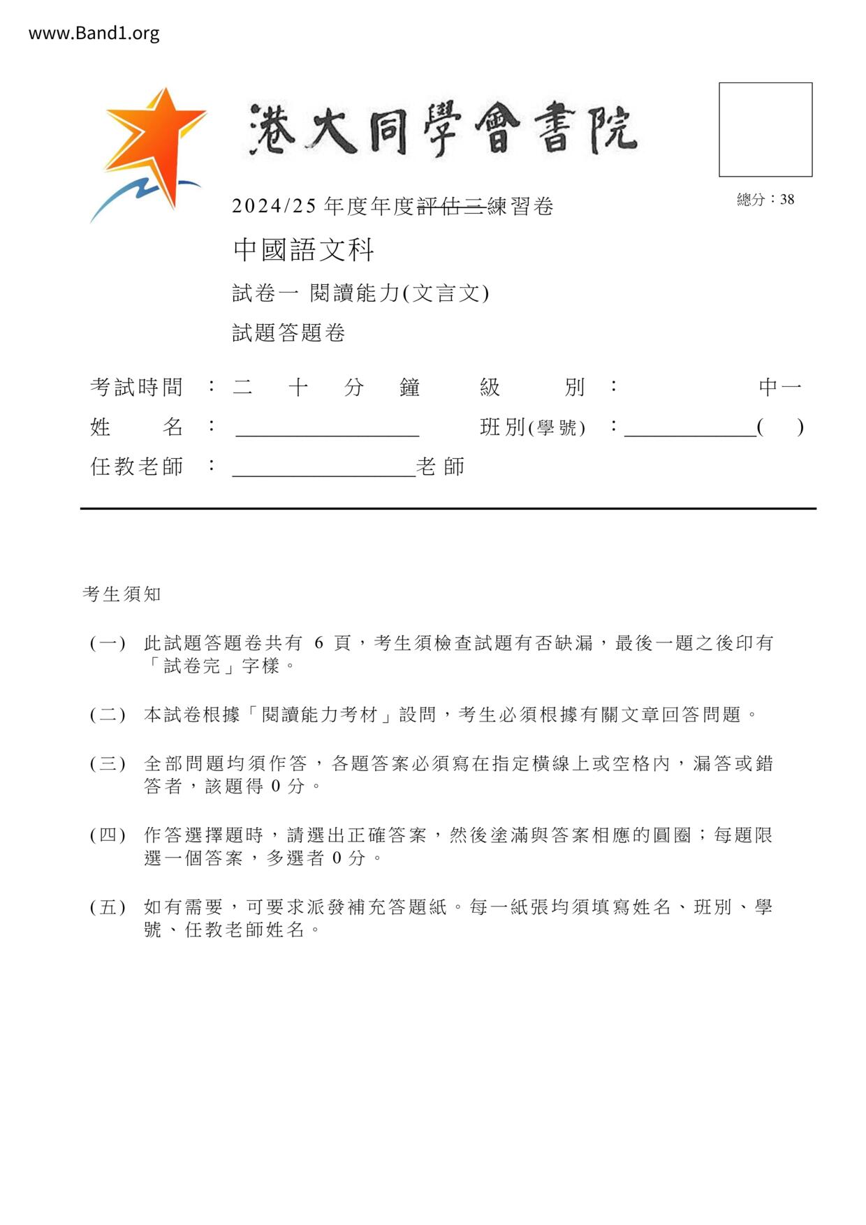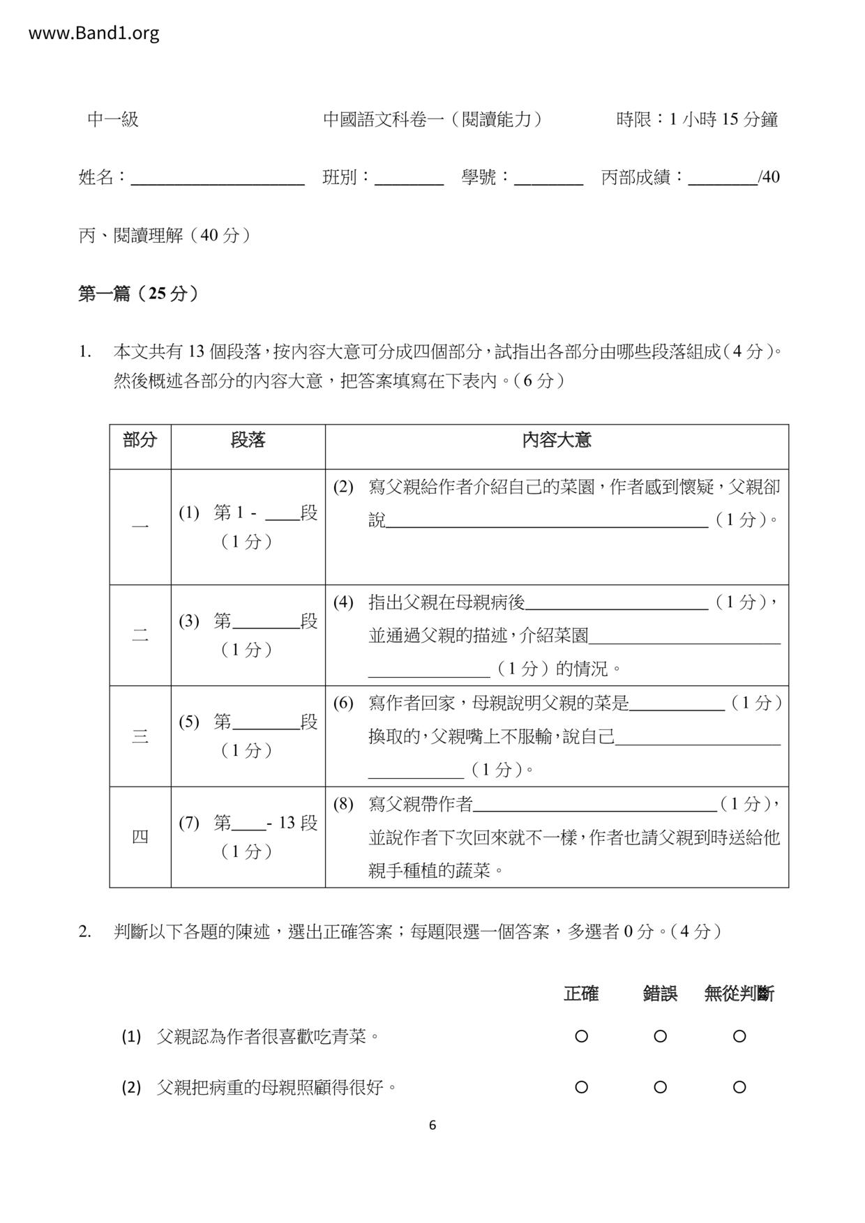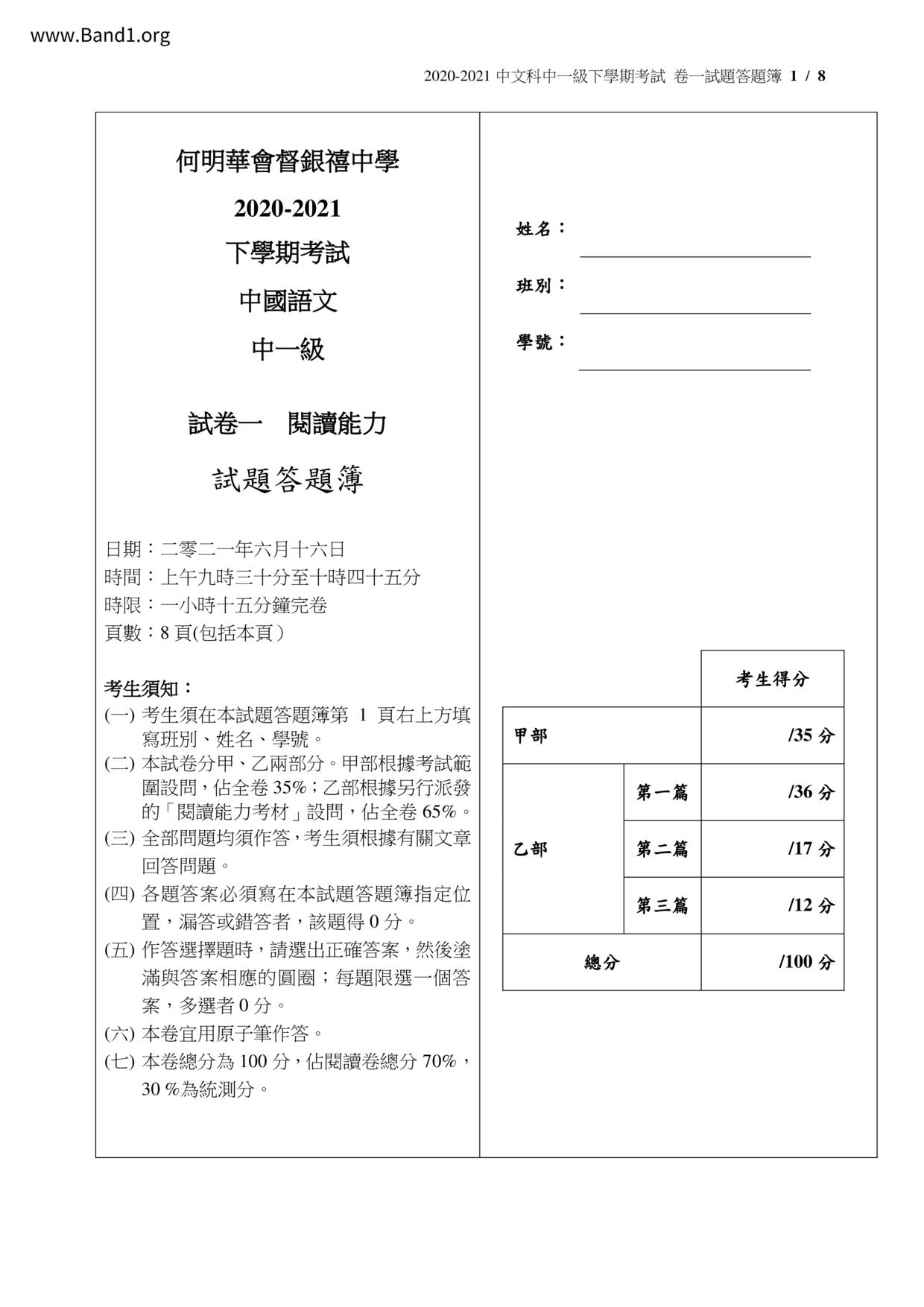 中一 英文 博愛醫院八十週年鄧英喜中學