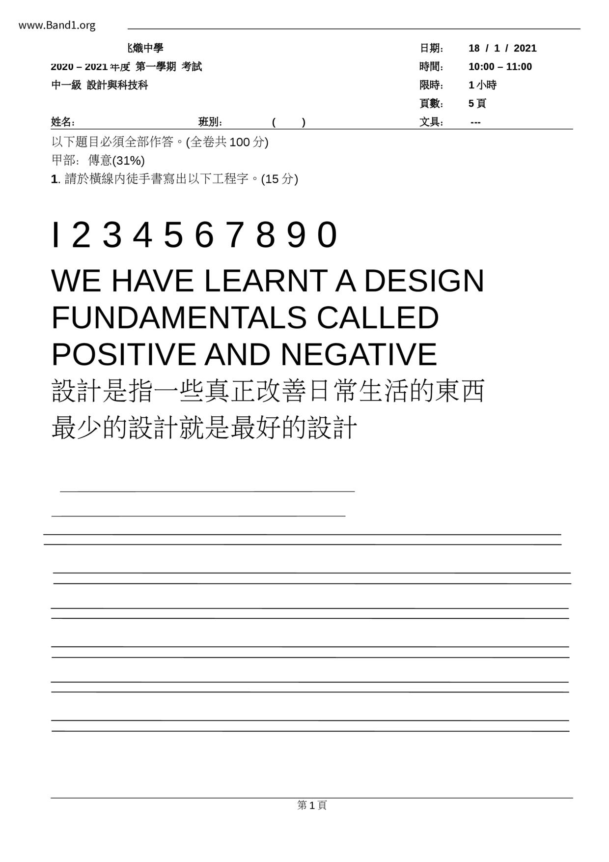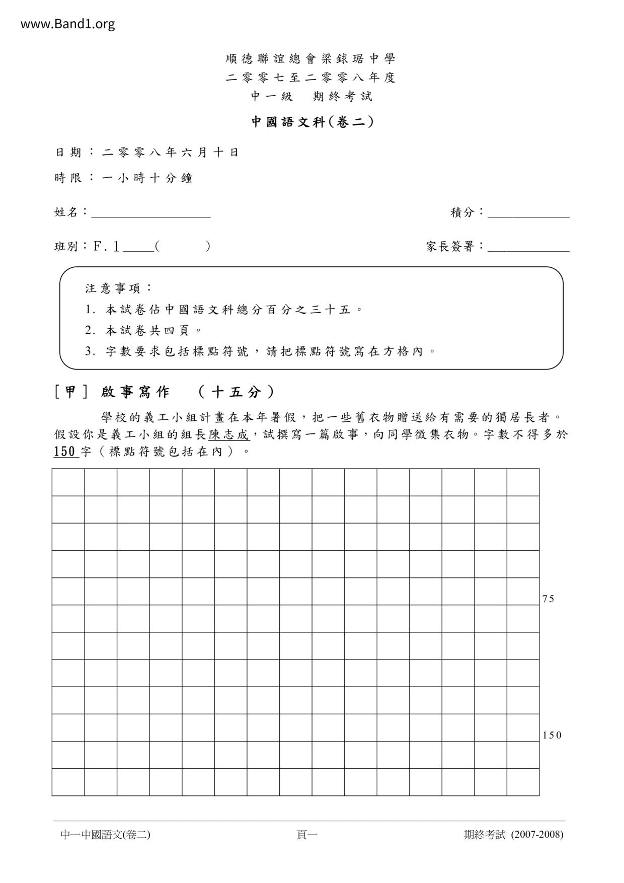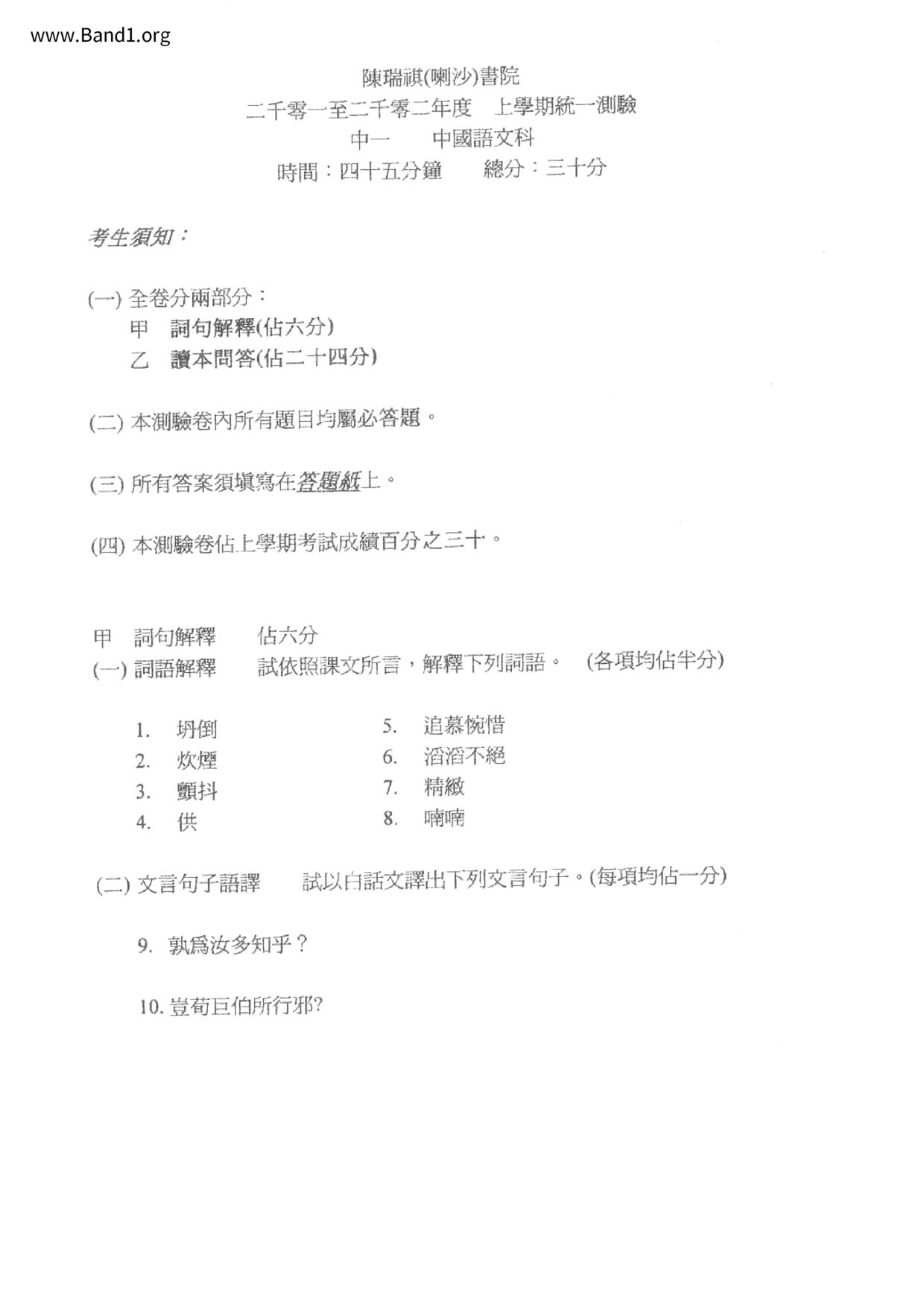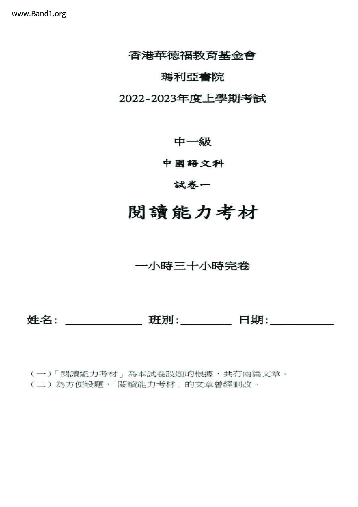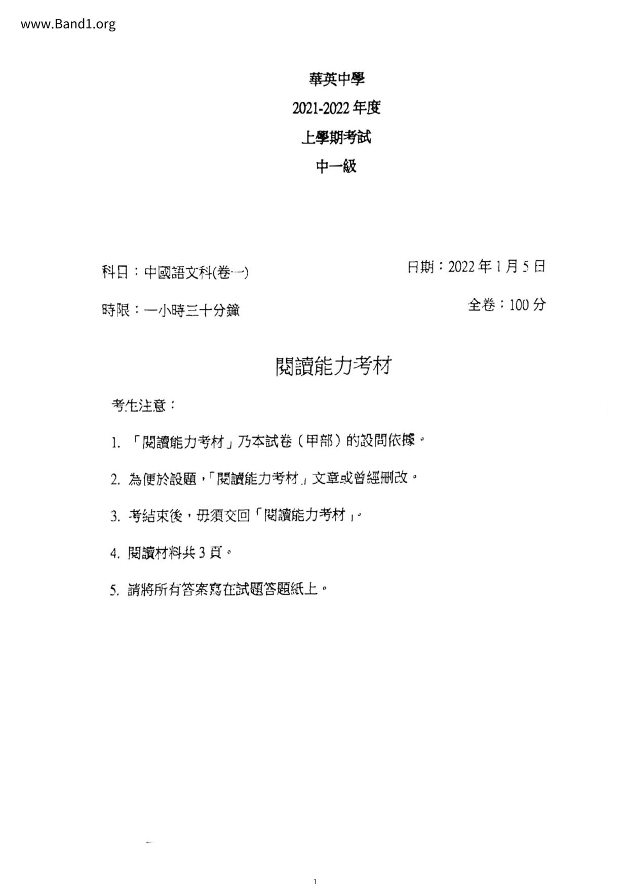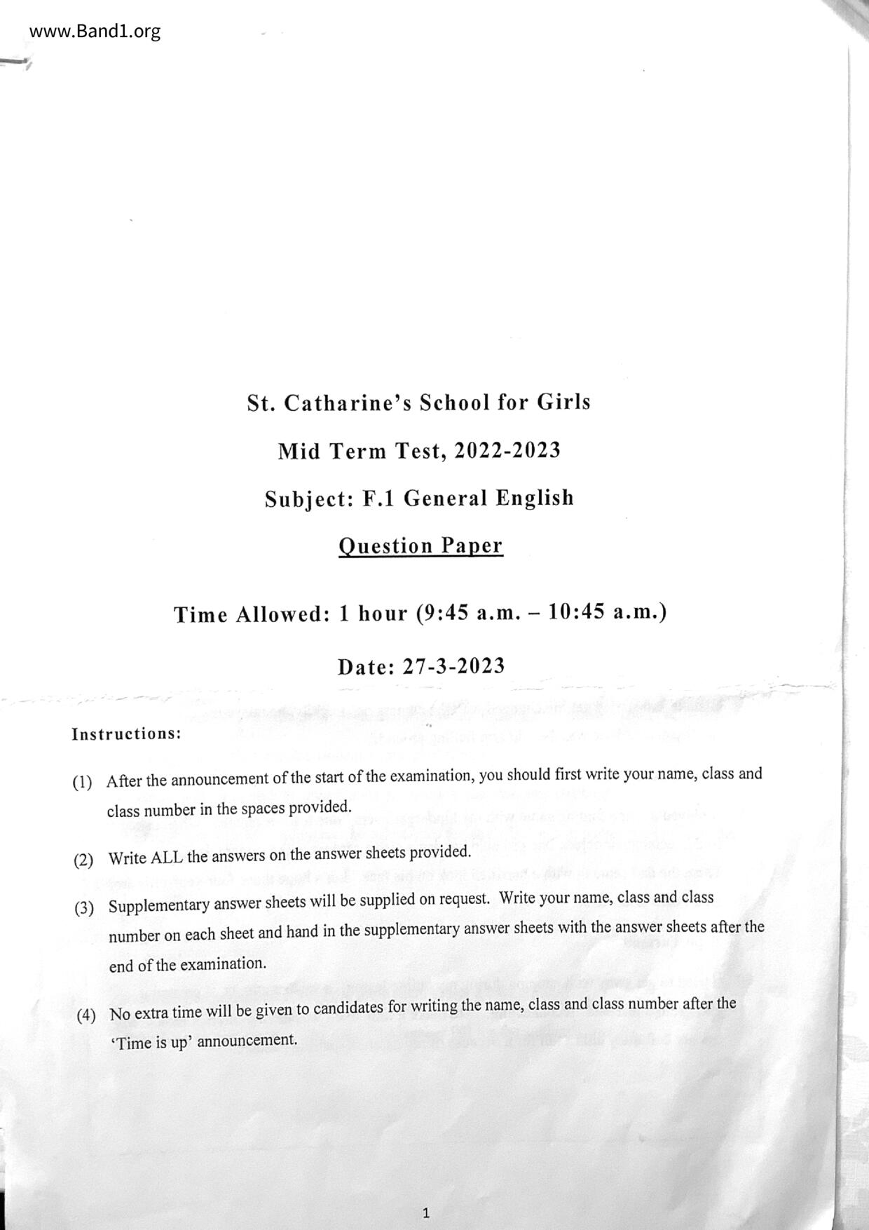 中一 英文 博愛醫院八十週年鄧英喜中學