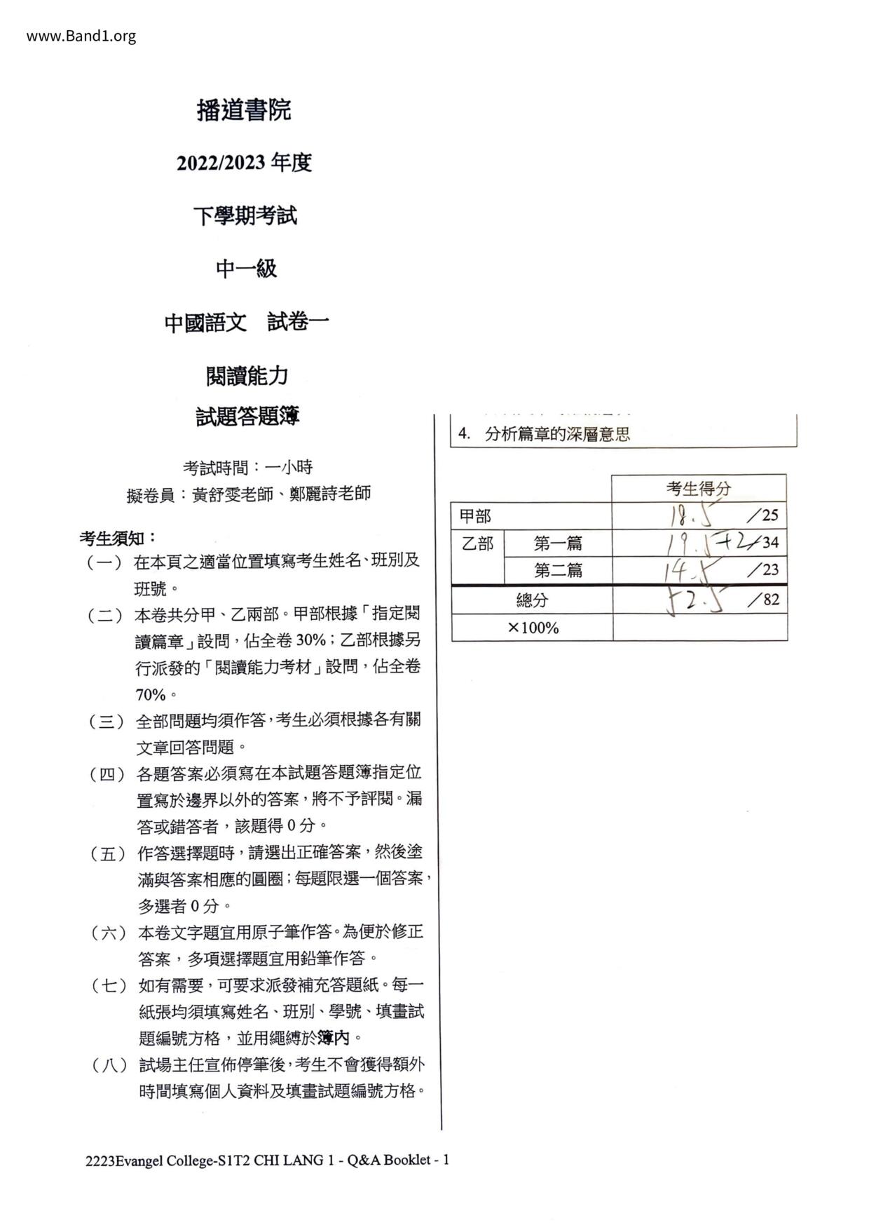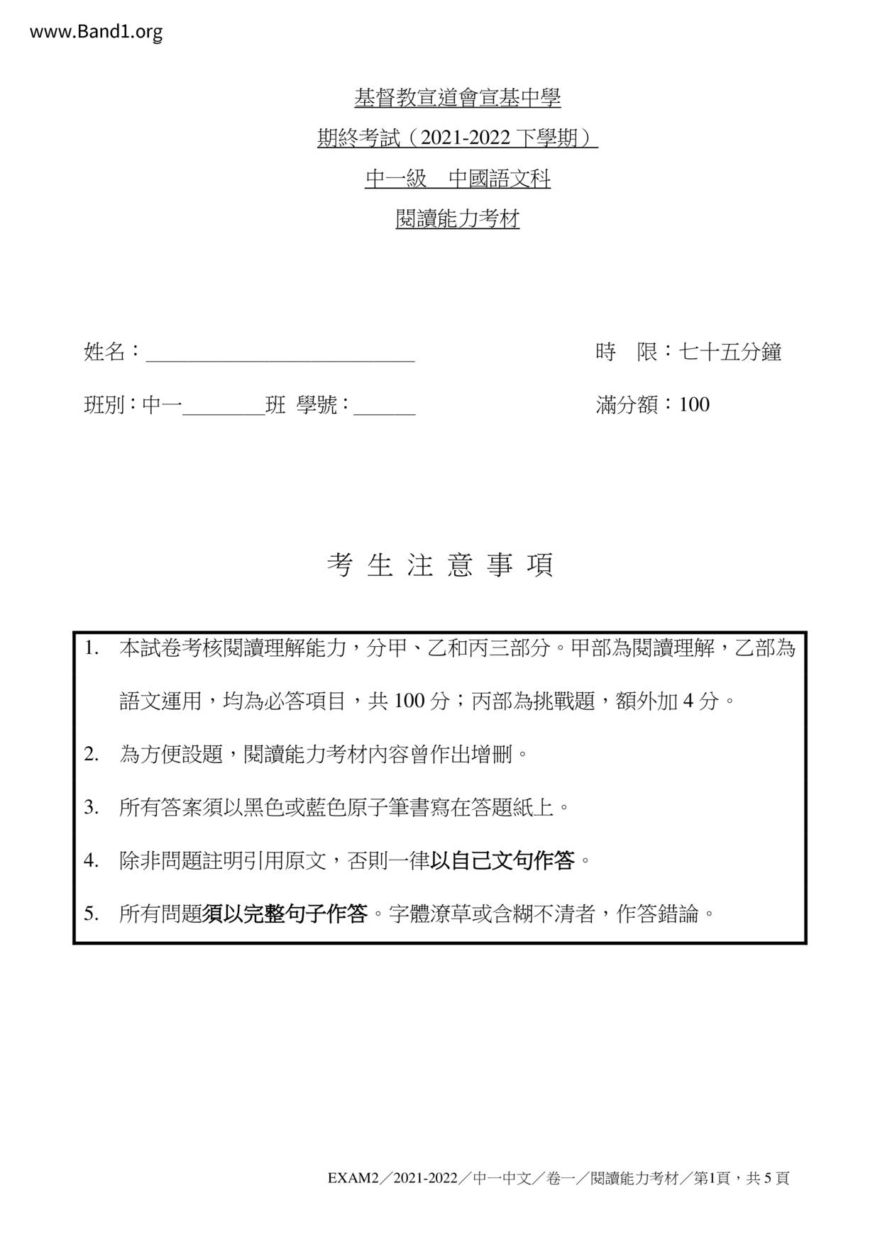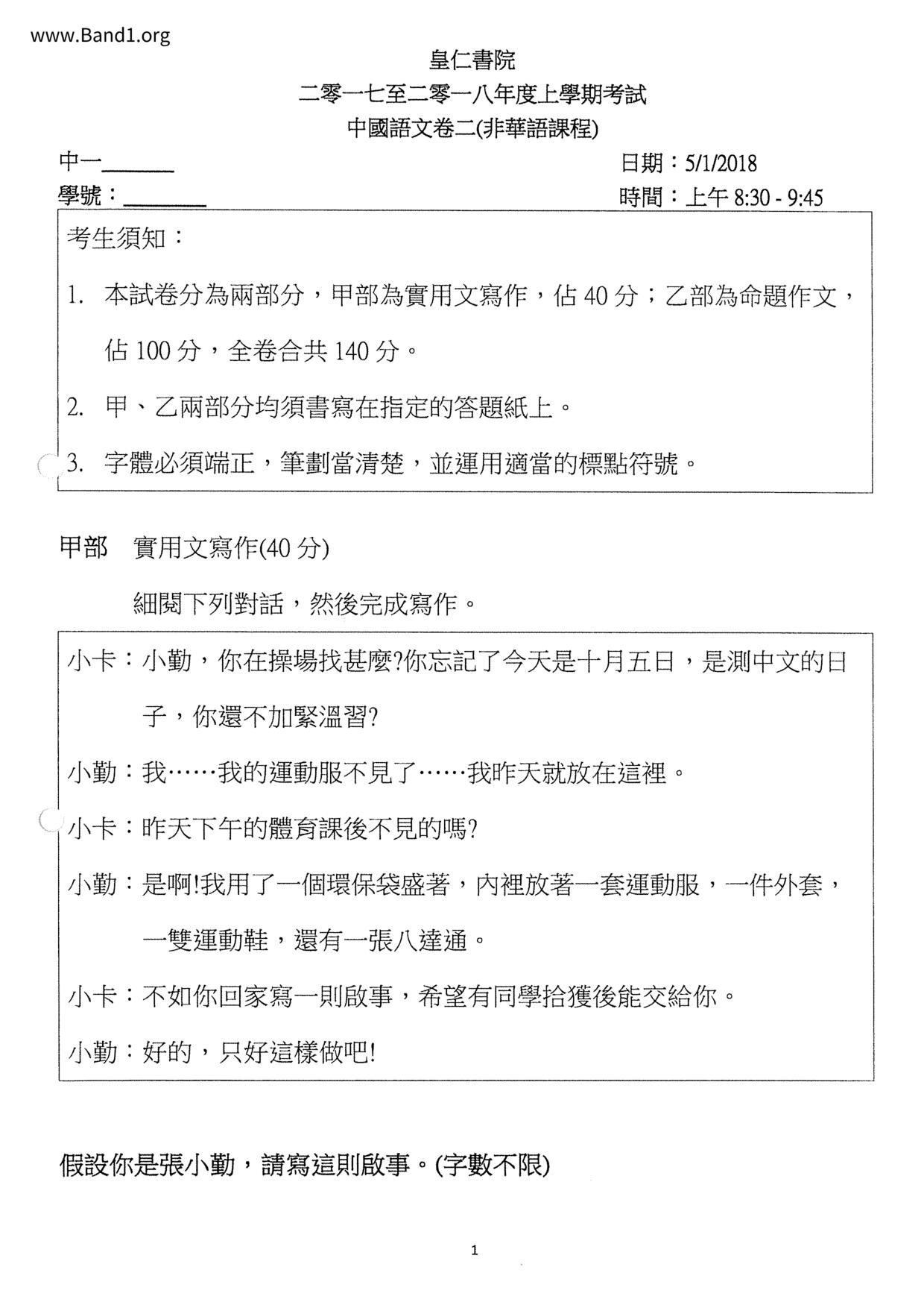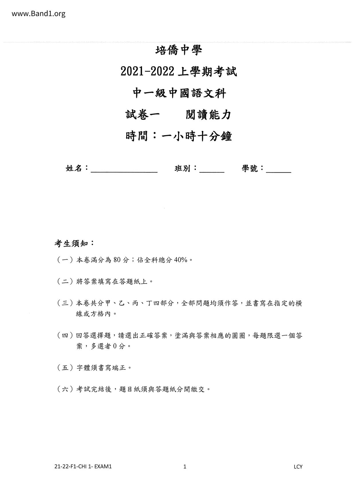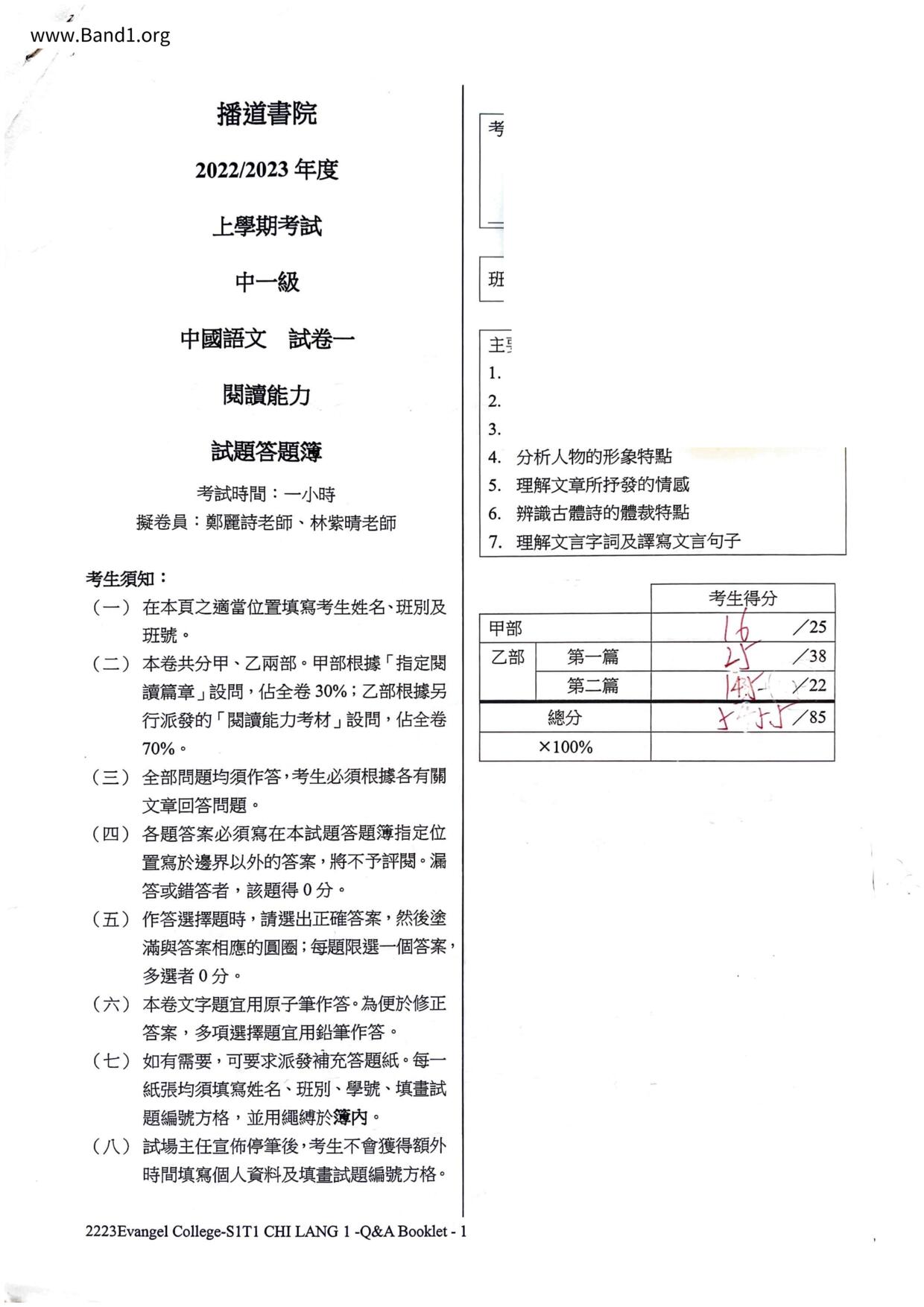 中一 英文 博愛醫院八十週年鄧英喜中學