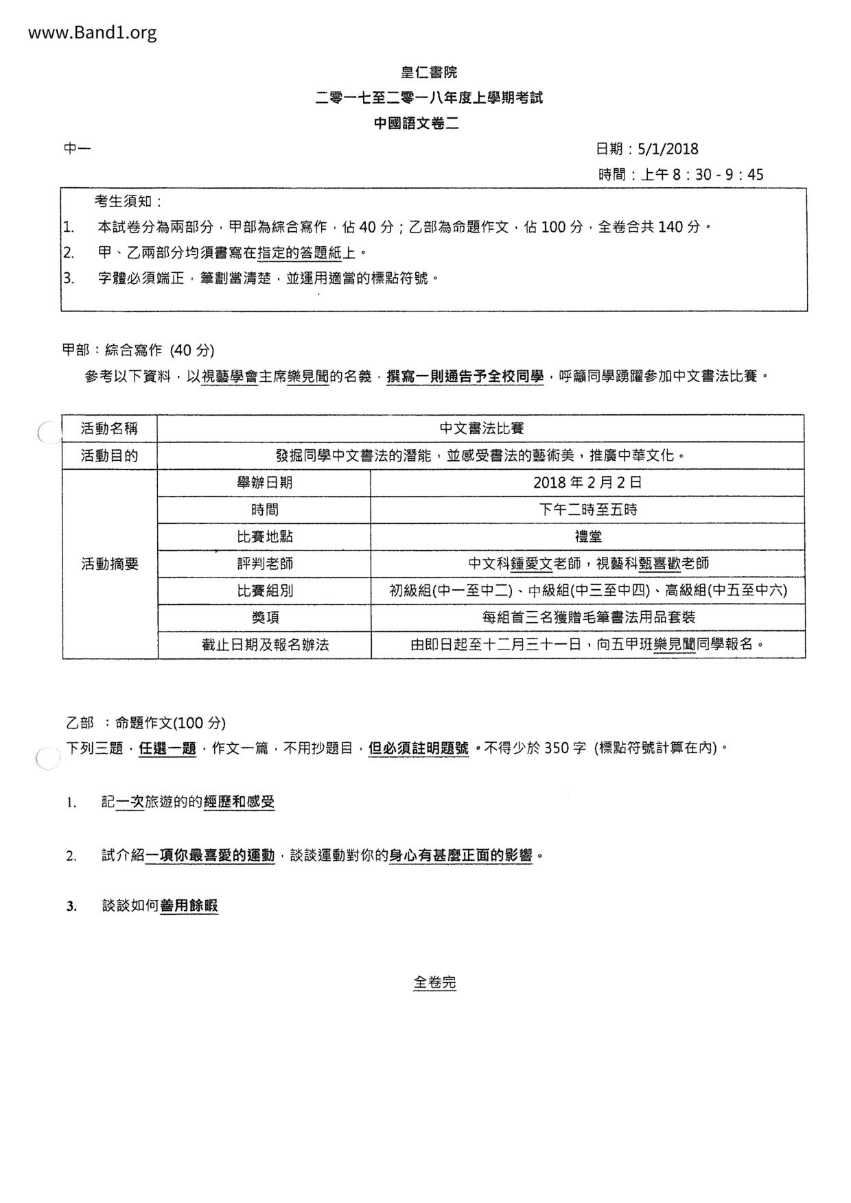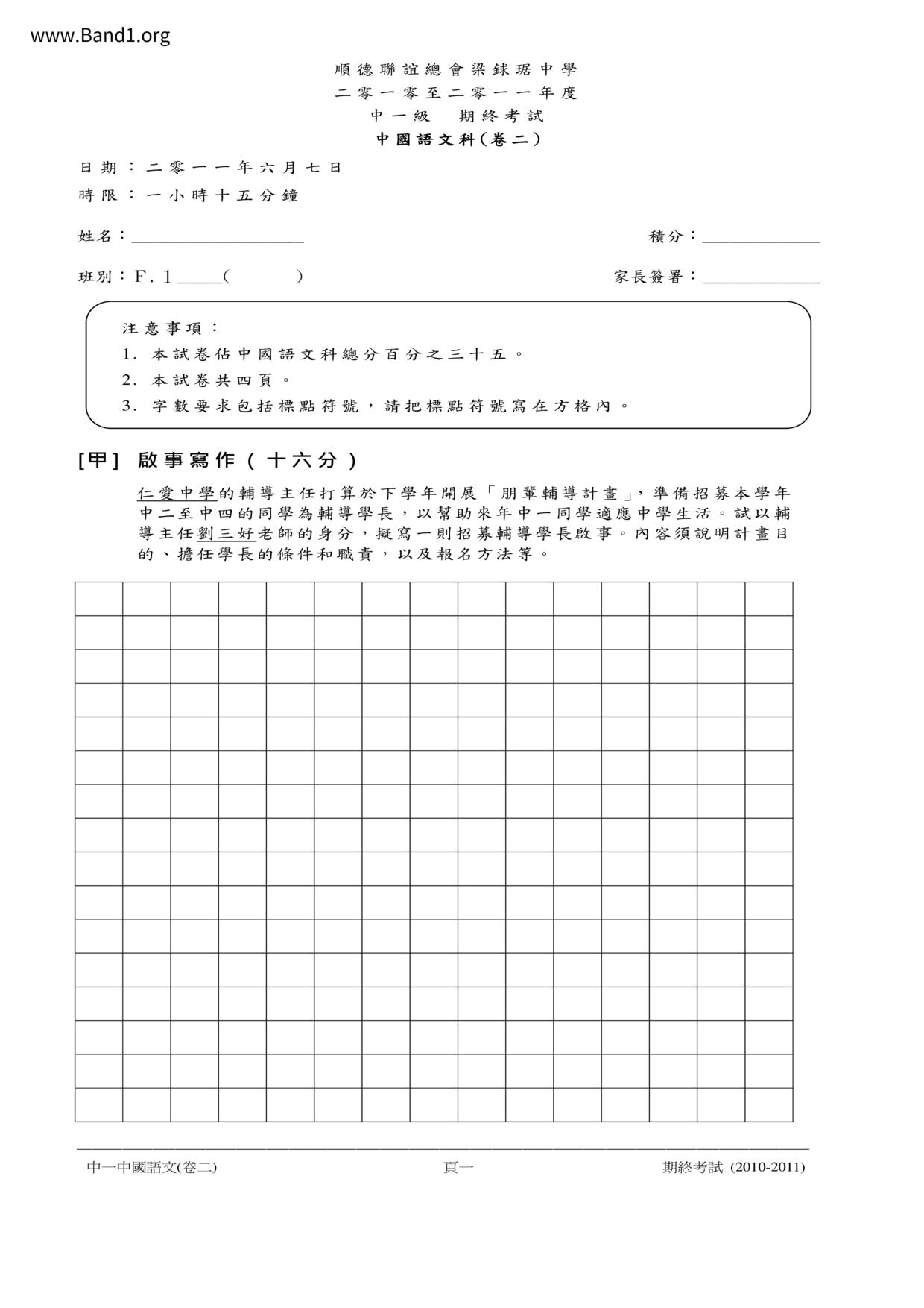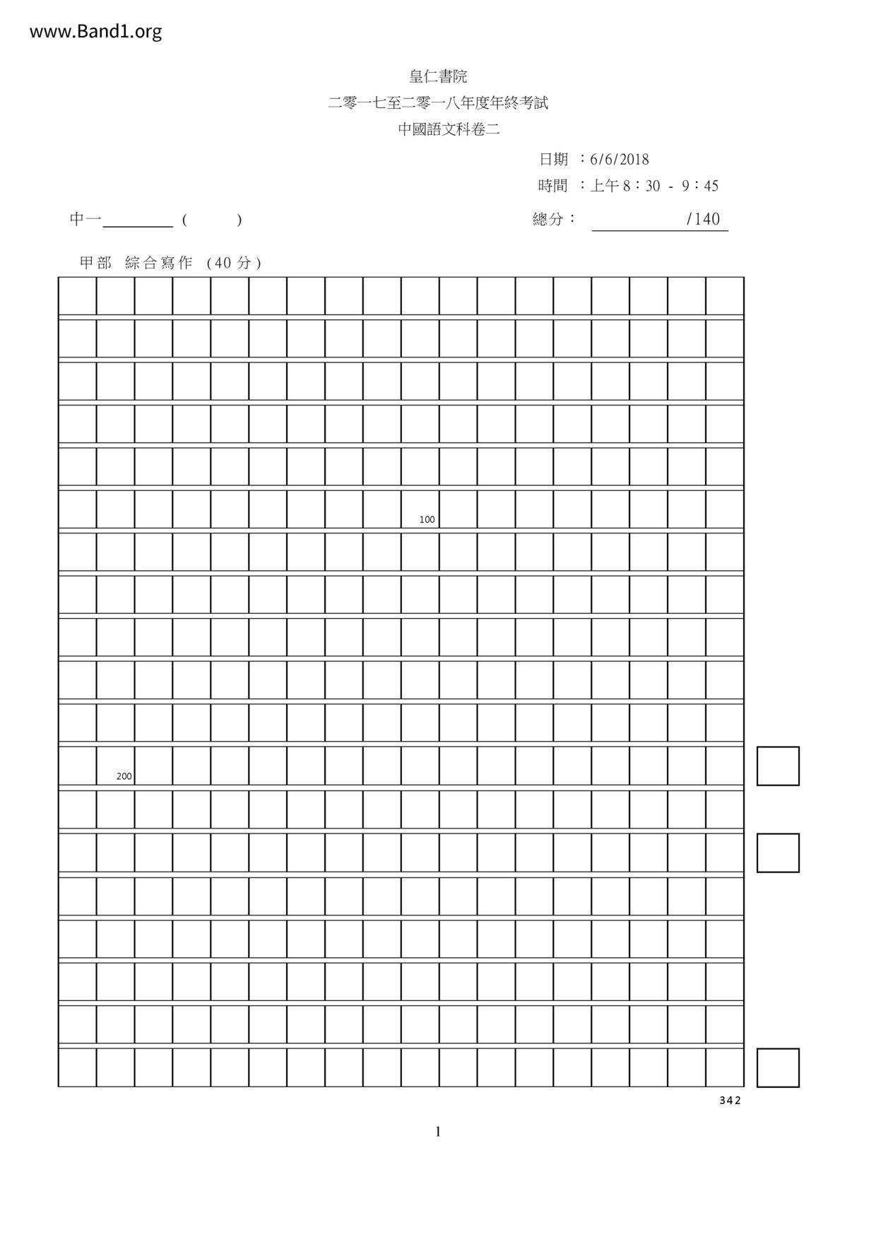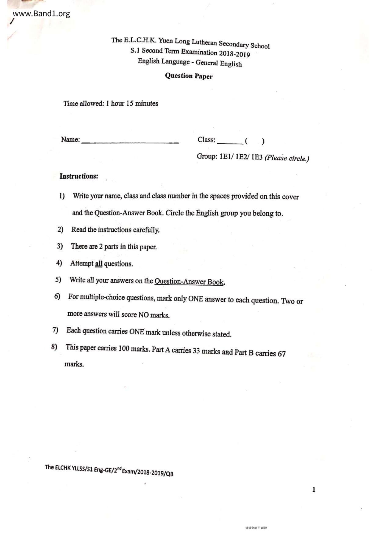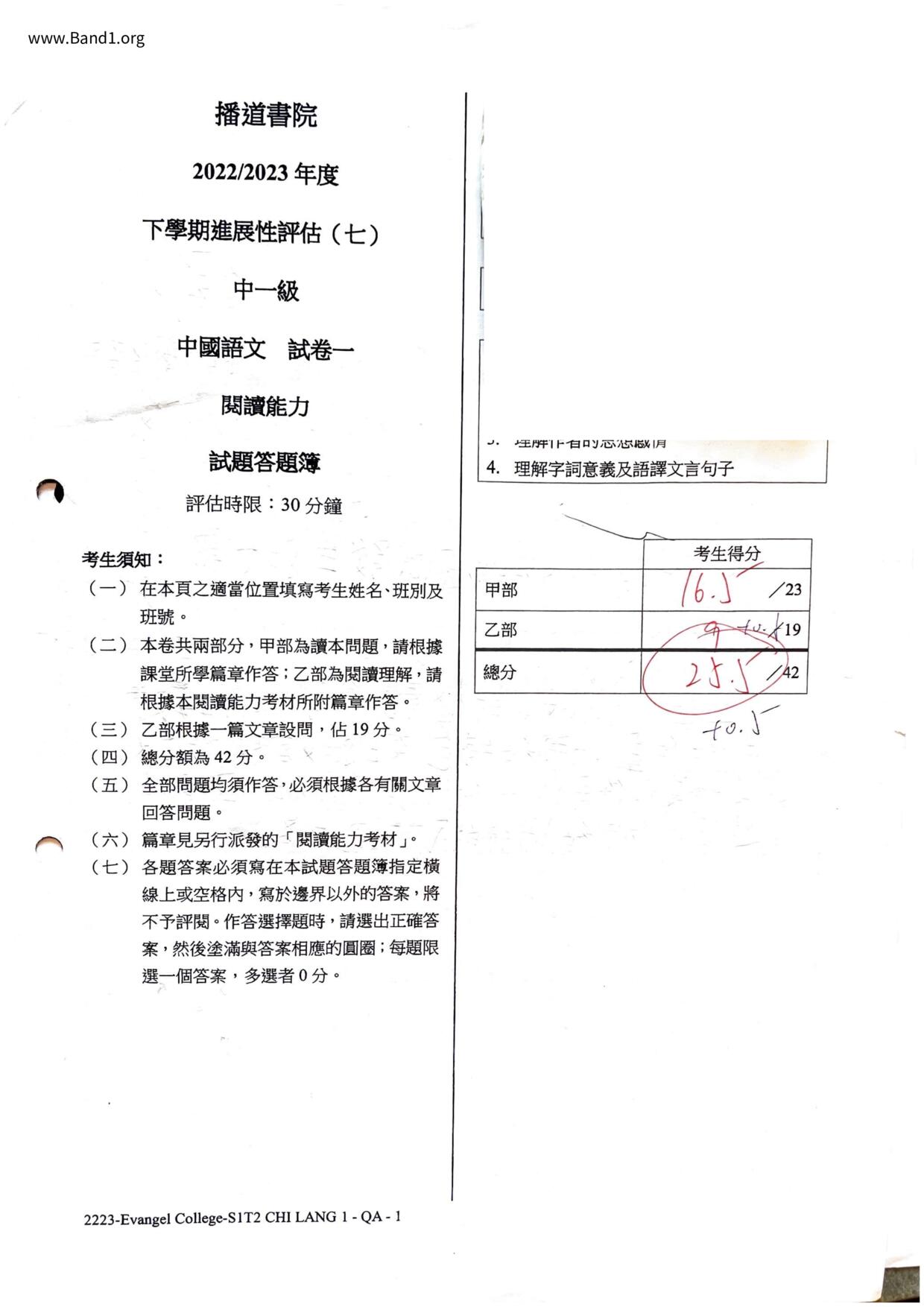 中一 英文 博愛醫院八十週年鄧英喜中學