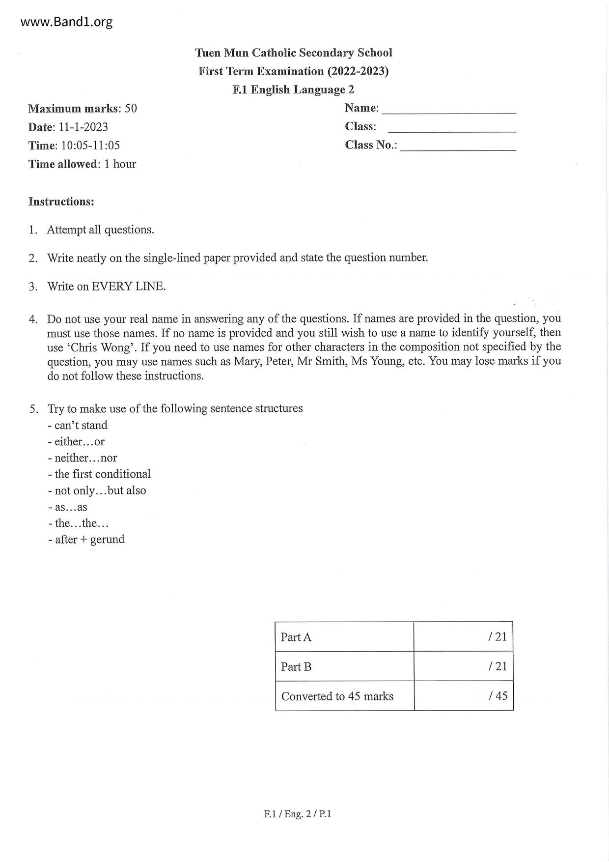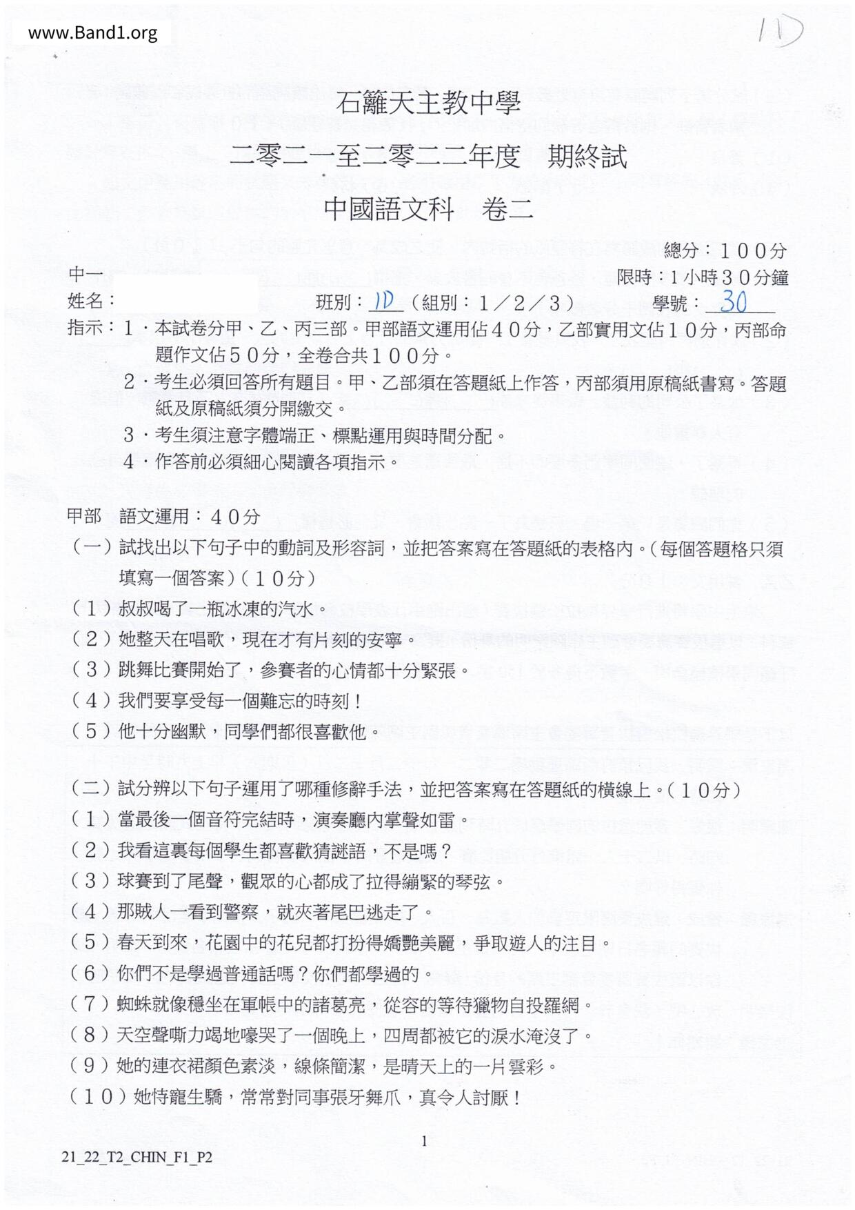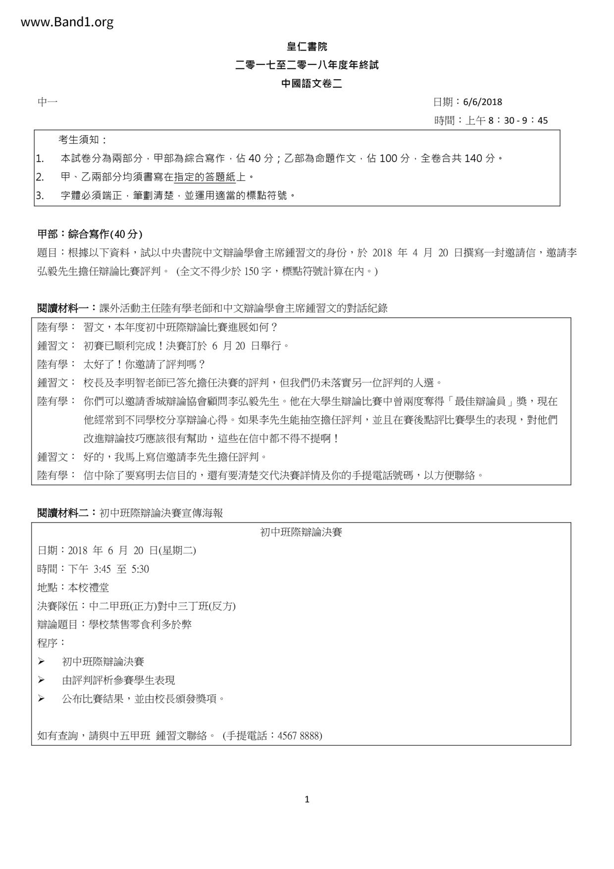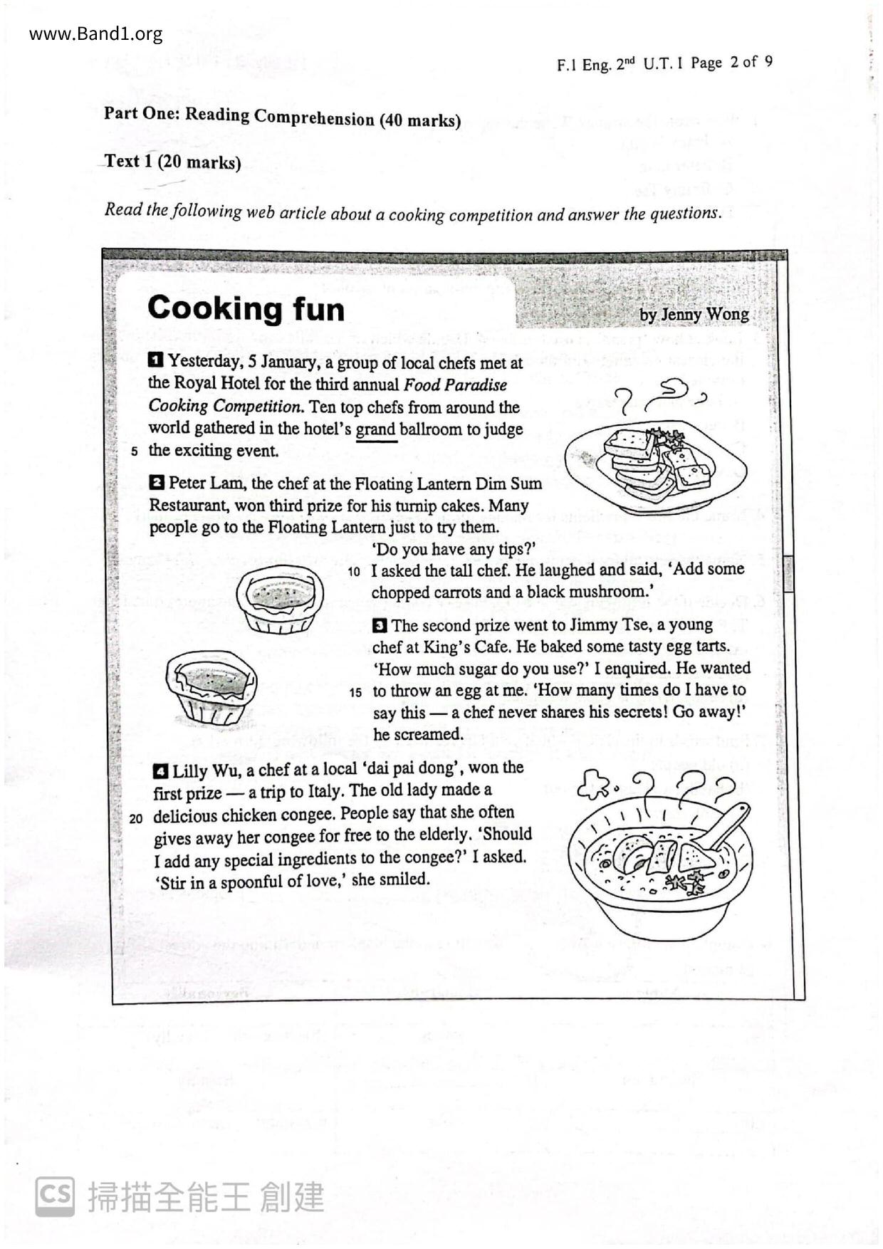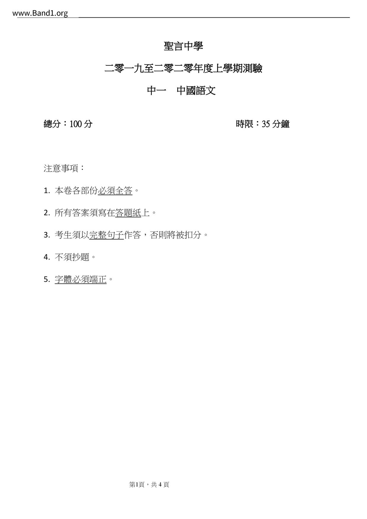 中一 英文 博愛醫院八十週年鄧英喜中學