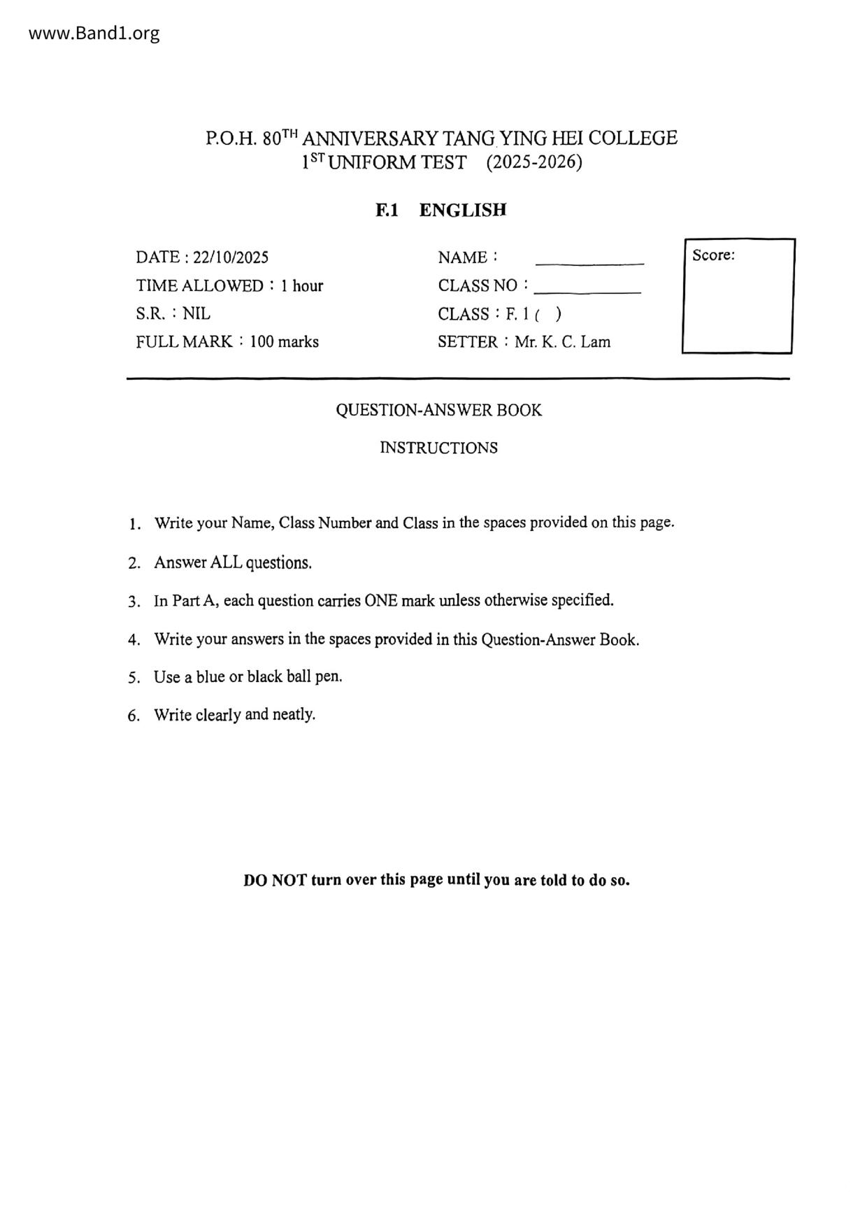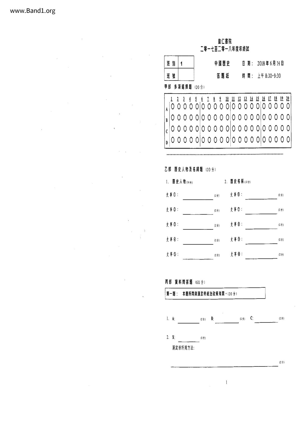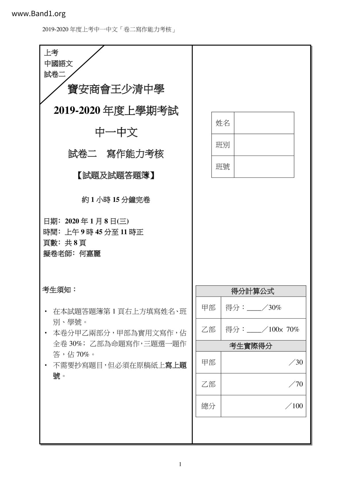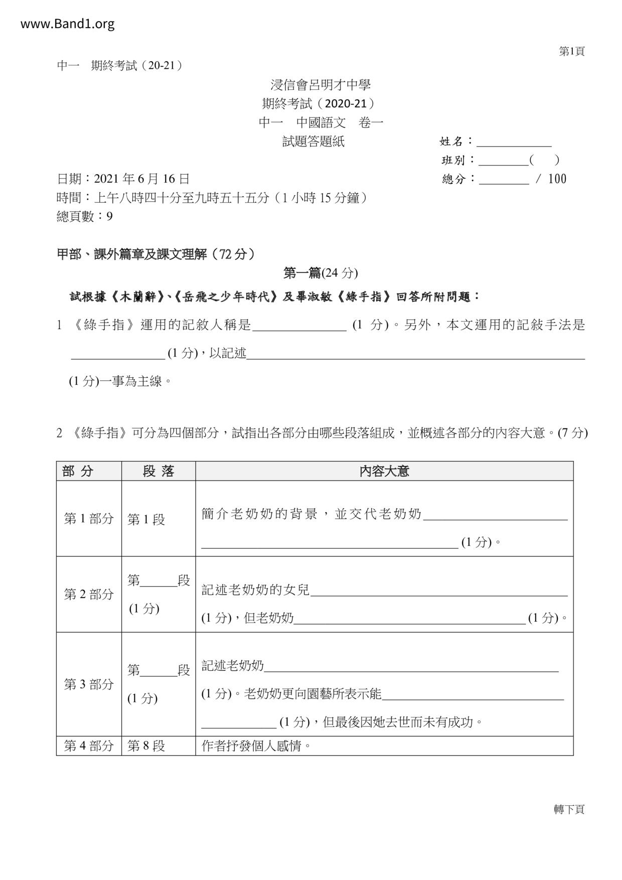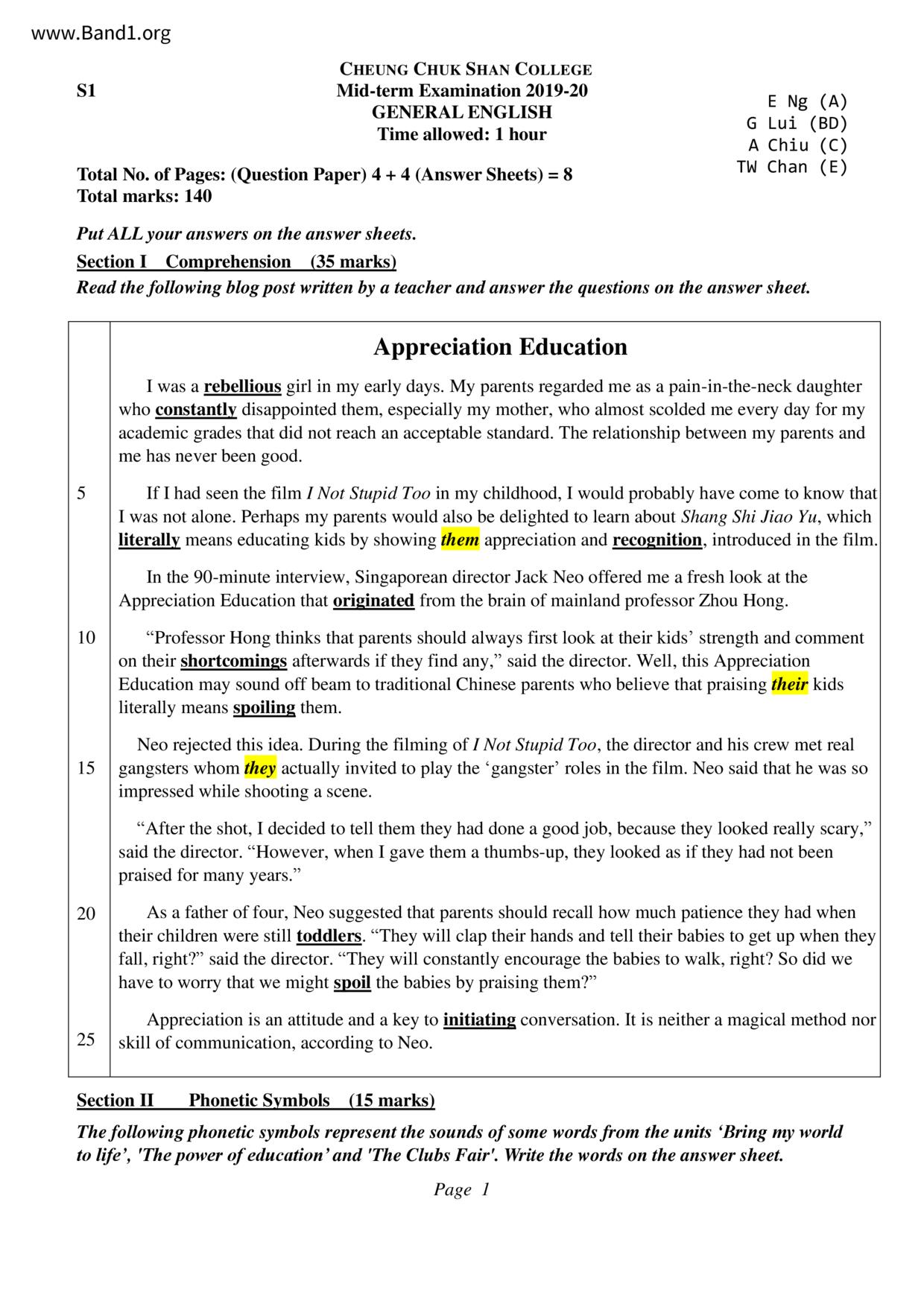 中一 英文 博愛醫院八十週年鄧英喜中學