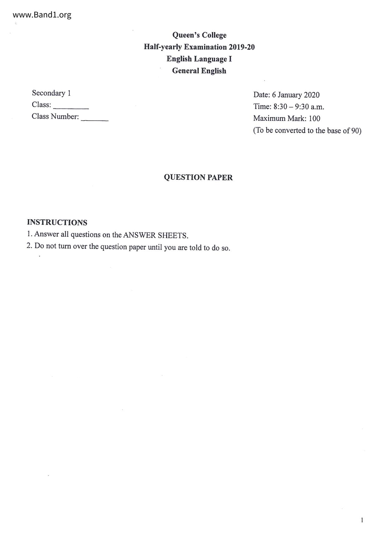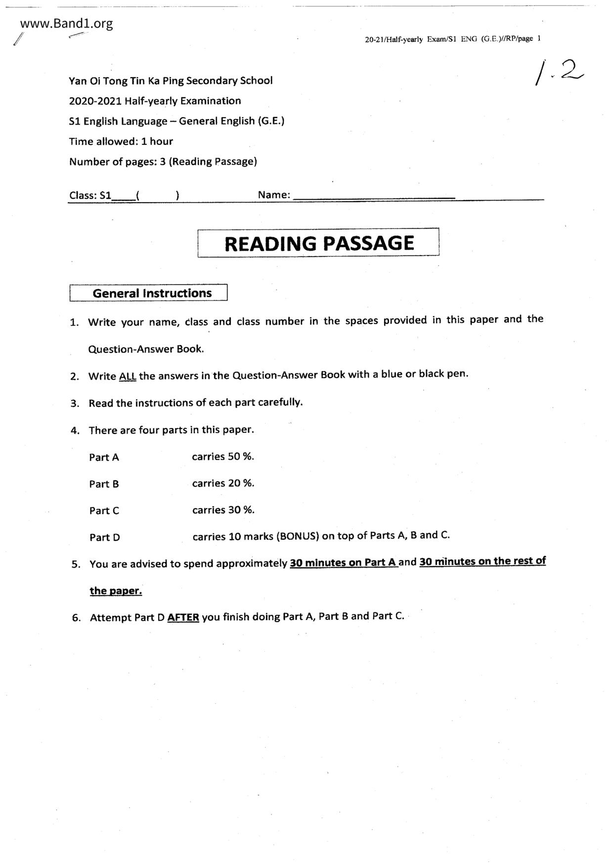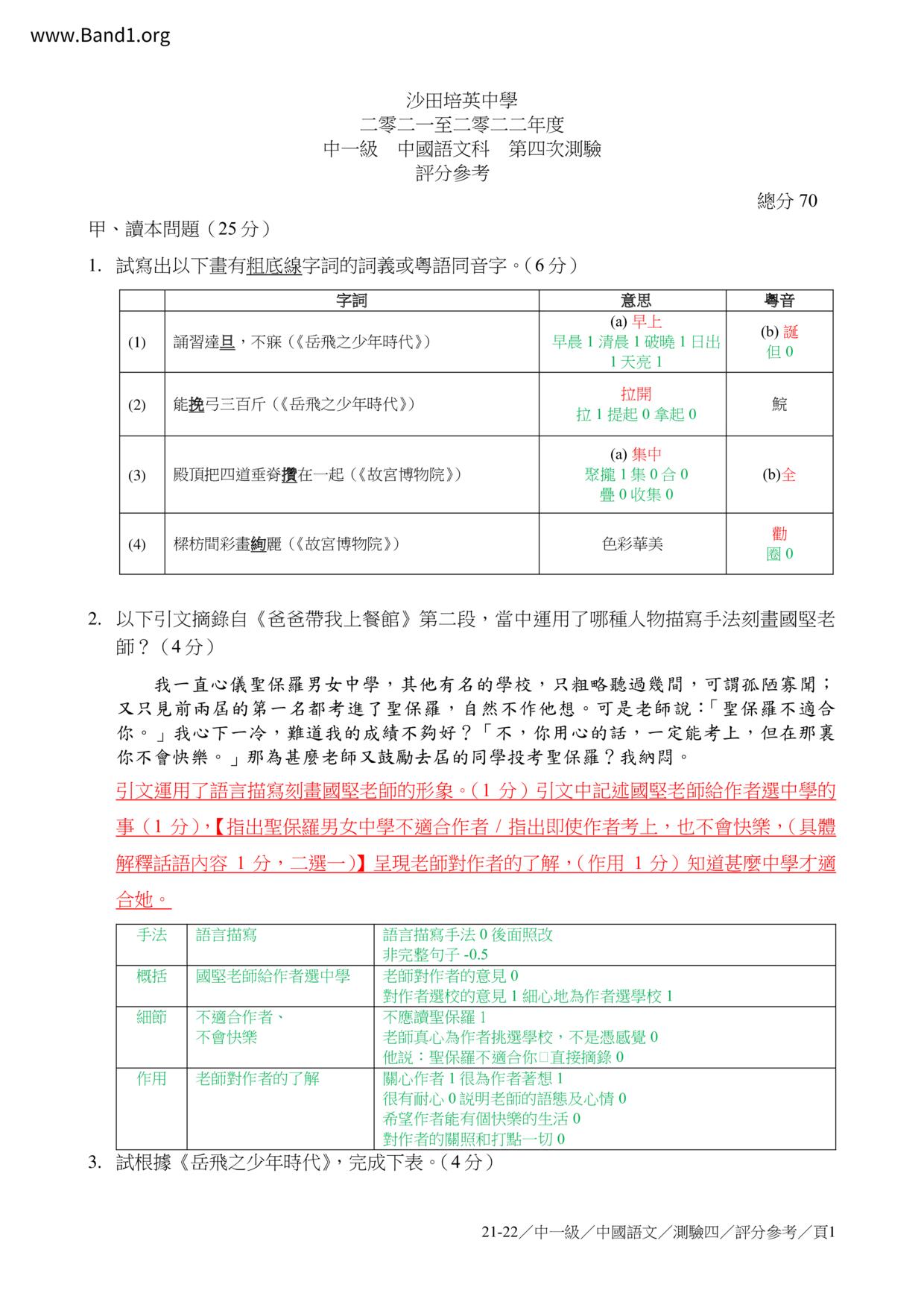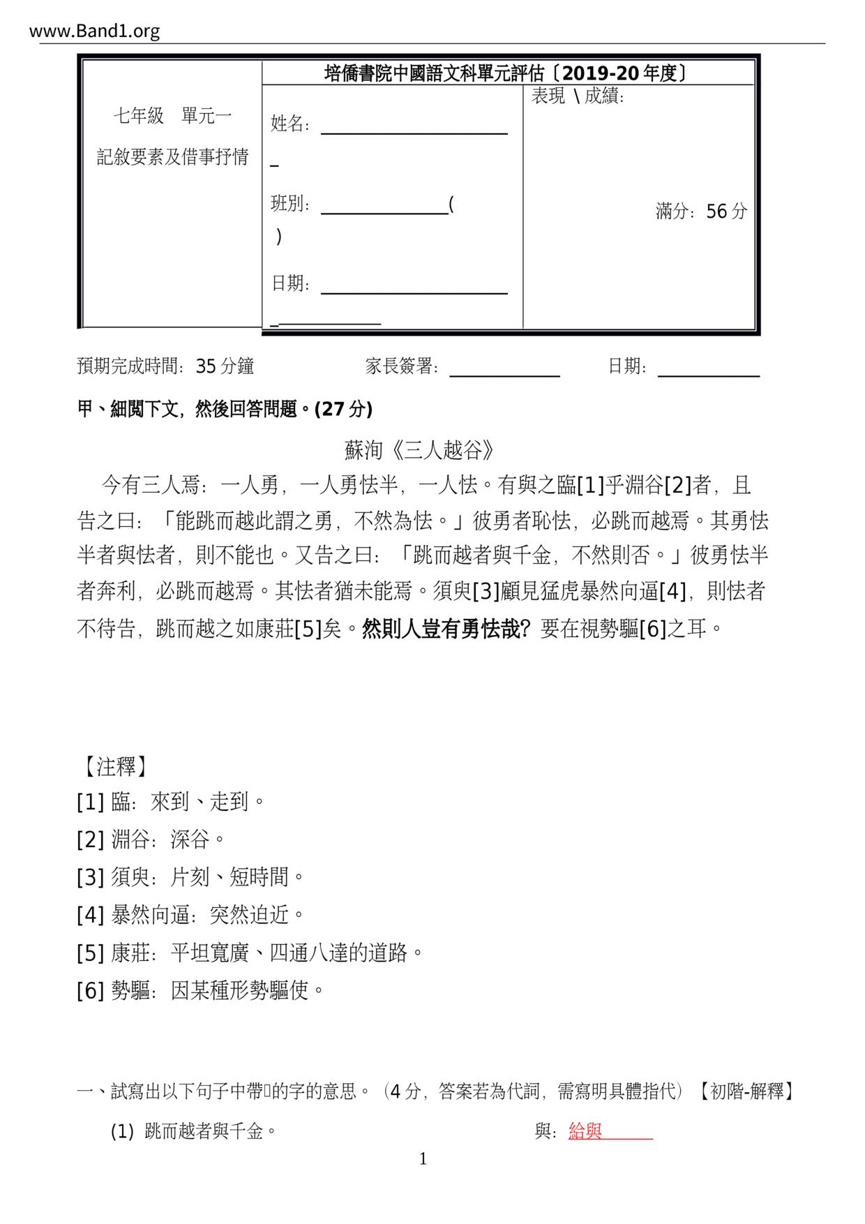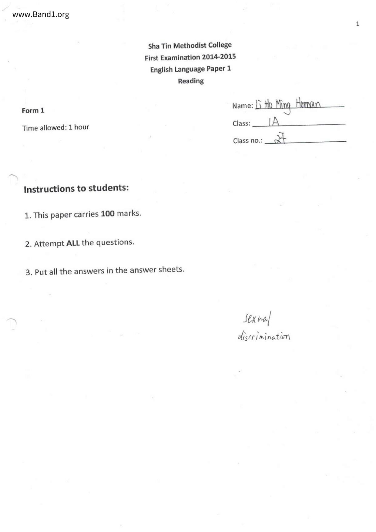 中一 英文 博愛醫院八十週年鄧英喜中學